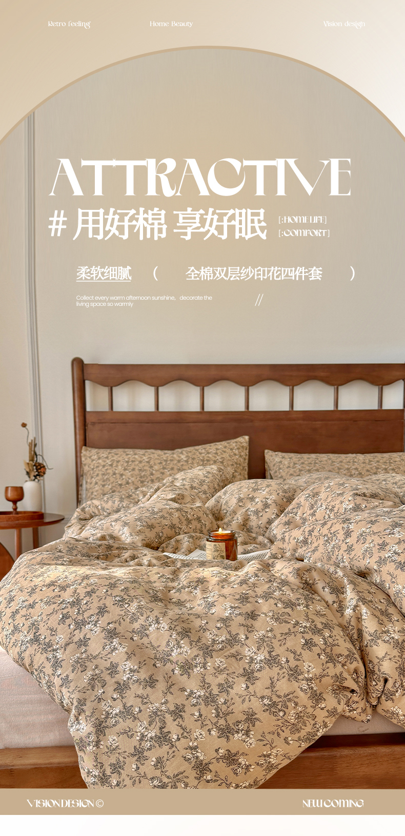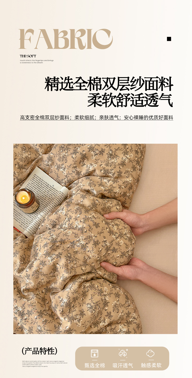 当前位置: 91家纺网 > 商品网购 > 床品套件 > 四件套 > 全棉普通四件套 > 吉象2025新款全棉双层纱四件套 漫步花丛
