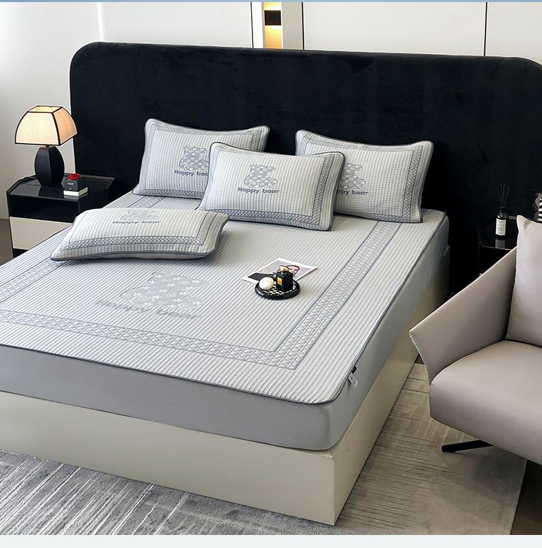 首尔家纺 2025新款大版凉感丝凉席 快乐熊-高级灰