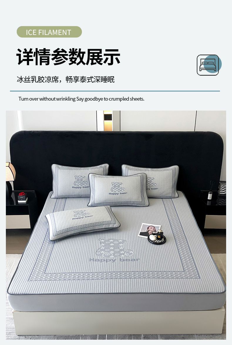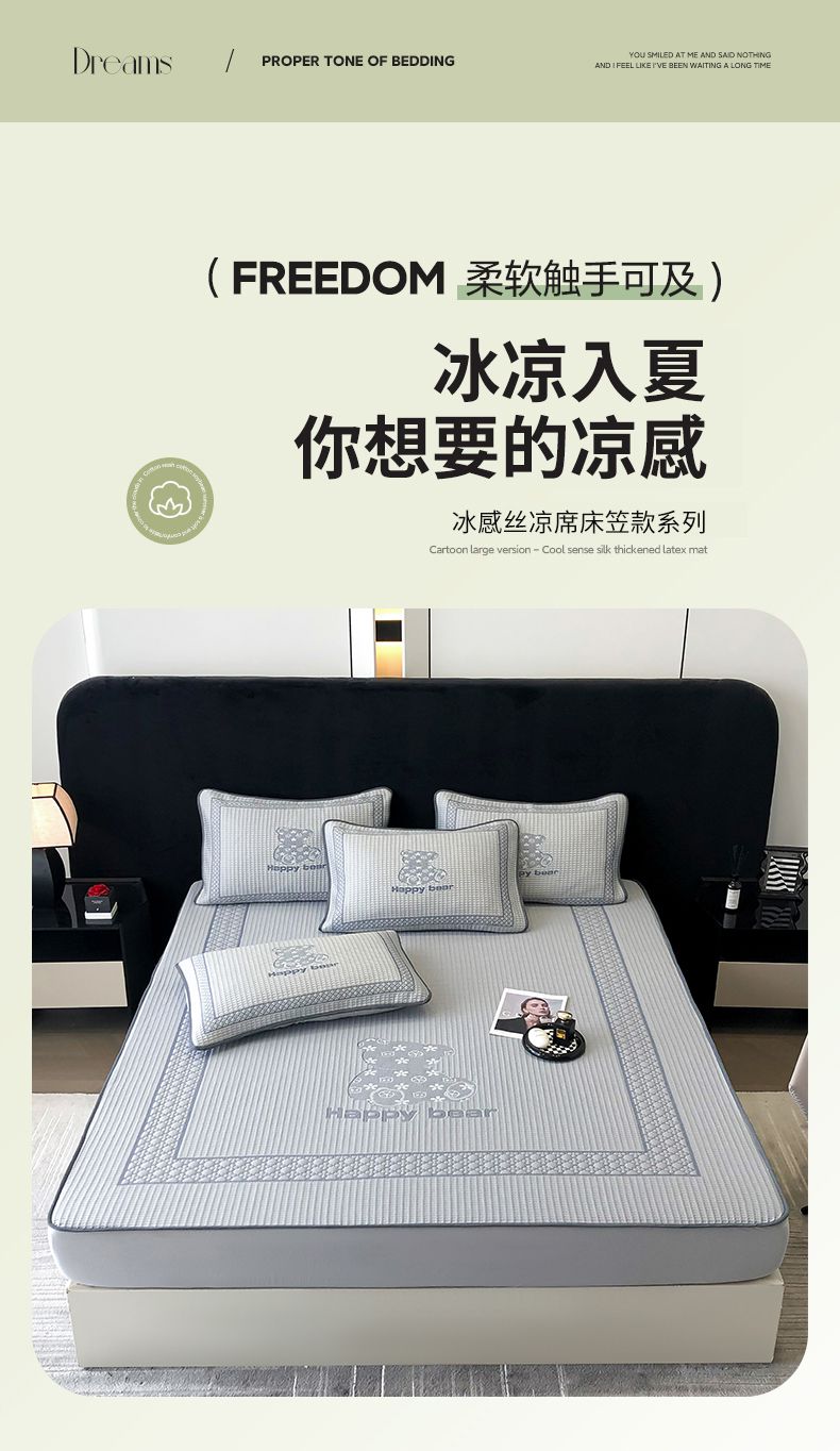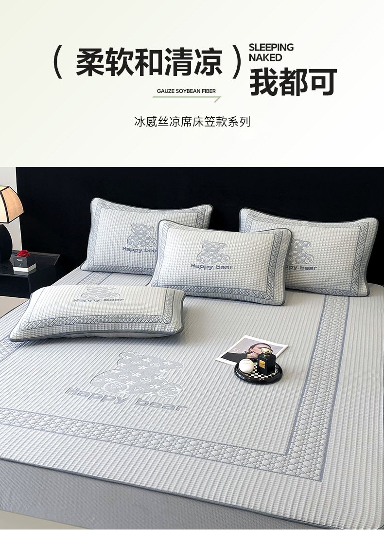 商品名称:首尔家纺 2025新款大版凉感丝凉席 快乐熊-高级灰