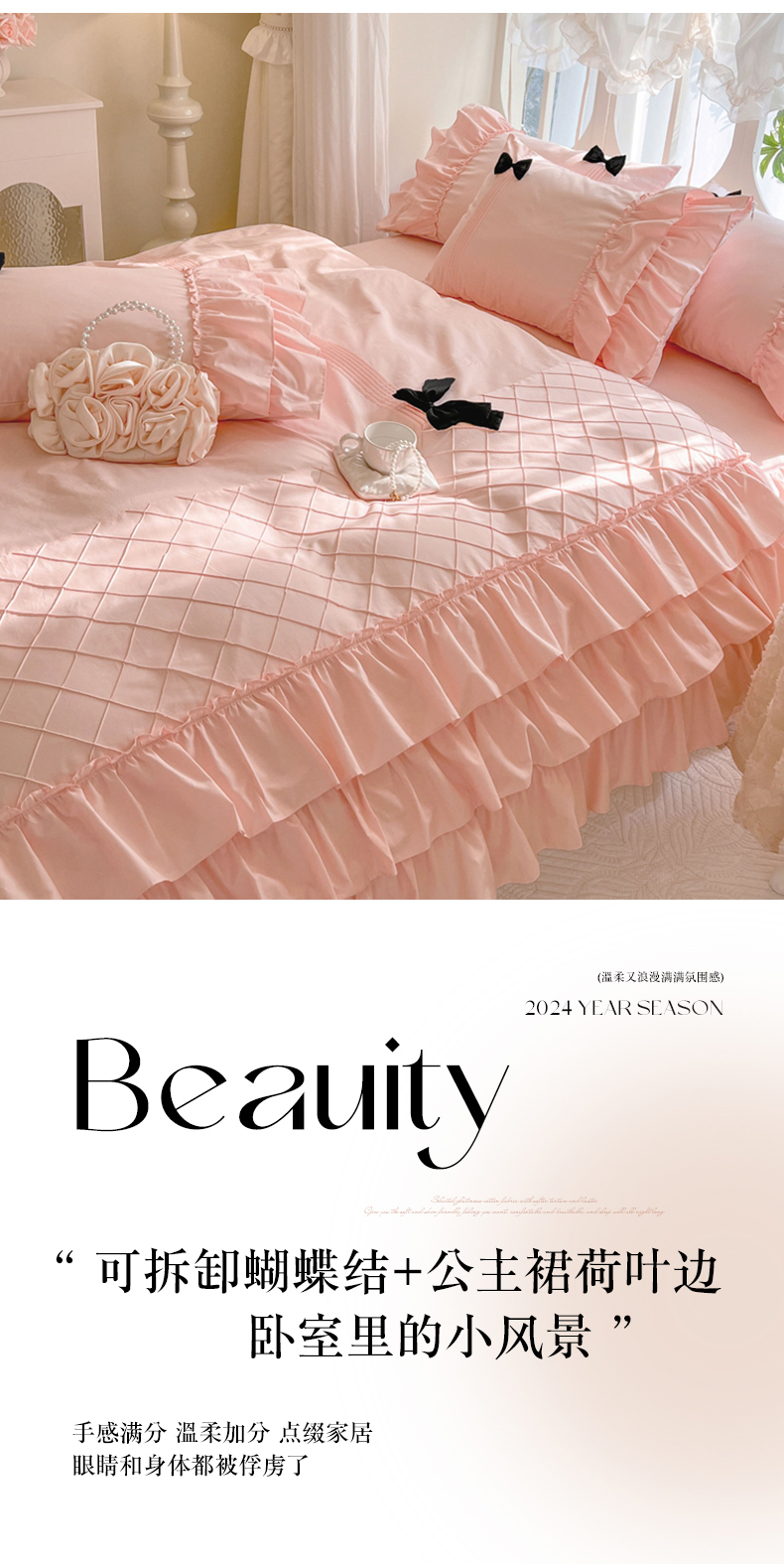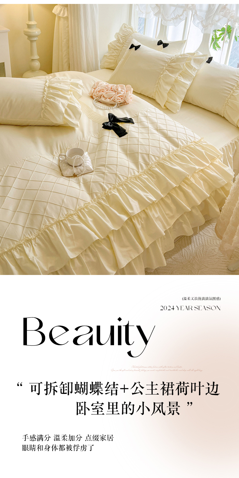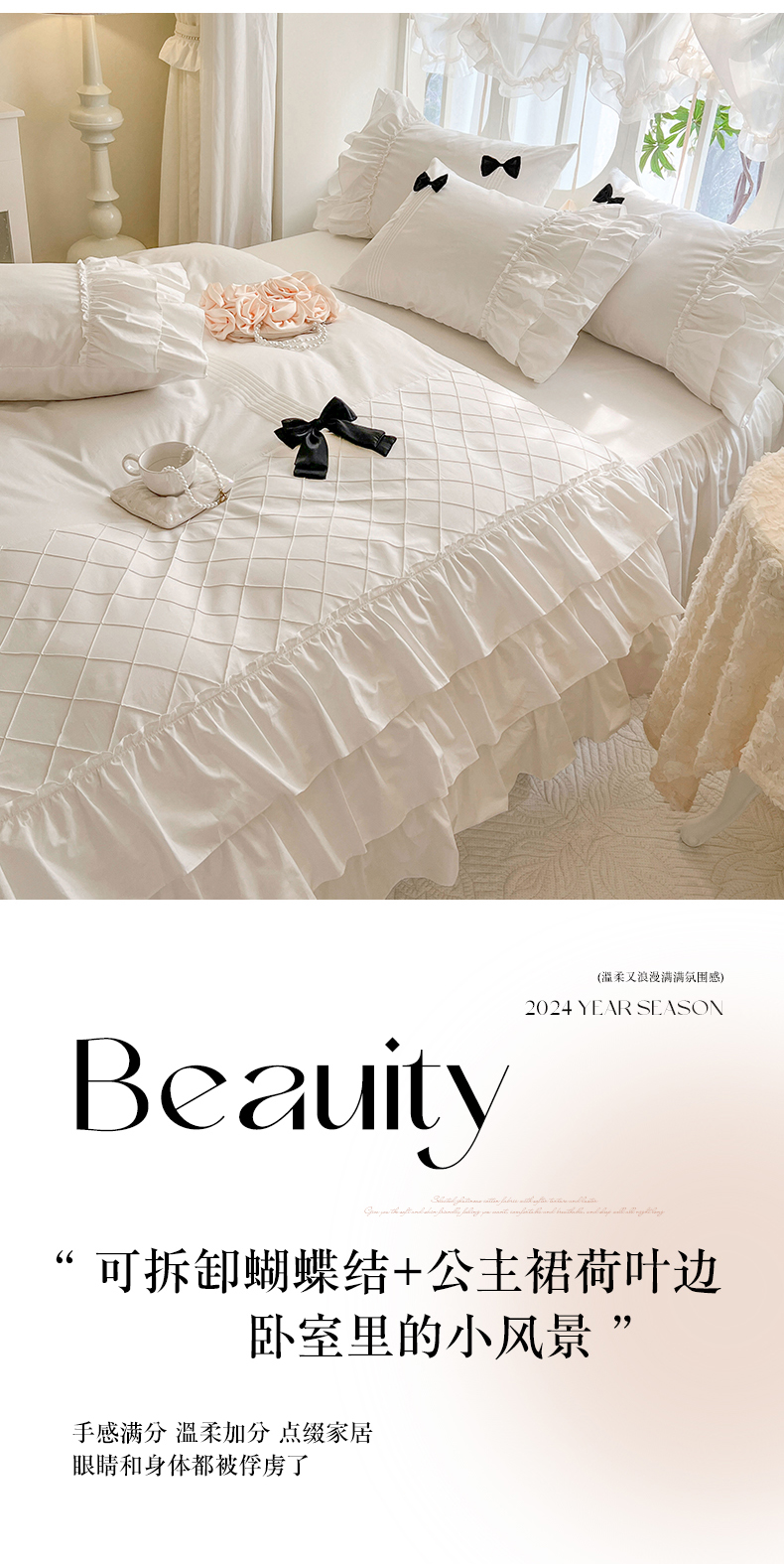 当前位置: 91家纺网 > 商品网购 > 床品套件 > 四件套 > 全棉普通四件套 > (总)惯盈家纺2025新款全棉华夫格公主裙四件套-糖心公主