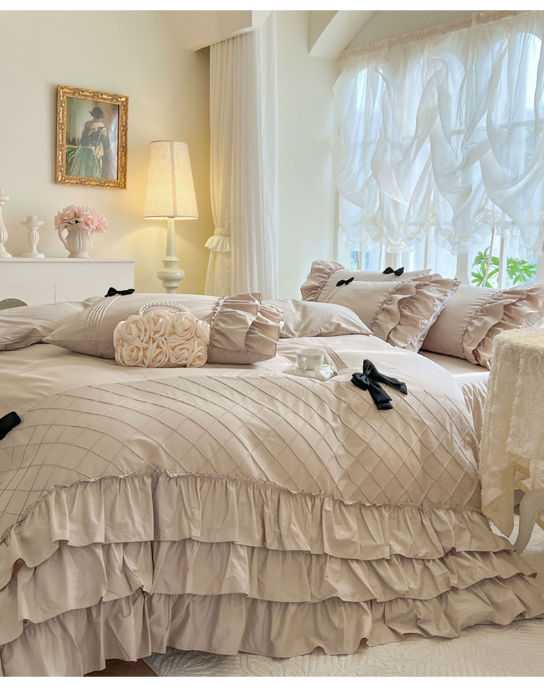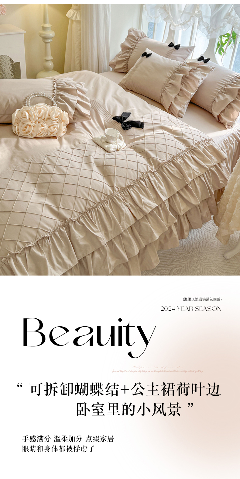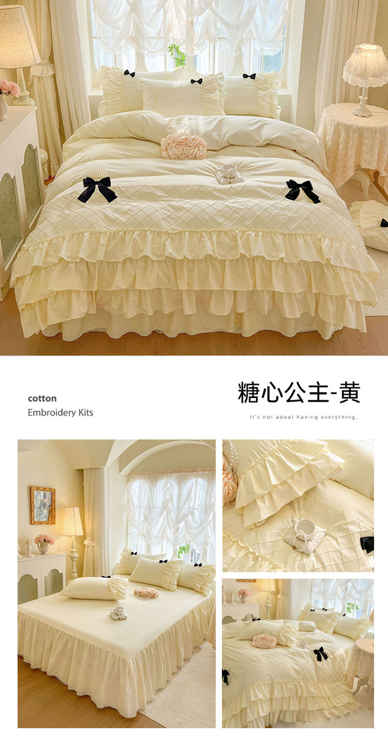当前位置: 91家纺网 > 商品网购 > 床品套件 > 四件套 > 全棉普通四件套 > (总)惯盈家纺2025新款全棉华夫格公主裙四件套-糖心公主