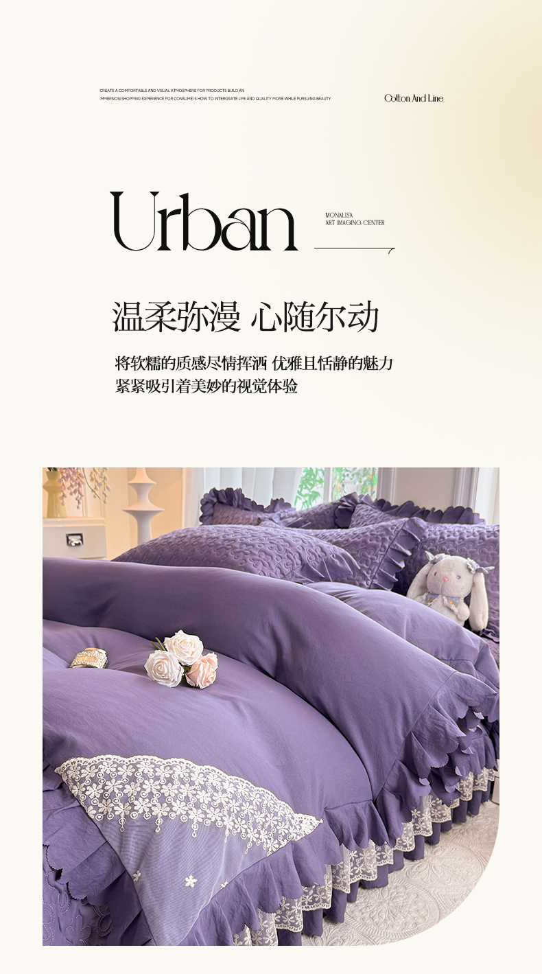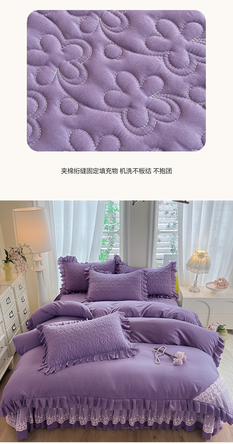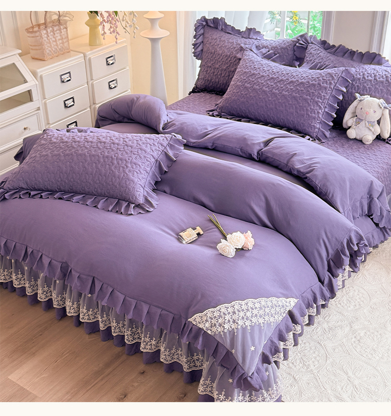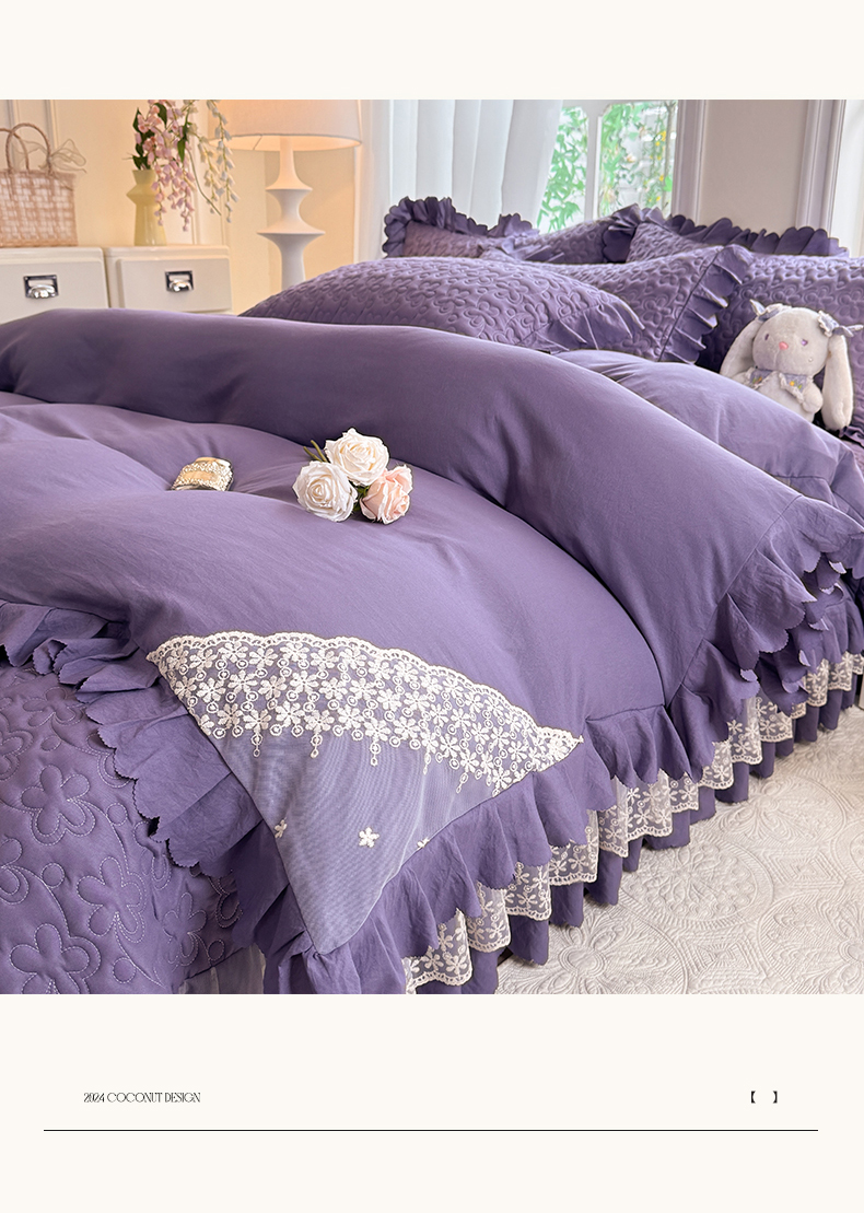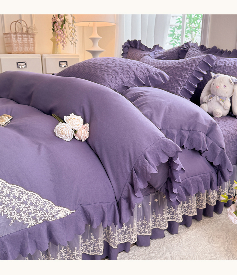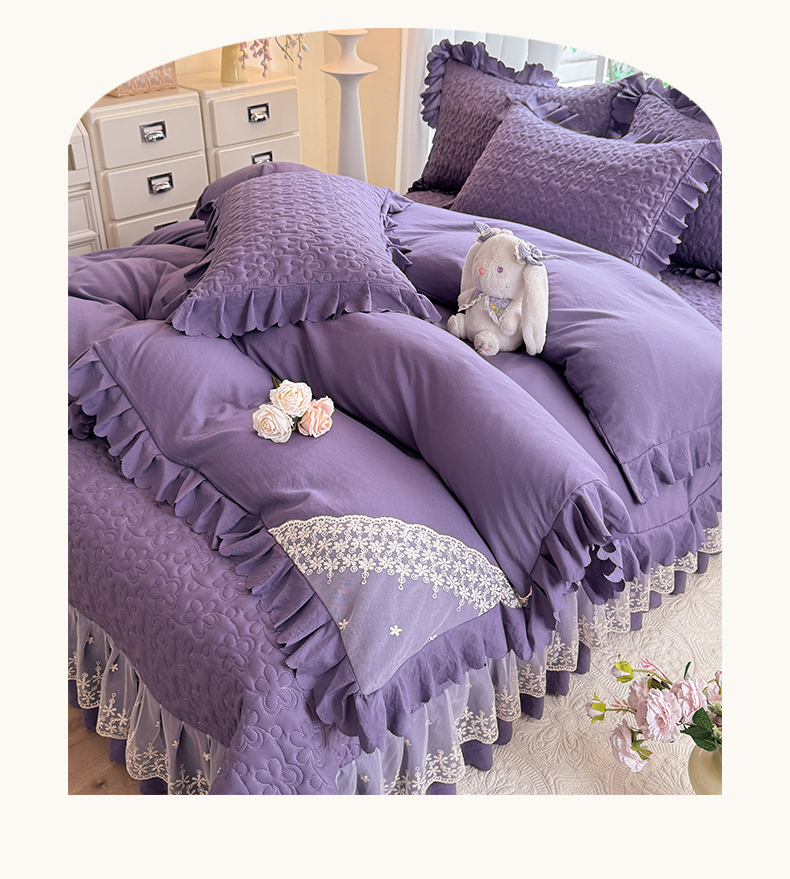 当前位置: 91家纺网 > 商品网购 > 床品套件 > 四件套 > 其它四件套 > 九诺家纺 2025新款花夕云朵棉蕾丝花边床盖四件套 花夕-浪漫紫