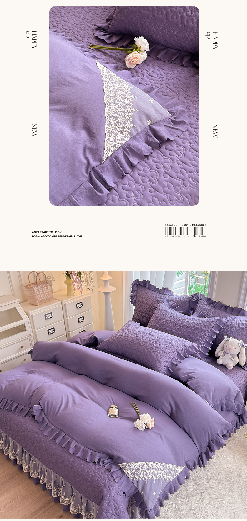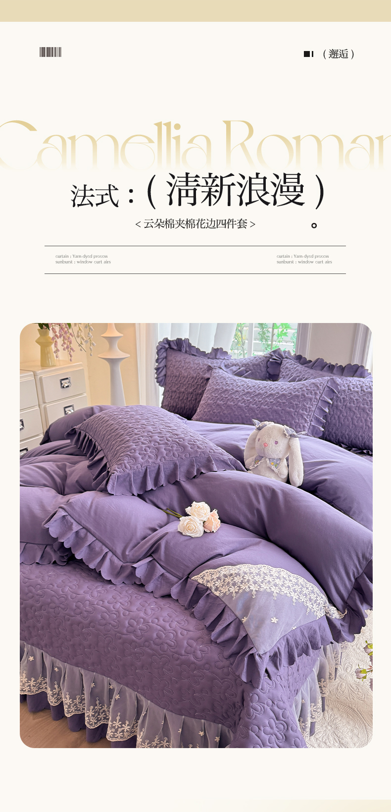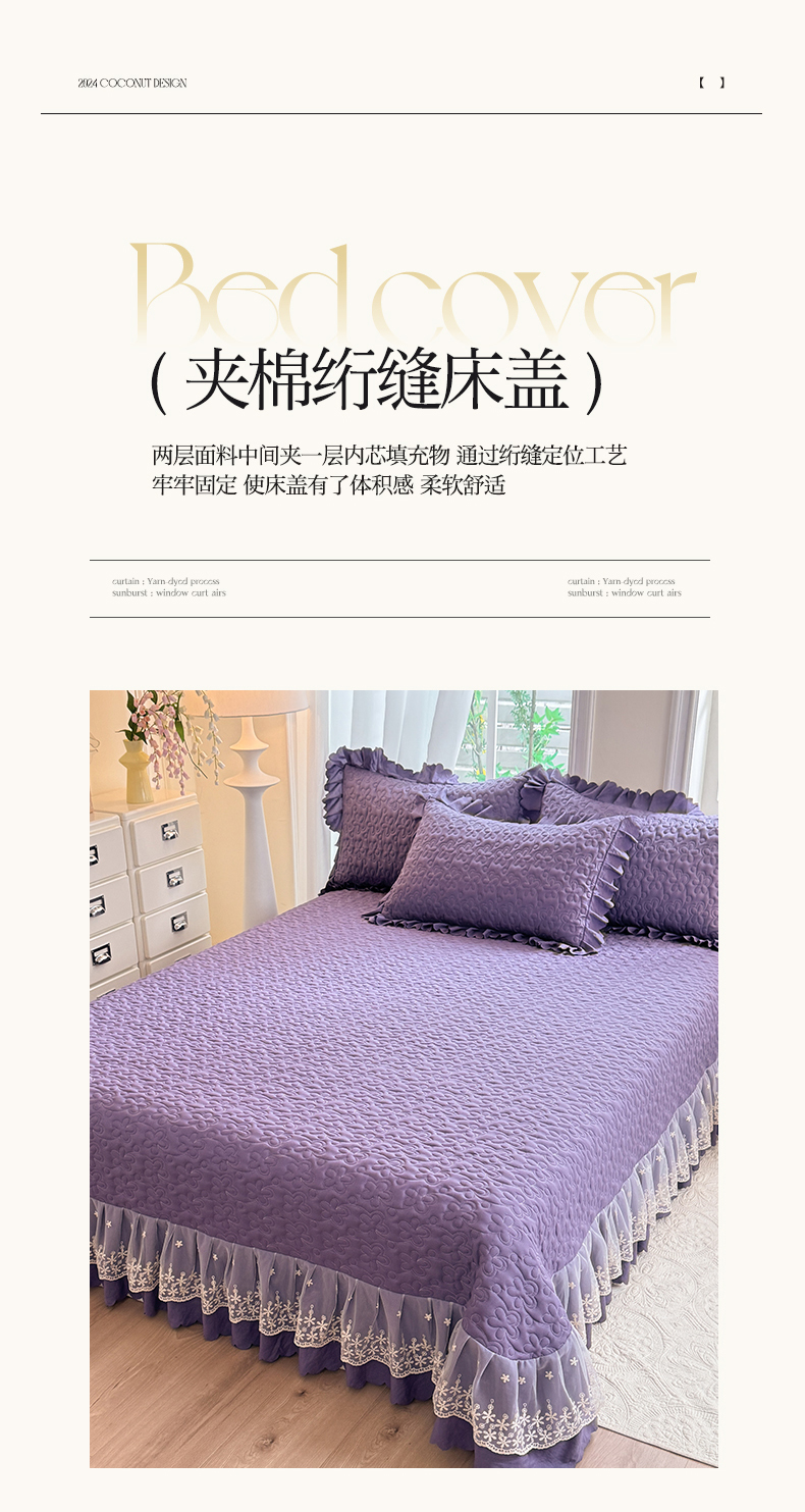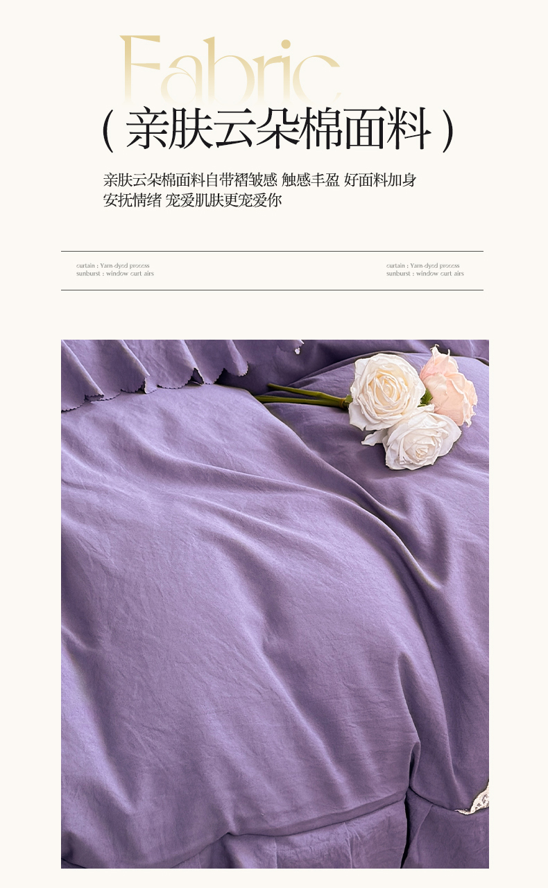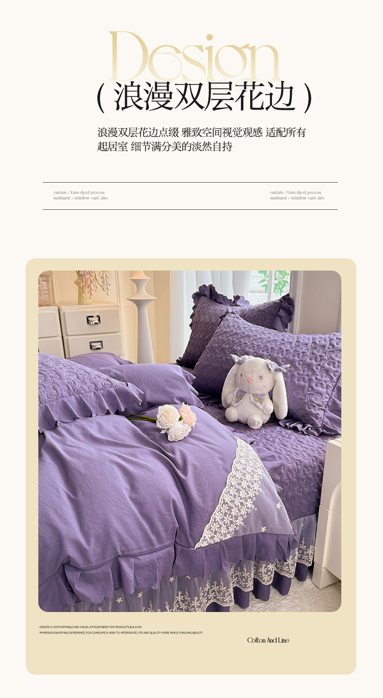 当前位置: 91家纺网 > 商品网购 > 床品套件 > 四件套 > 其它四件套 > 九诺家纺 2025新款花夕云朵棉蕾丝花边床盖四件套 花夕-浪漫紫