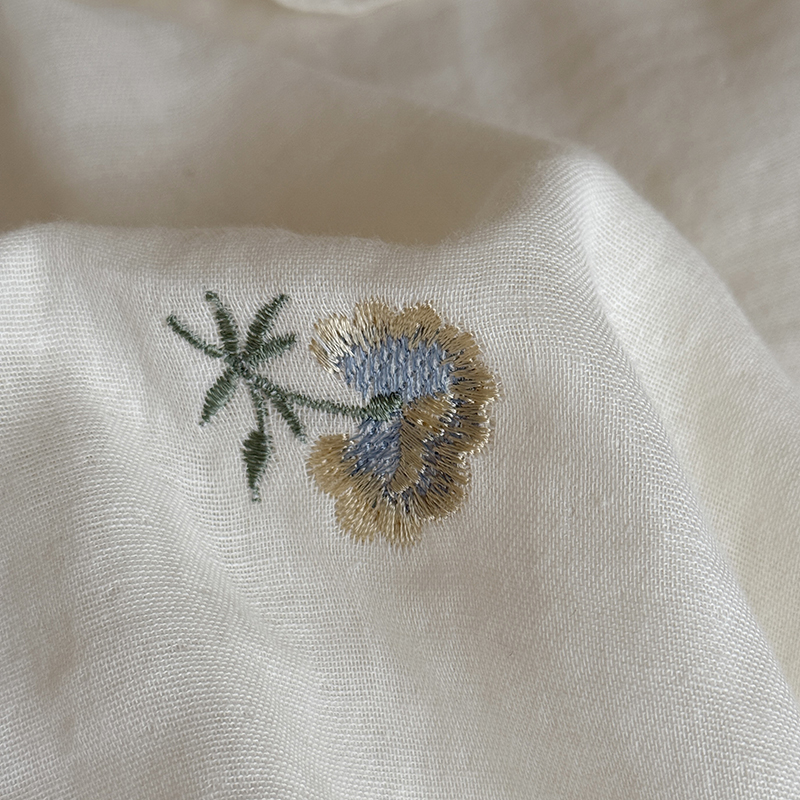 商品名称:佳汐蓝 2025春夏新品双层皱皱纱刺绣+荷叶边四件套--花与浔 奶白