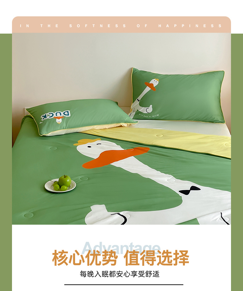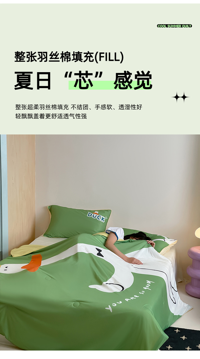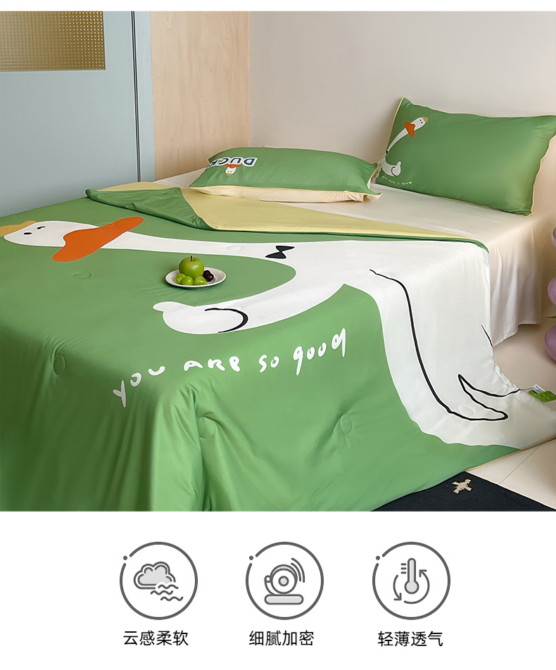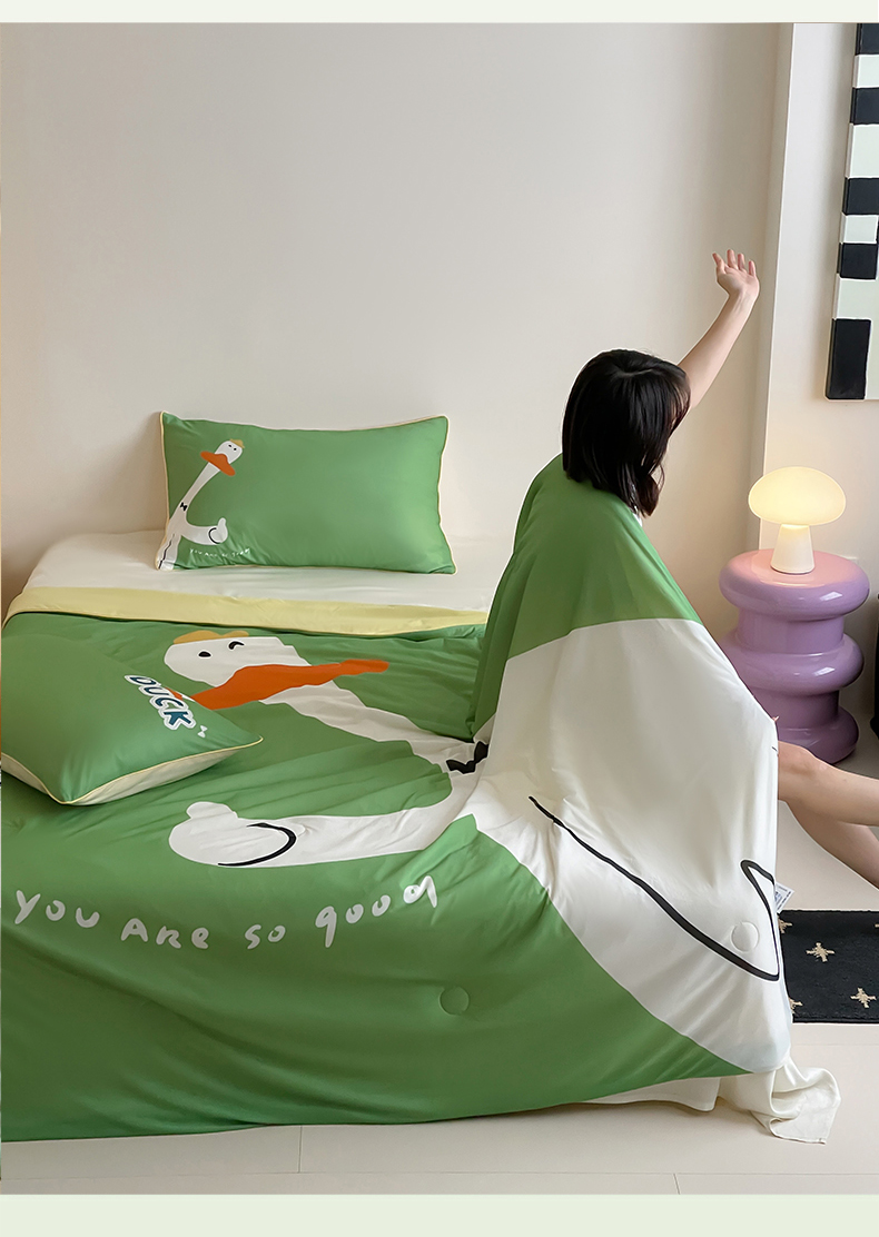 商品名称:大彩家居 2025新款凉感丝大版数码印花夏凉被 快乐鸭