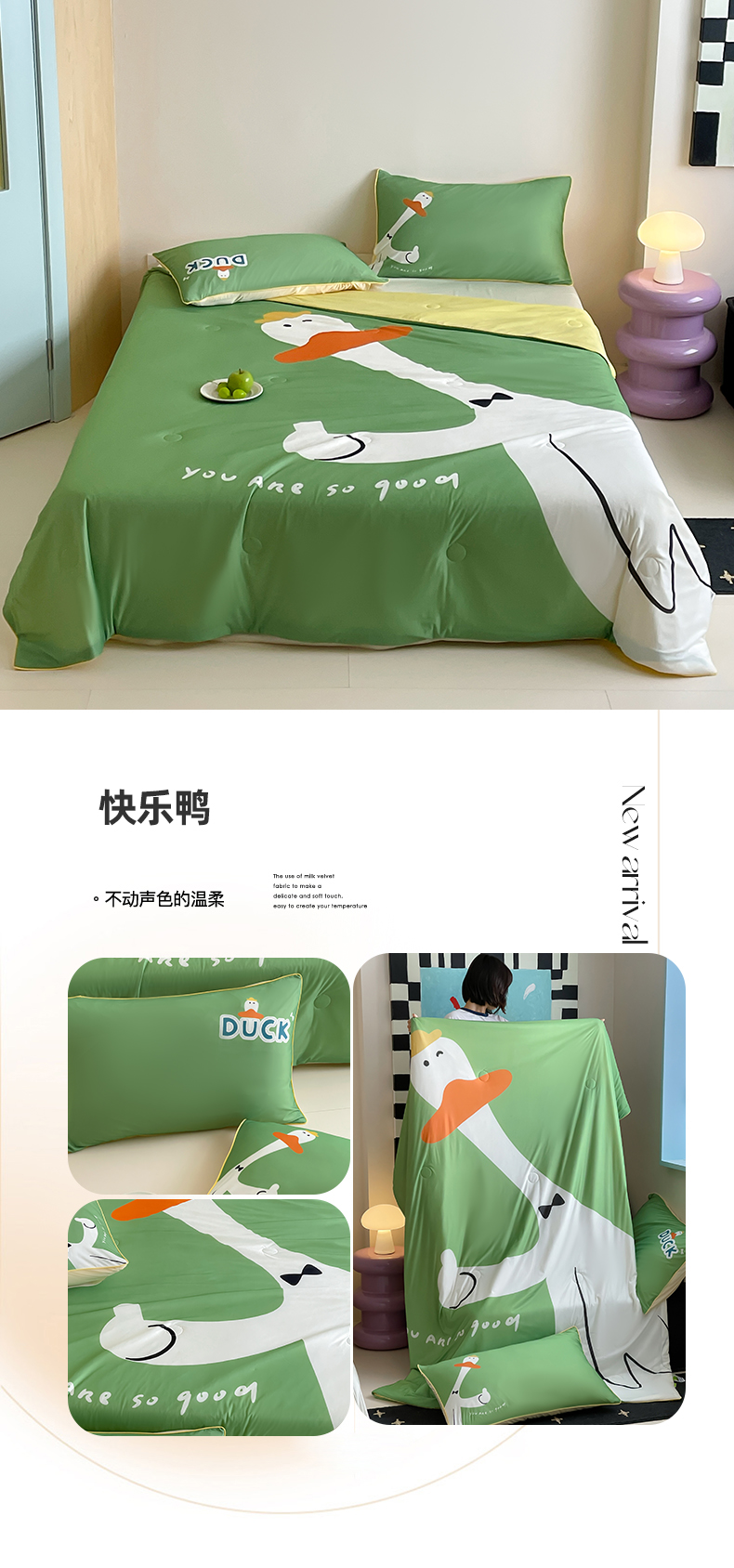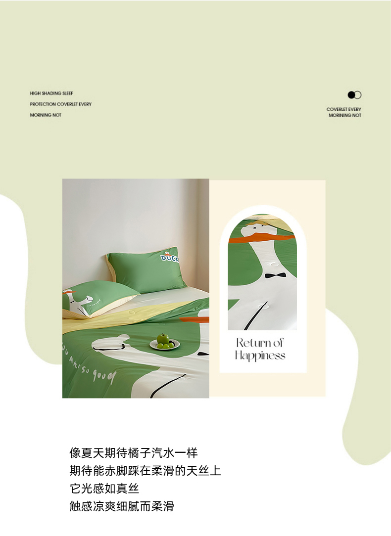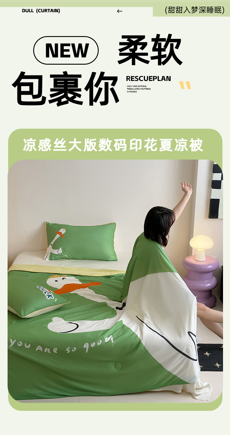 商品名称:大彩家居 2025新款凉感丝大版数码印花夏凉被 快乐鸭
