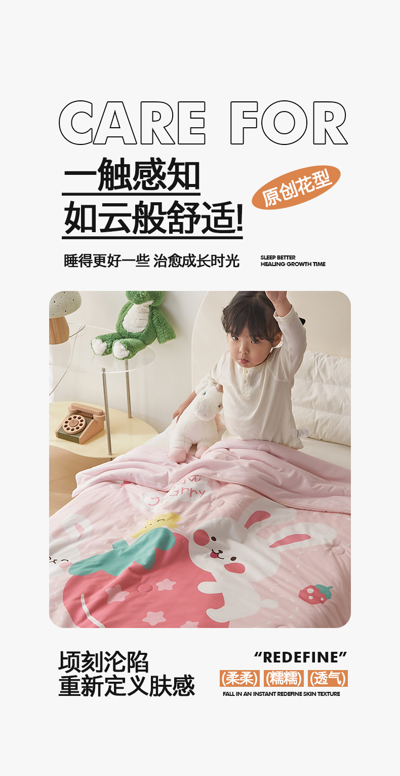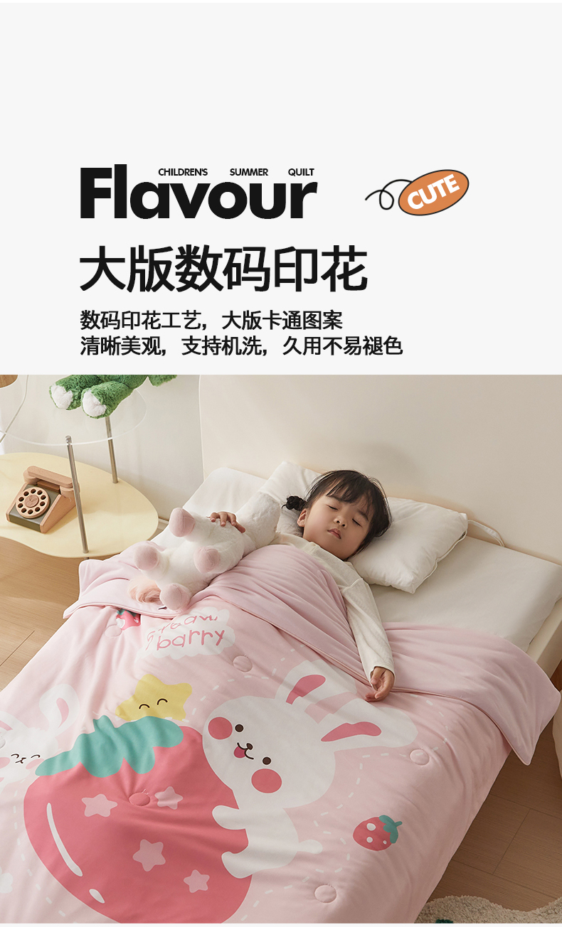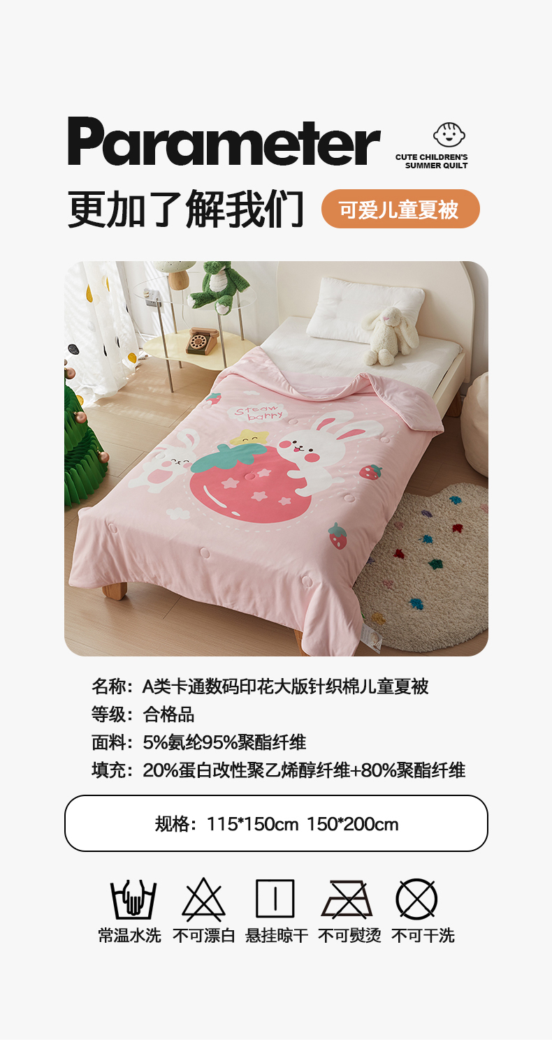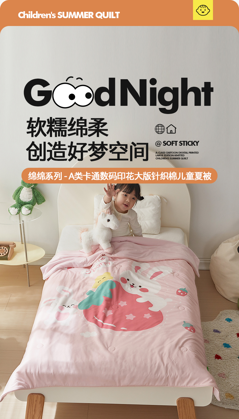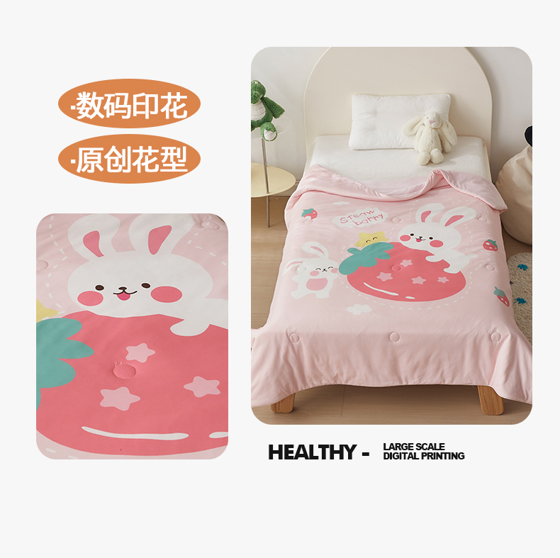 商品名称:荷马之梦 2025新款卡通数码印花大版针织棉儿童夏被-绵绵系列 糖果兔