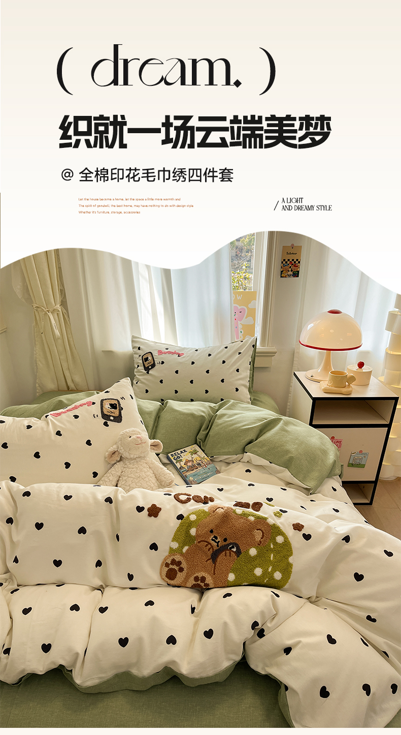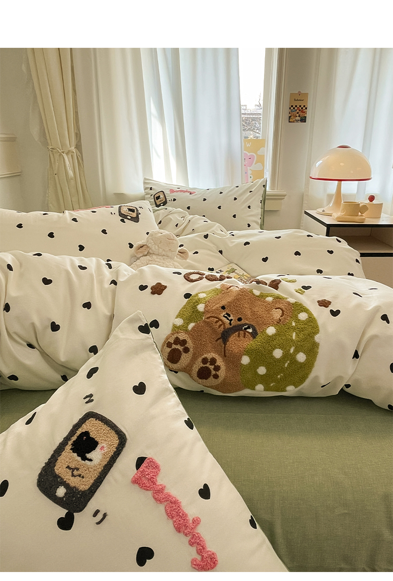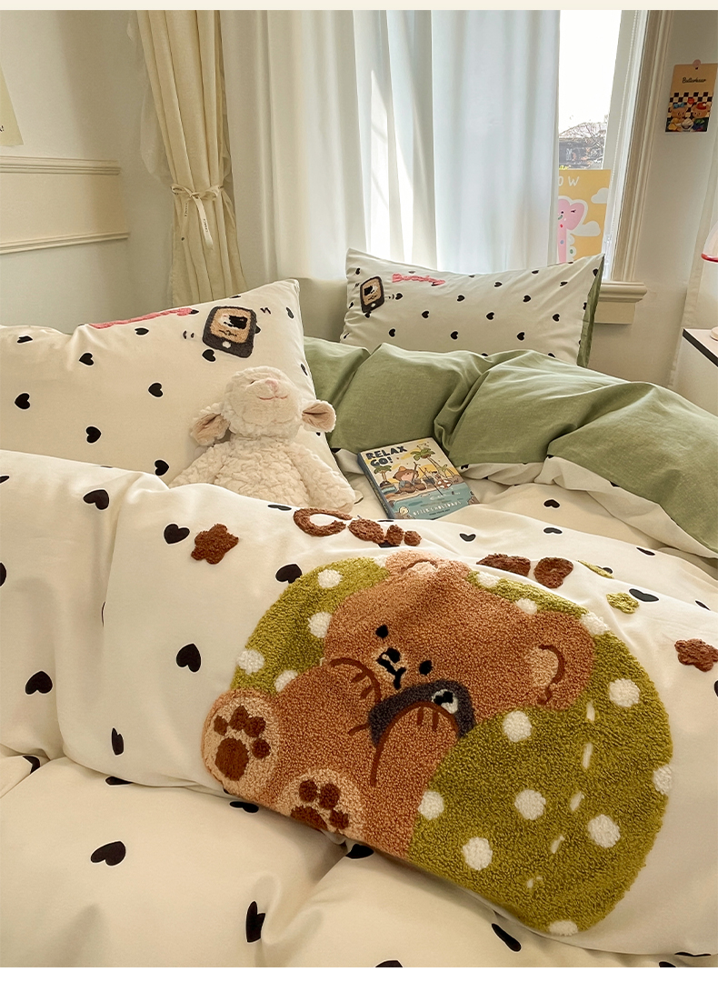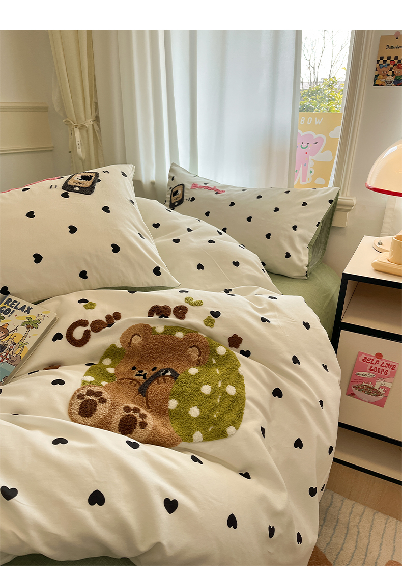 当前位置: 91家纺网 > 商品网购 > 床品套件 > 四件套 > 全棉普通四件套 > 雅居纺家纺 2025春夏新款全棉纯棉毛巾绣四件套 慵懒小熊