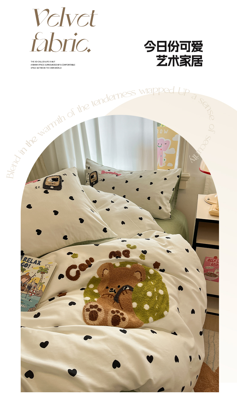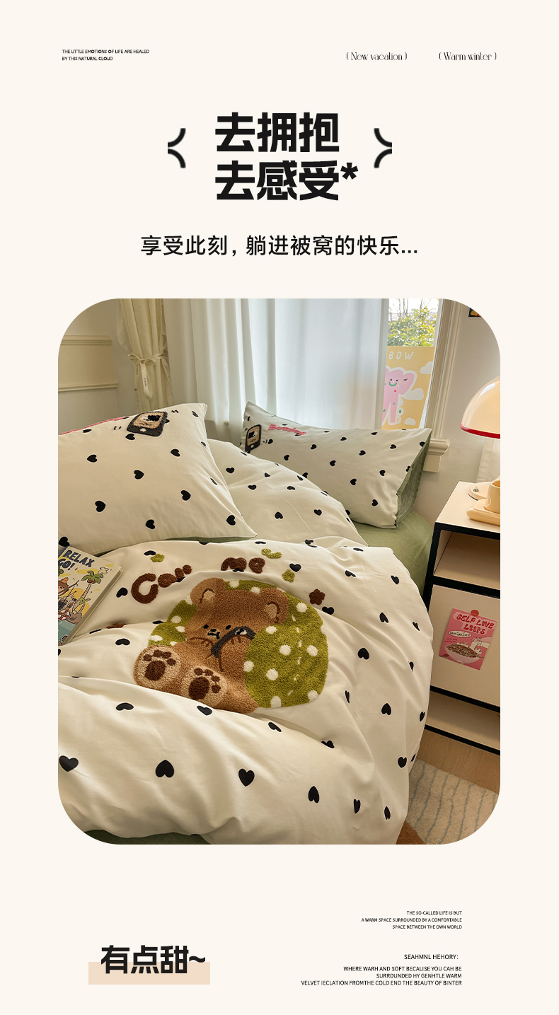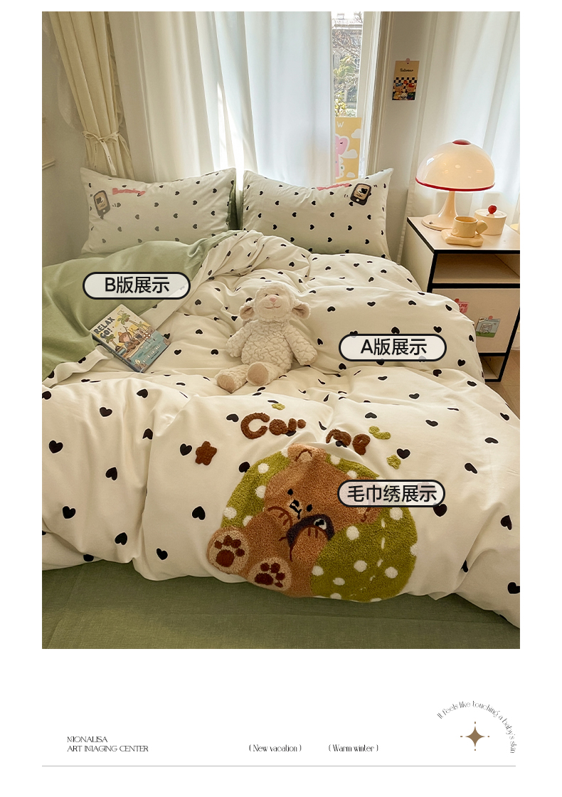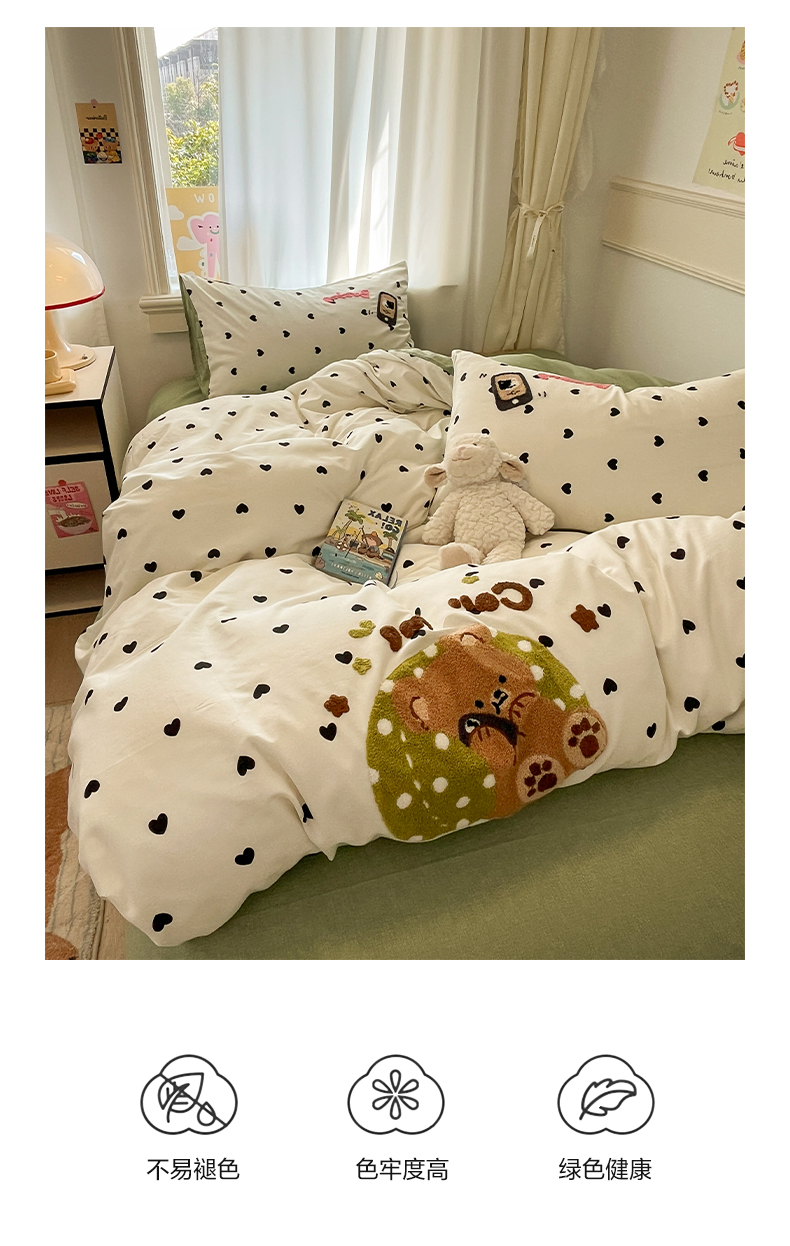 当前位置: 91家纺网 > 商品网购 > 床品套件 > 四件套 > 全棉普通四件套 > 雅居纺家纺 2025春夏新款全棉纯棉毛巾绣四件套 慵懒小熊
