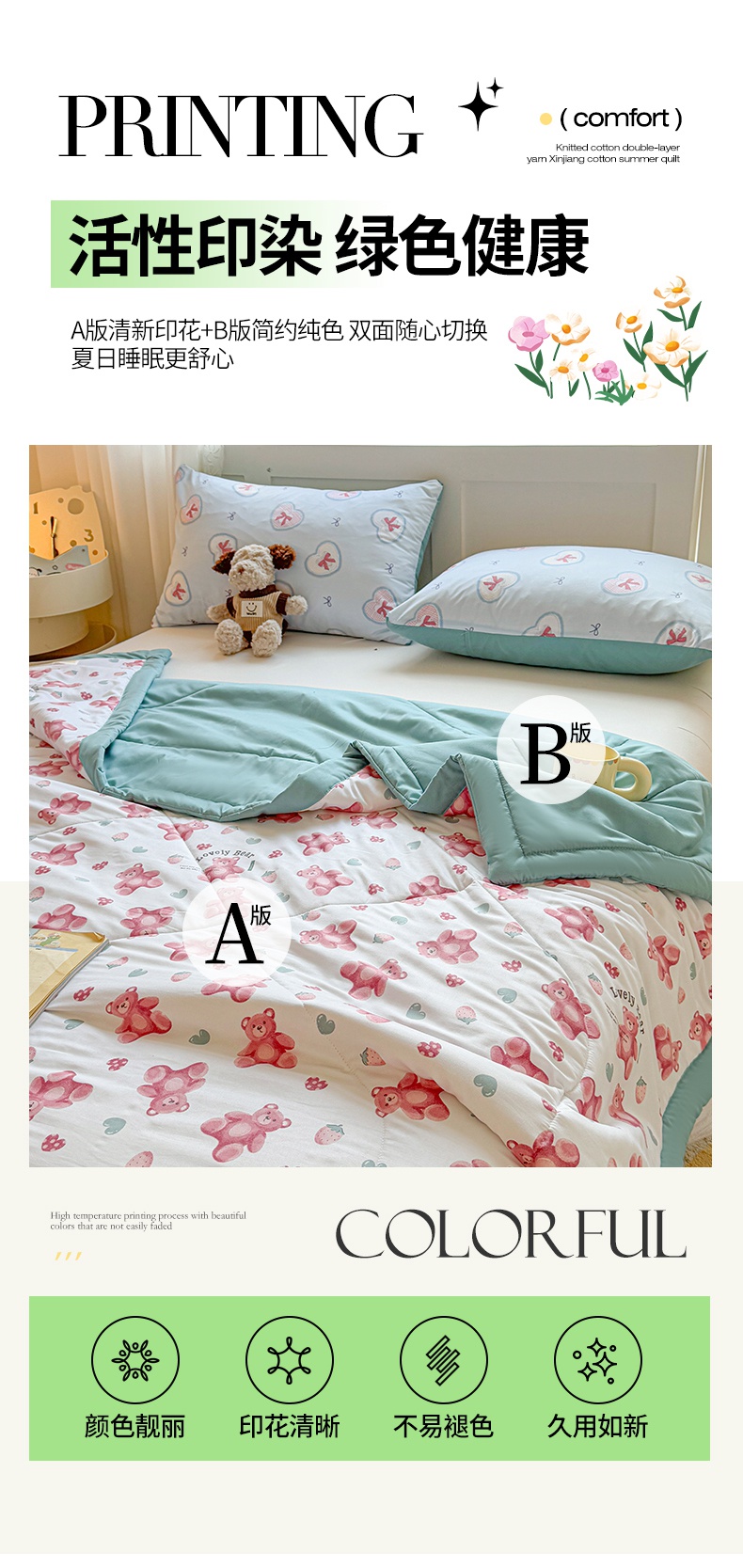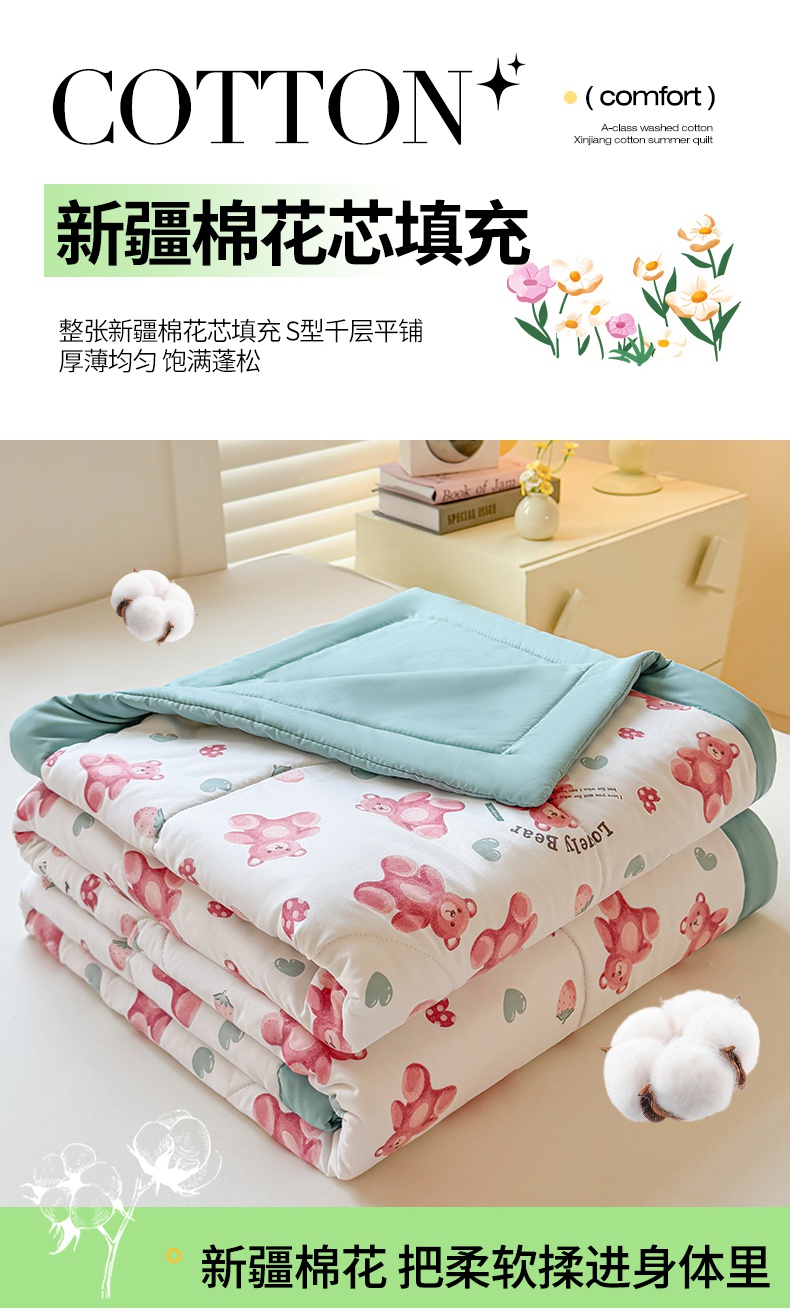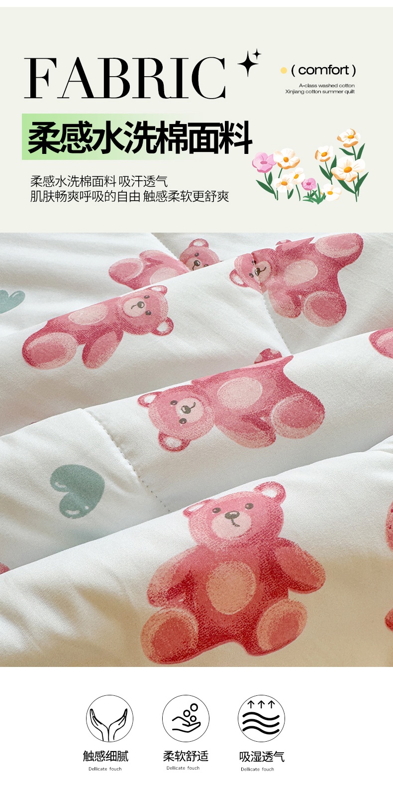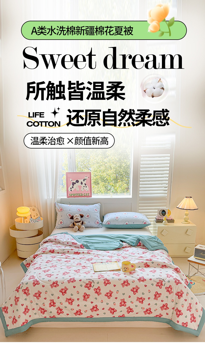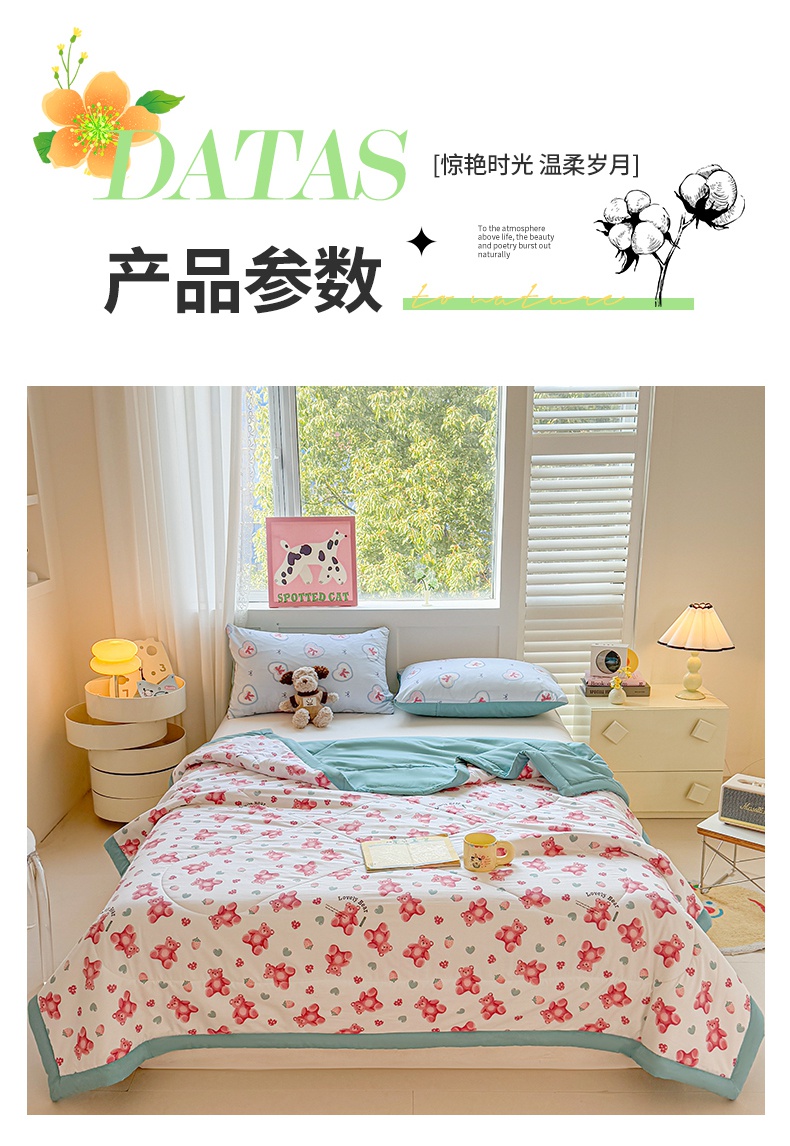 商品名称:雅颂缘 2025新款印花水洗棉新疆棉花夏被 草莓小熊