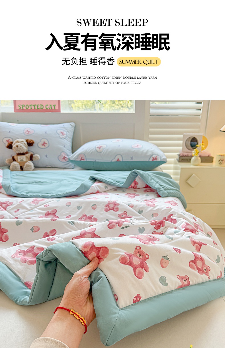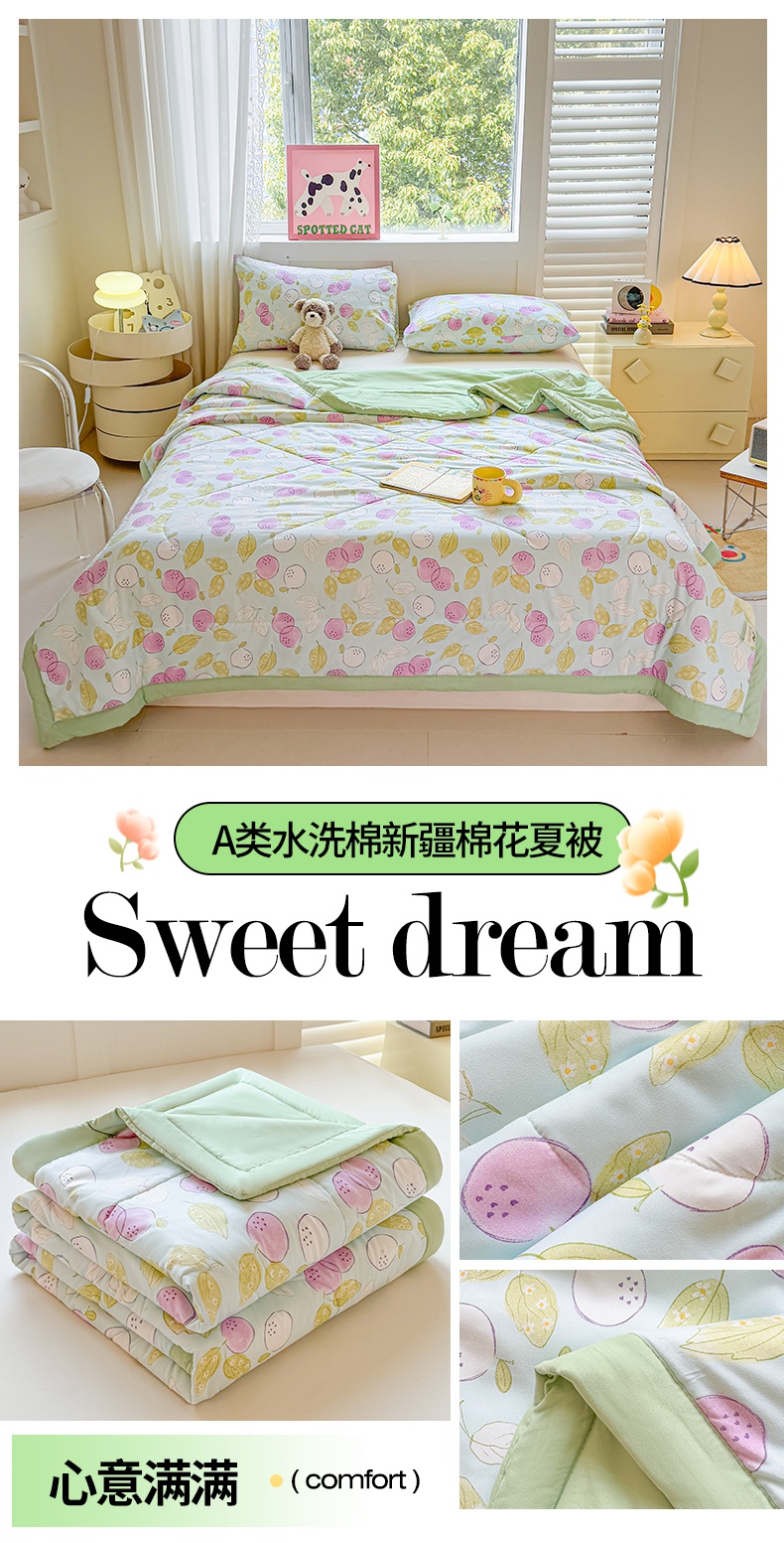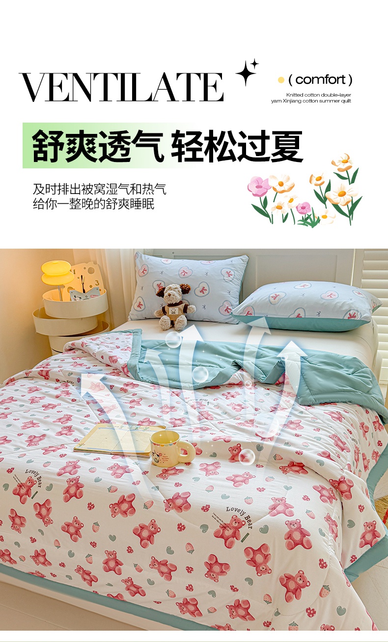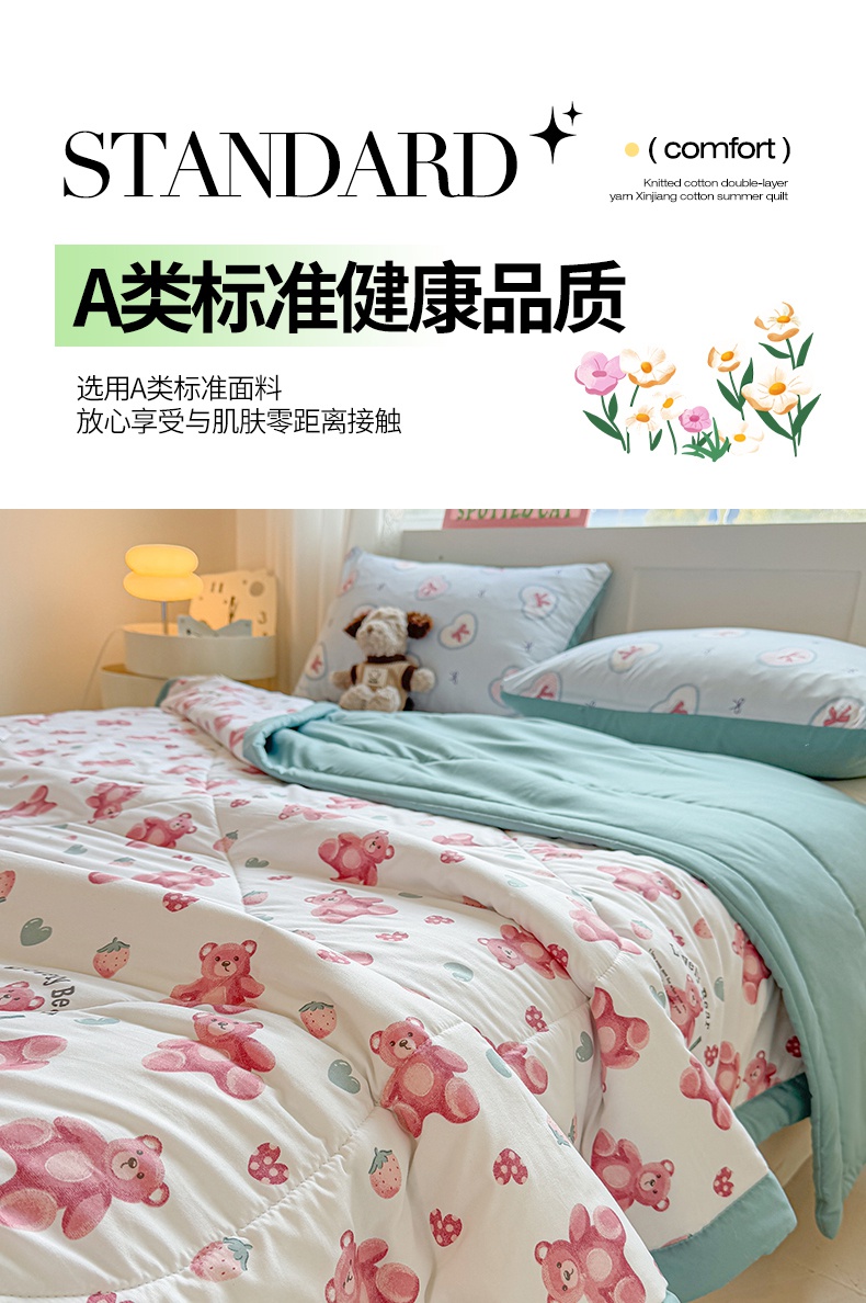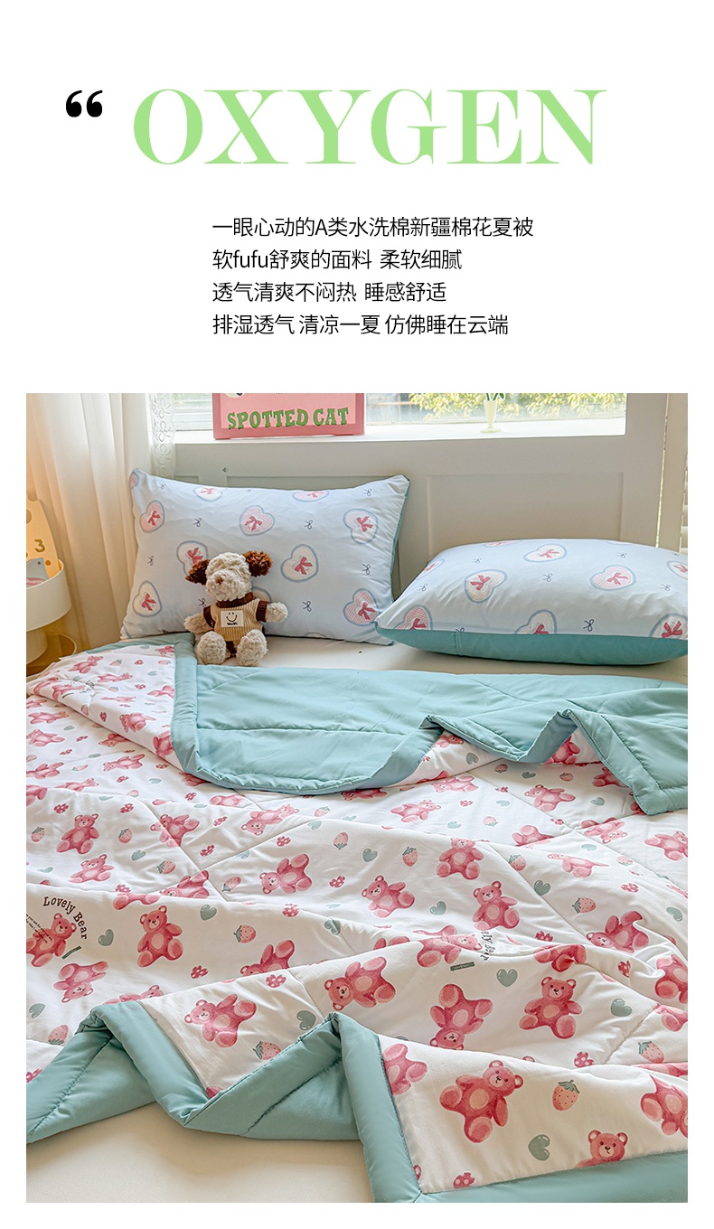 商品名称:雅颂缘 2025新款印花水洗棉新疆棉花夏被 草莓小熊