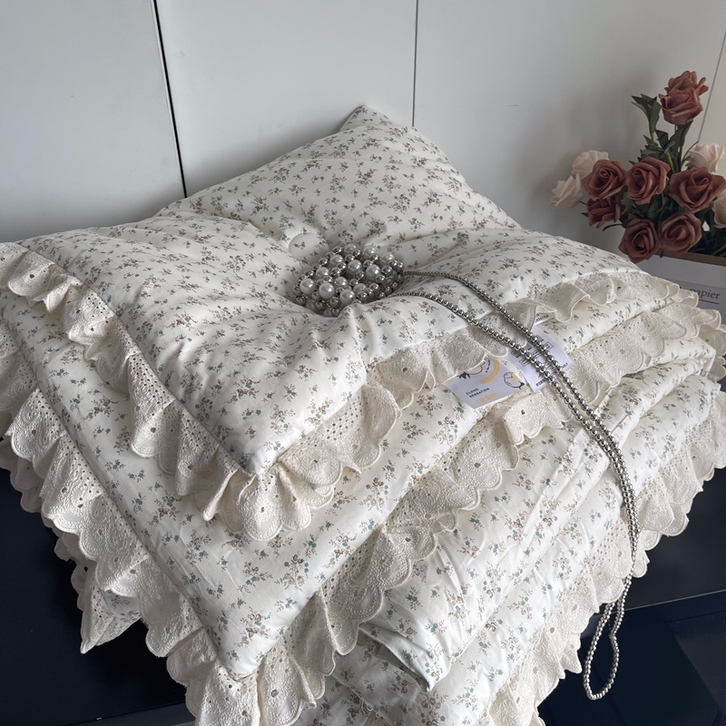 莱豫2025新款法式纯棉夏被春秋被 繁花米白