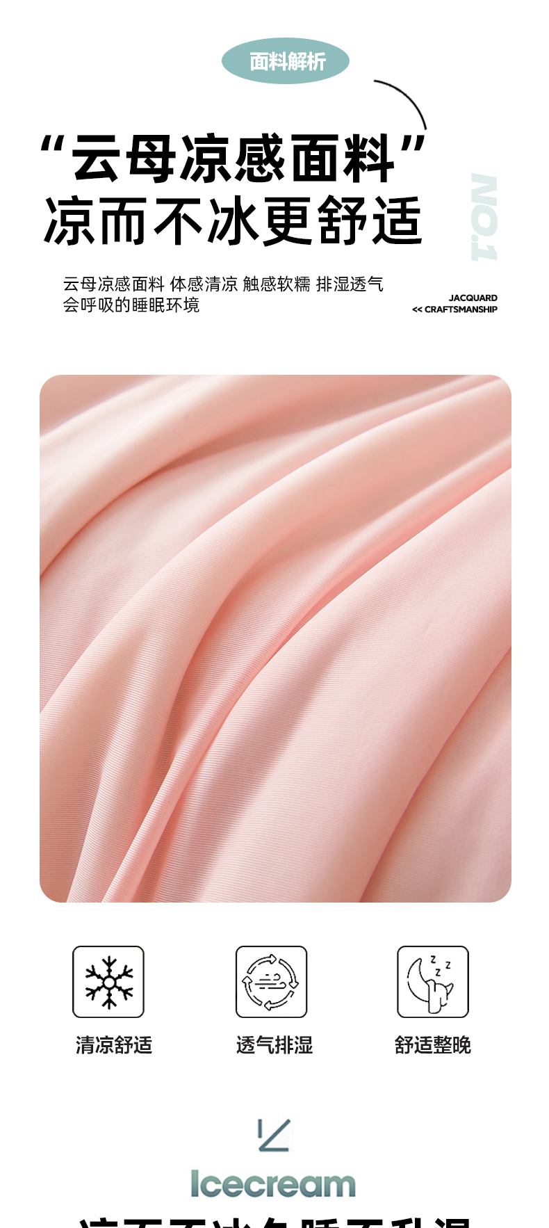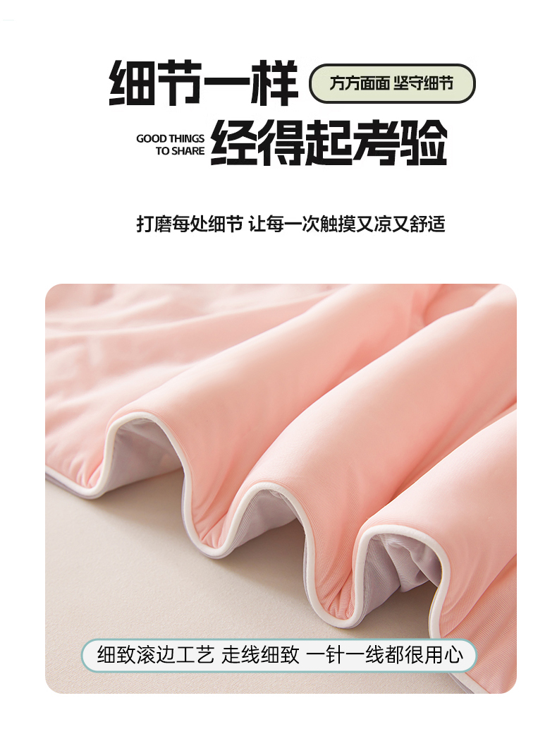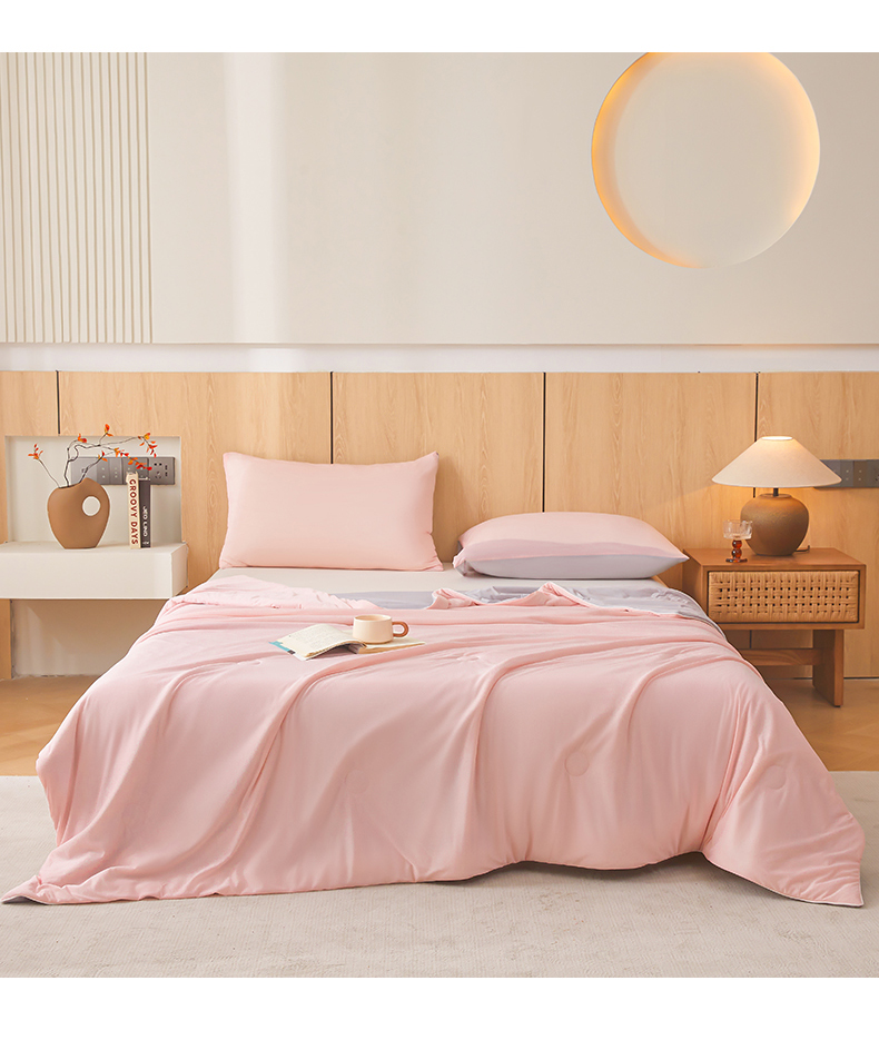 商品名称:鸿羽樱家纺《原伊菲晓》 2025新款夏被空调被A类云母氨纶凉感丝夏凉被 梦幻粉+山灰