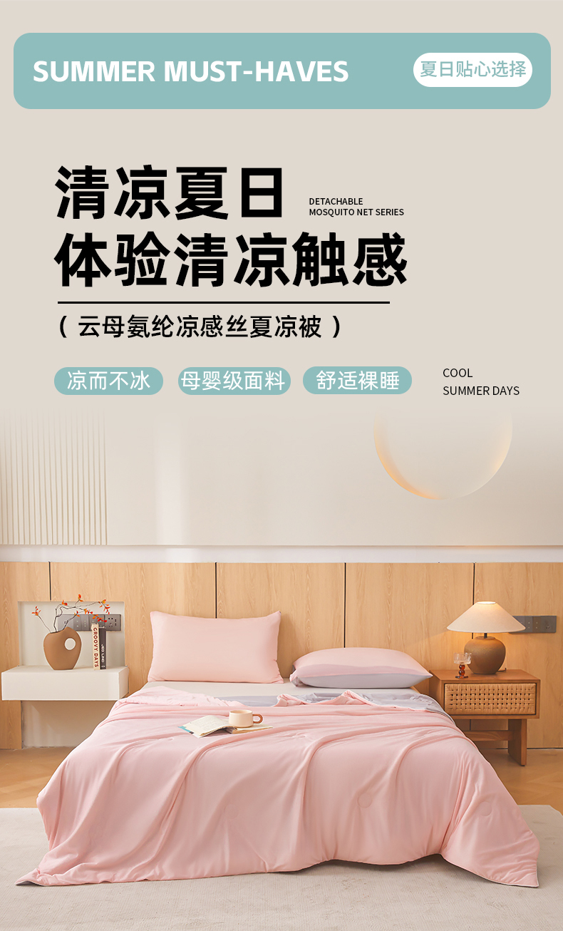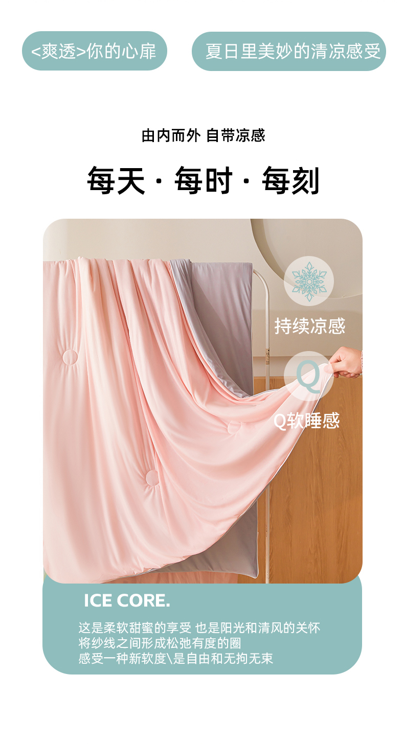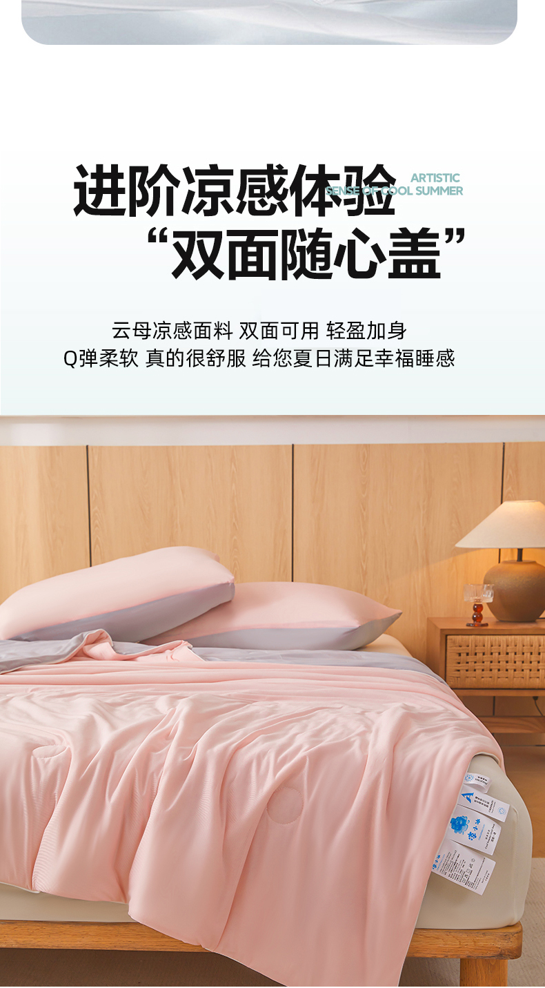 鸿羽樱家纺《原伊菲晓》 2025新款夏被空调被A类云母氨纶凉感丝夏凉被 梦幻粉+山灰