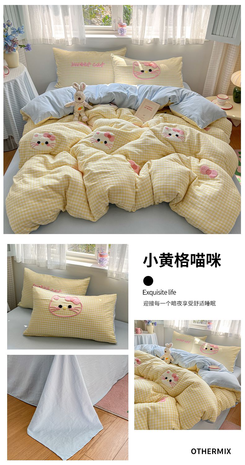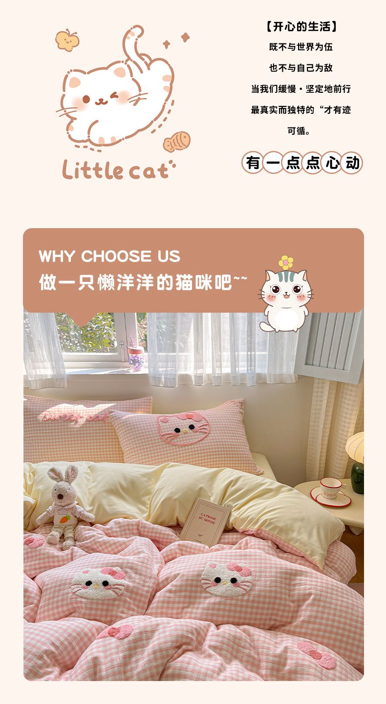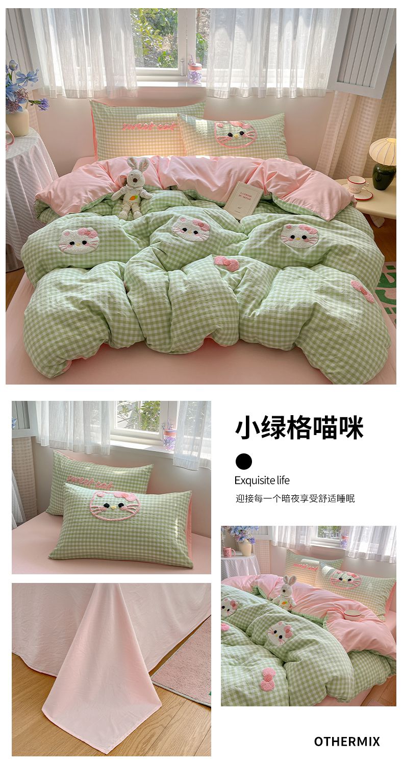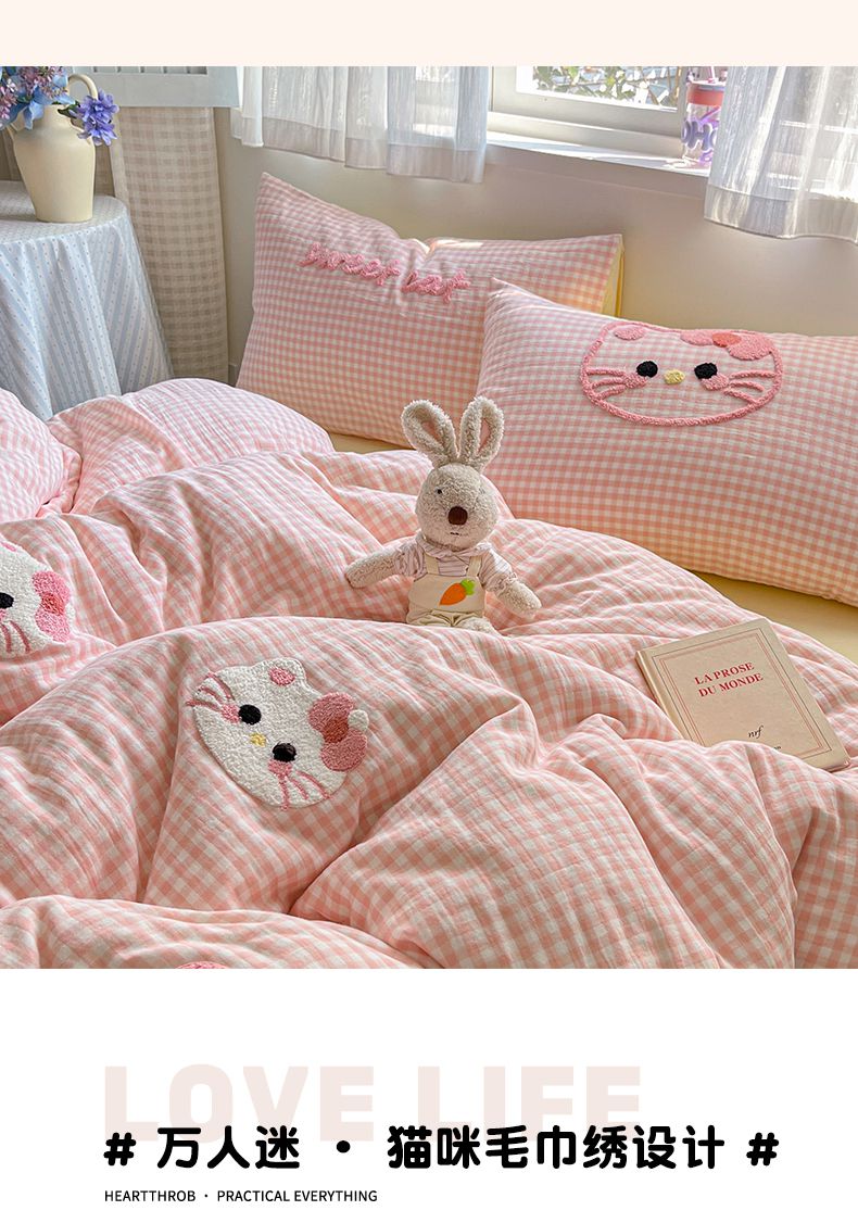 当前位置: 91家纺网 > 商品网购 > 床品套件 > 四件套 > 水洗棉四件套 > 2025新款水洗棉猫咪毛巾绣四件套 小绿格喵咪