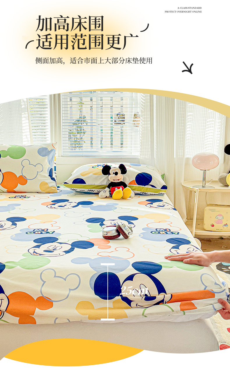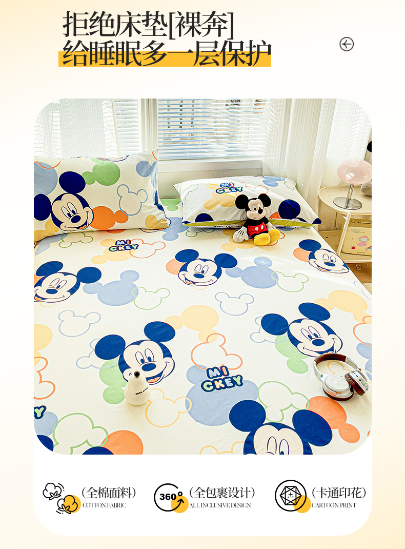 • 91家纺网 家纺一手货源 找家纺 名兮家居 2025新款正版授权经典奥特曼-三丽鸥全棉印花床笠 调皮米奇