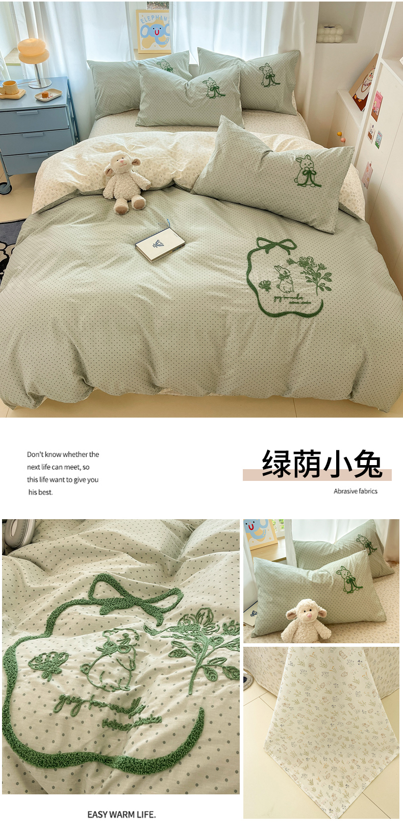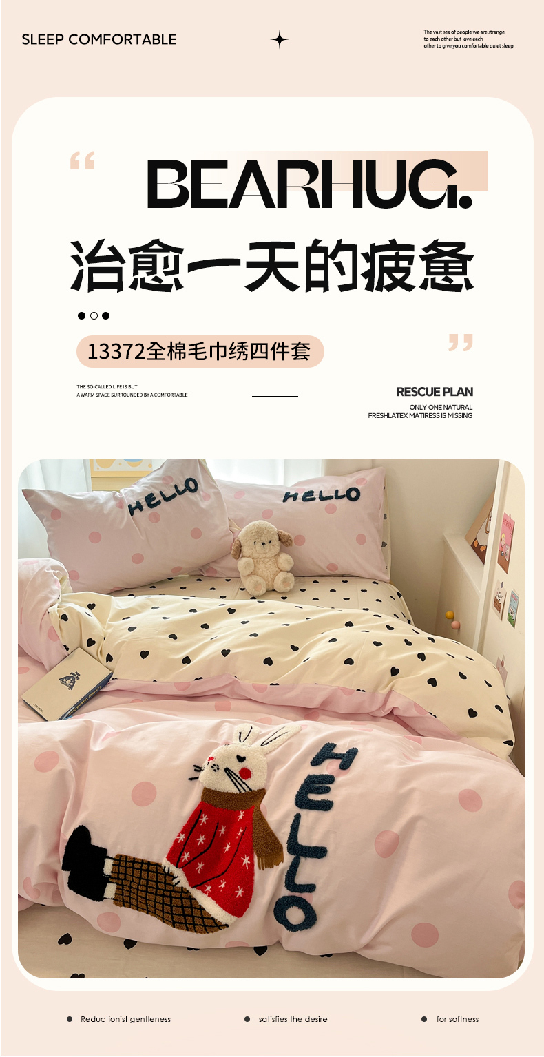(总)沐辰 2025新款13372全棉毛巾绣四件套,安逸兔,超多狗狗,点点玫瑰,蝴蝶结小兔,绿荫小兔,围巾狗狗,线头狗狗