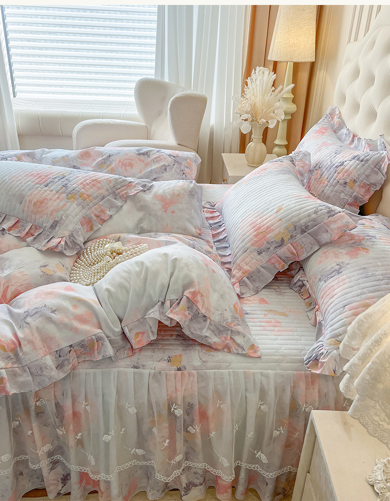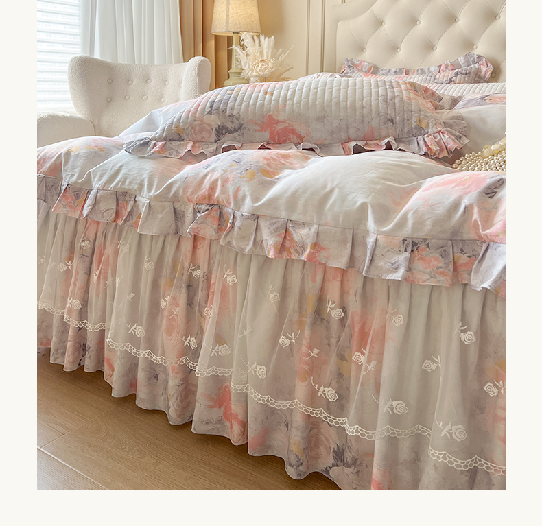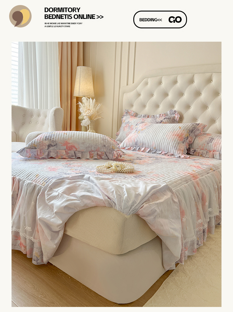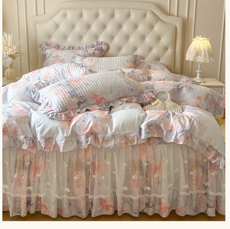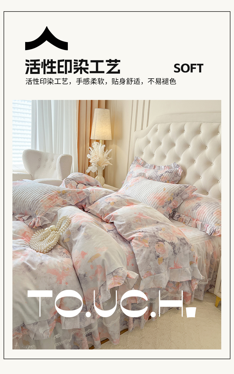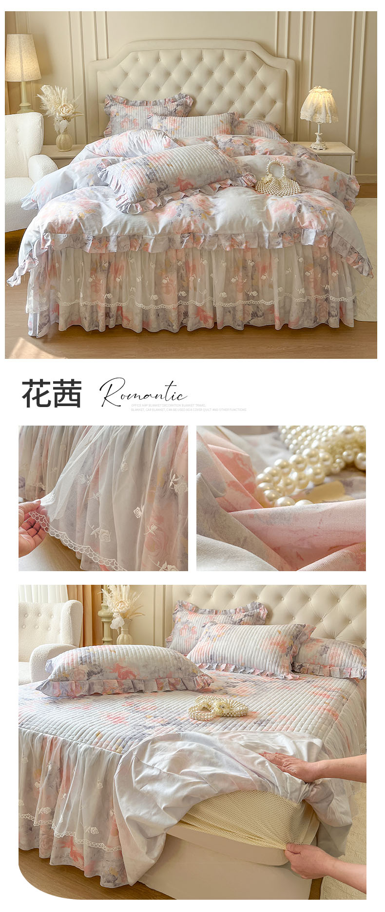 当前位置: 91家纺网 > 商品网购 > 床品套件 > 四件套 > 全棉普通四件套 > 恋尚 2025新款全棉纯棉蕾丝印花床笠裙四件套 花牺