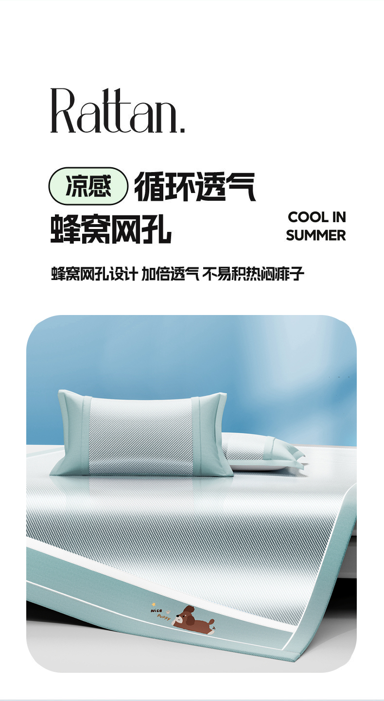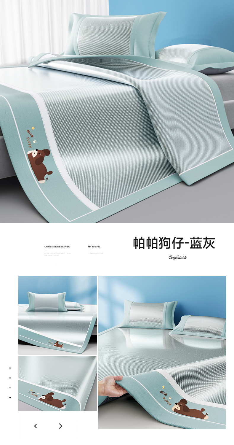 商品名称:川悦生活 2025新款纯色凉感冰丝席-大床 帕帕狗仔-蓝灰