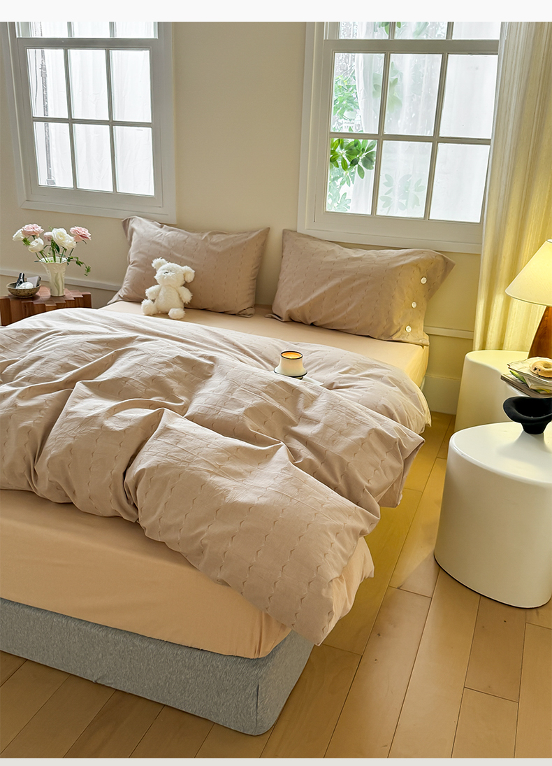 当前位置: 91家纺网 > 商品网购 > 床品套件 > 四件套 > 全棉普通四件套 > 华超针织 2025新款全棉纯棉水洗提花四件套 -漾影 风格二 漾影奶茶