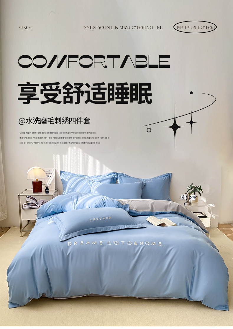 (总)芷凡家纺 2025新款水洗磨毛刺绣四件套-梦想