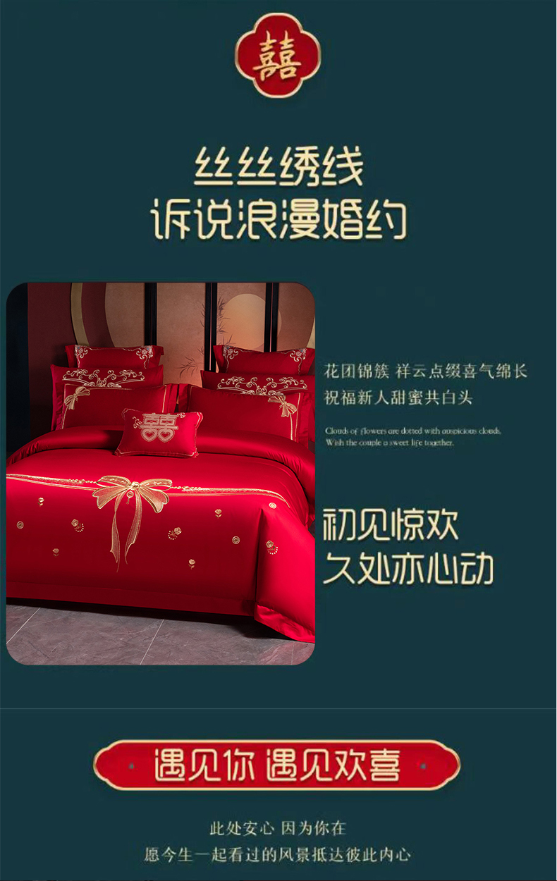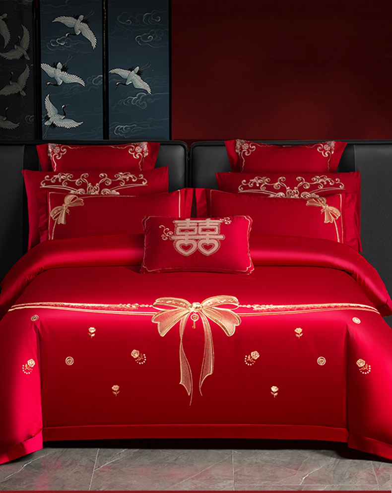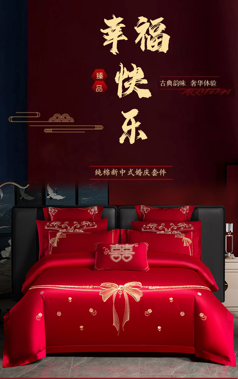 当前位置: 91家纺网 > 商品网购 > 床品套件 > 多件套 > 多件套 > 博之洋婚庆 2025新款全棉长绒棉刺绣新中式婚庆系列多件套幸福快乐