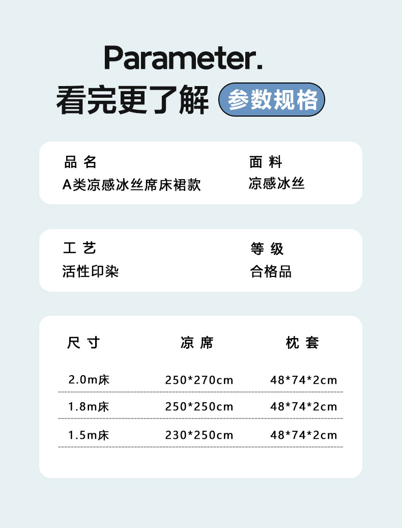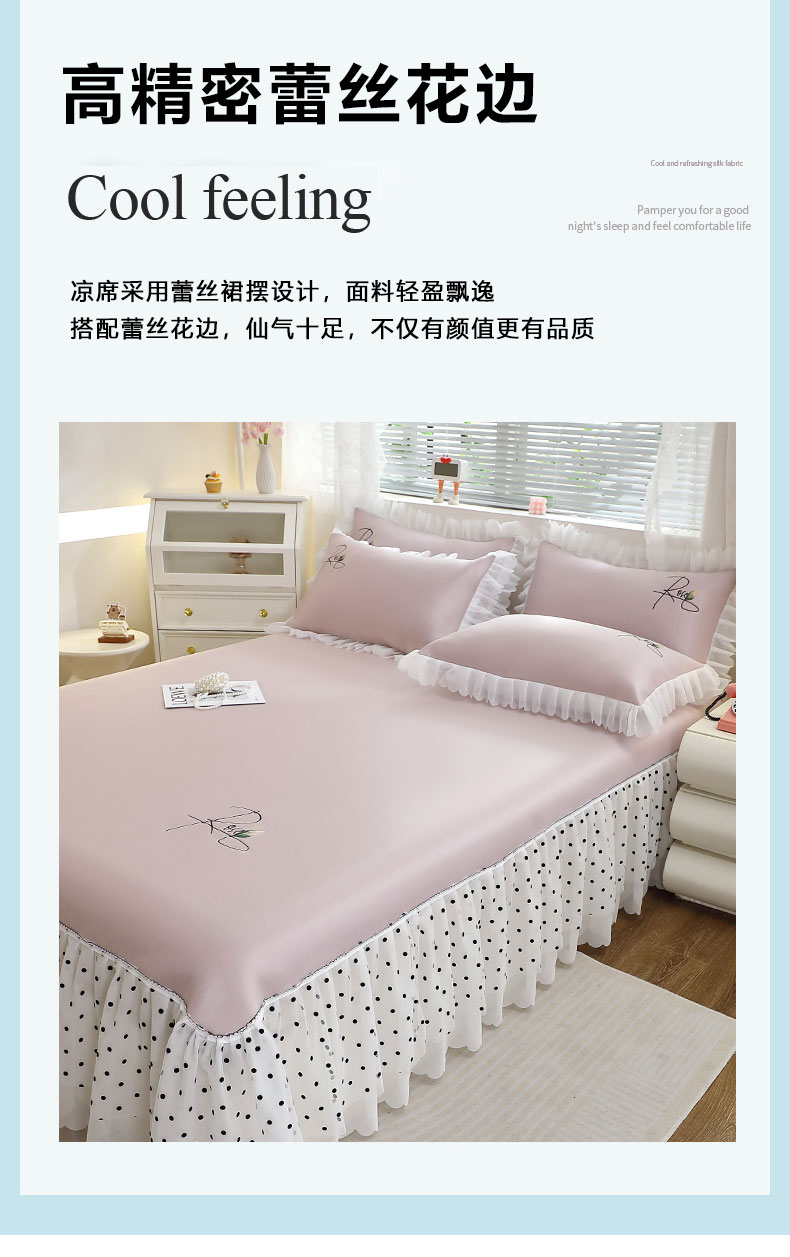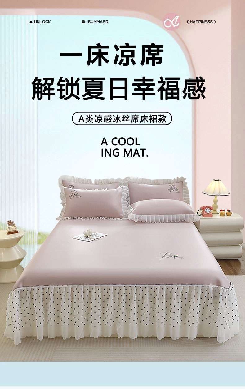 商品名称:雪夫人2025新款A类凉感冰丝席床裙款席子凉席 豆沙