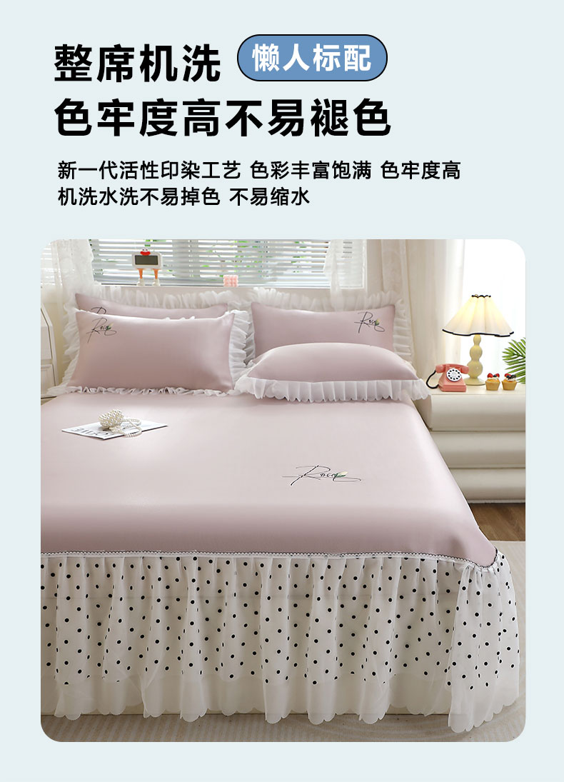(总)雪夫人 2025新款玫瑰提花渐变色床裙款PE凉感席,玫瑰粉,玫瑰灰,玫瑰蓝,玫瑰绿