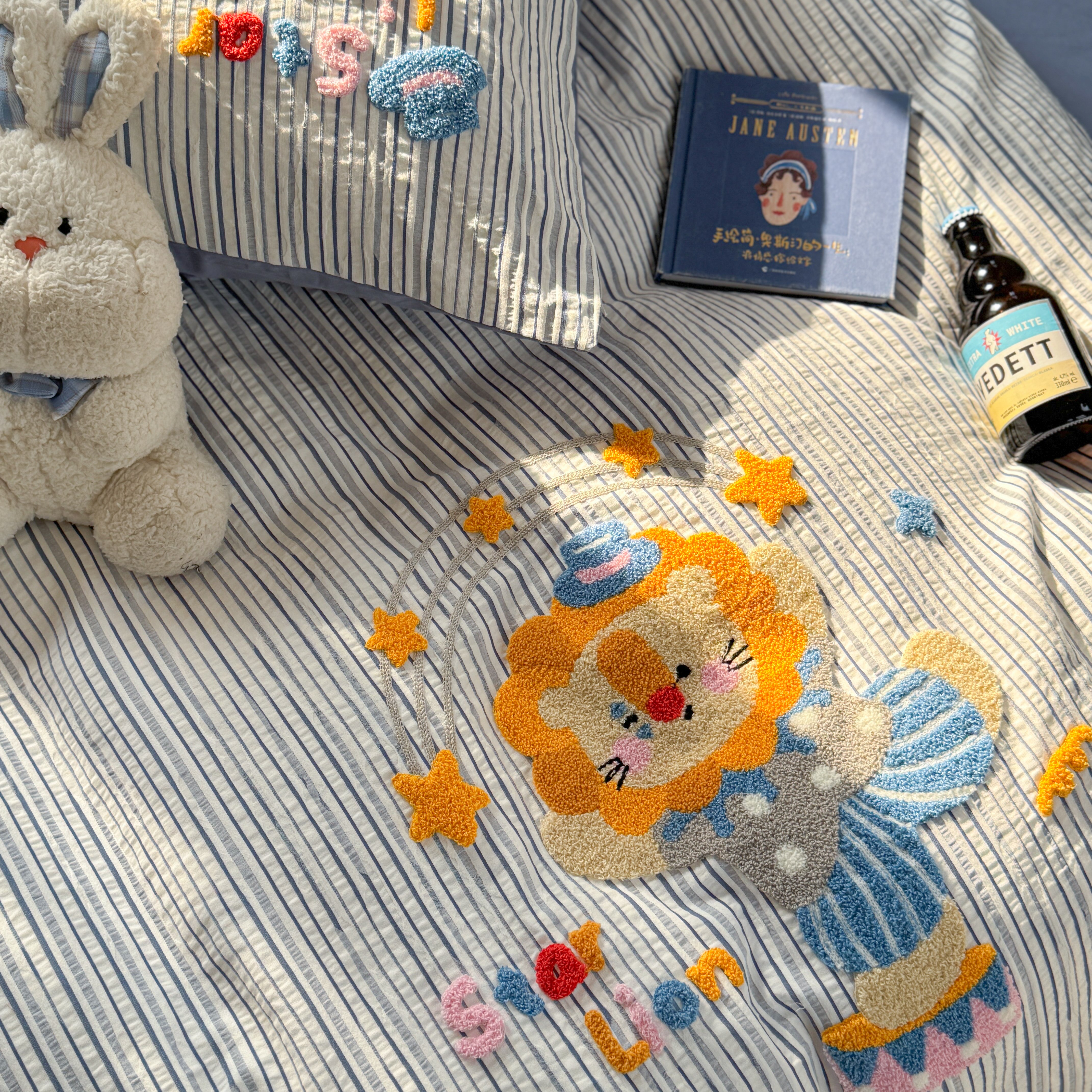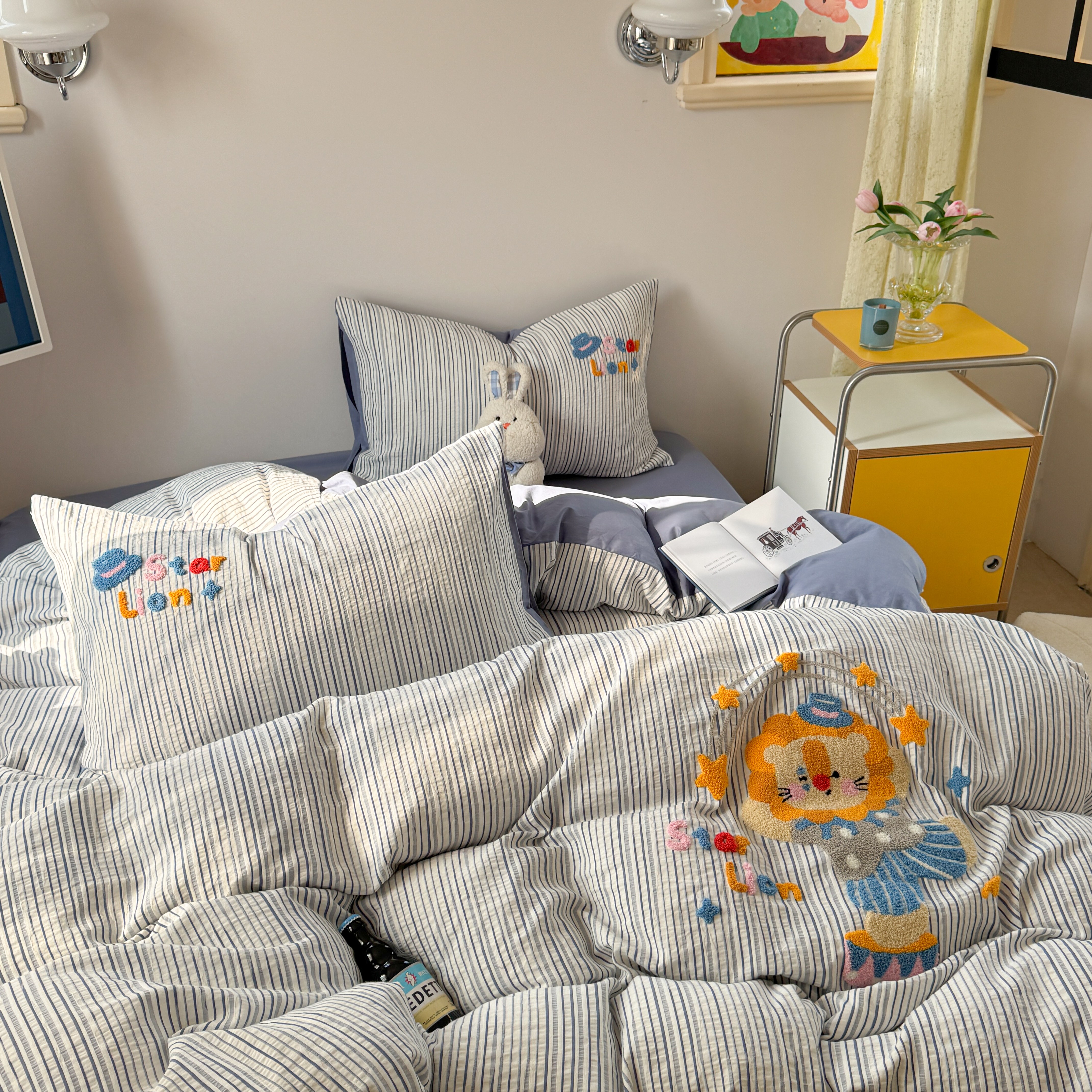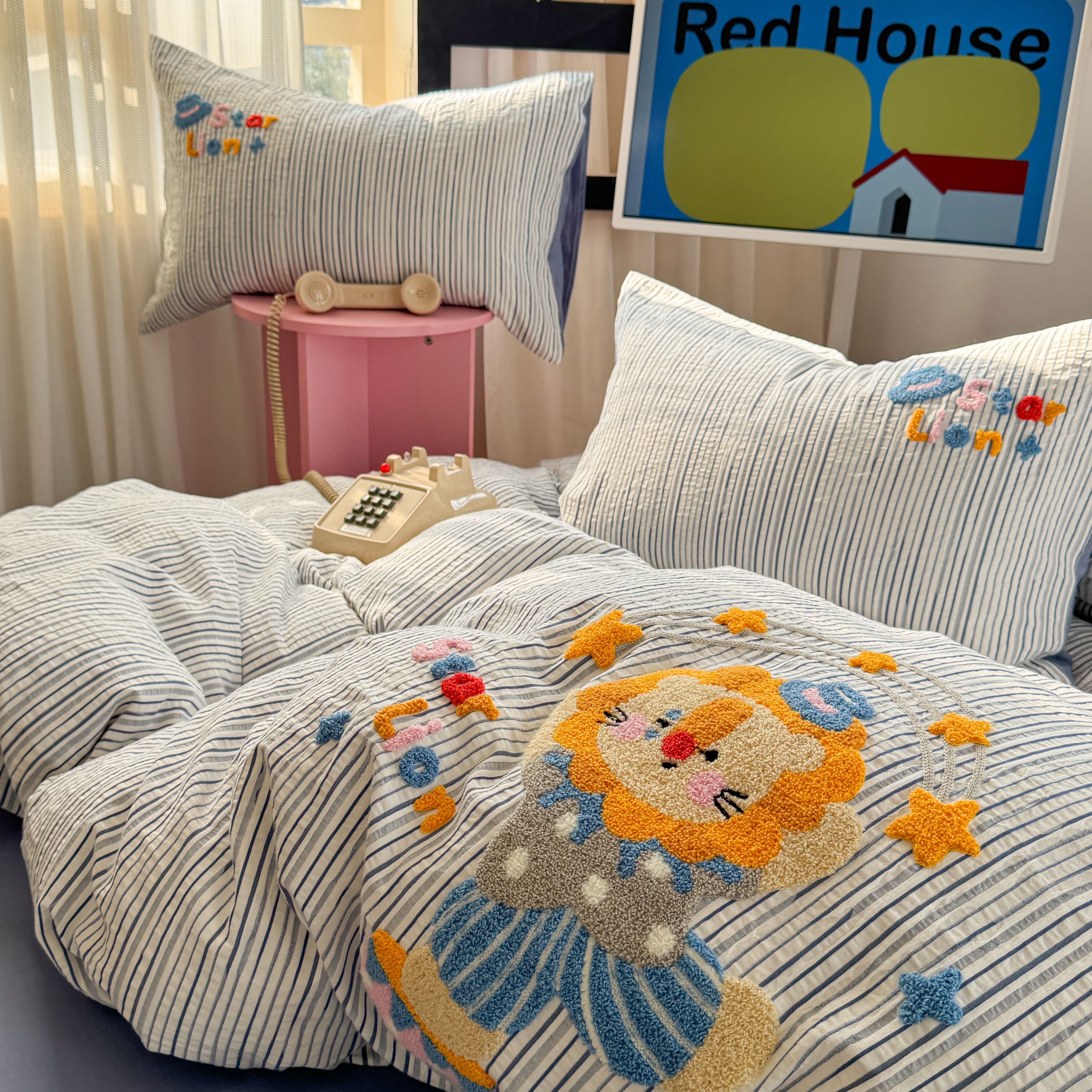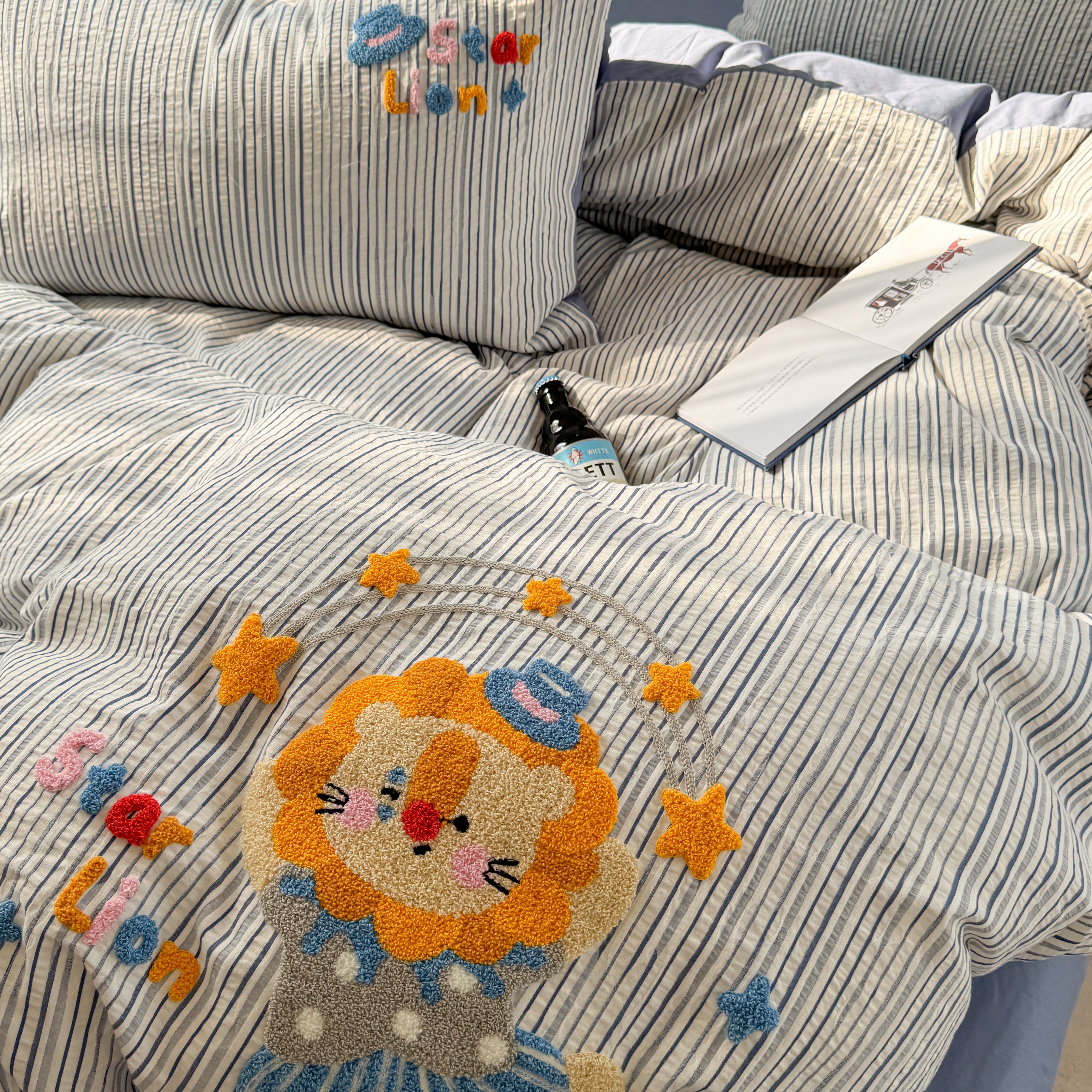 商品名称:柚子 2025春夏新款全棉纯棉提花毛巾绣四件套 狮子王