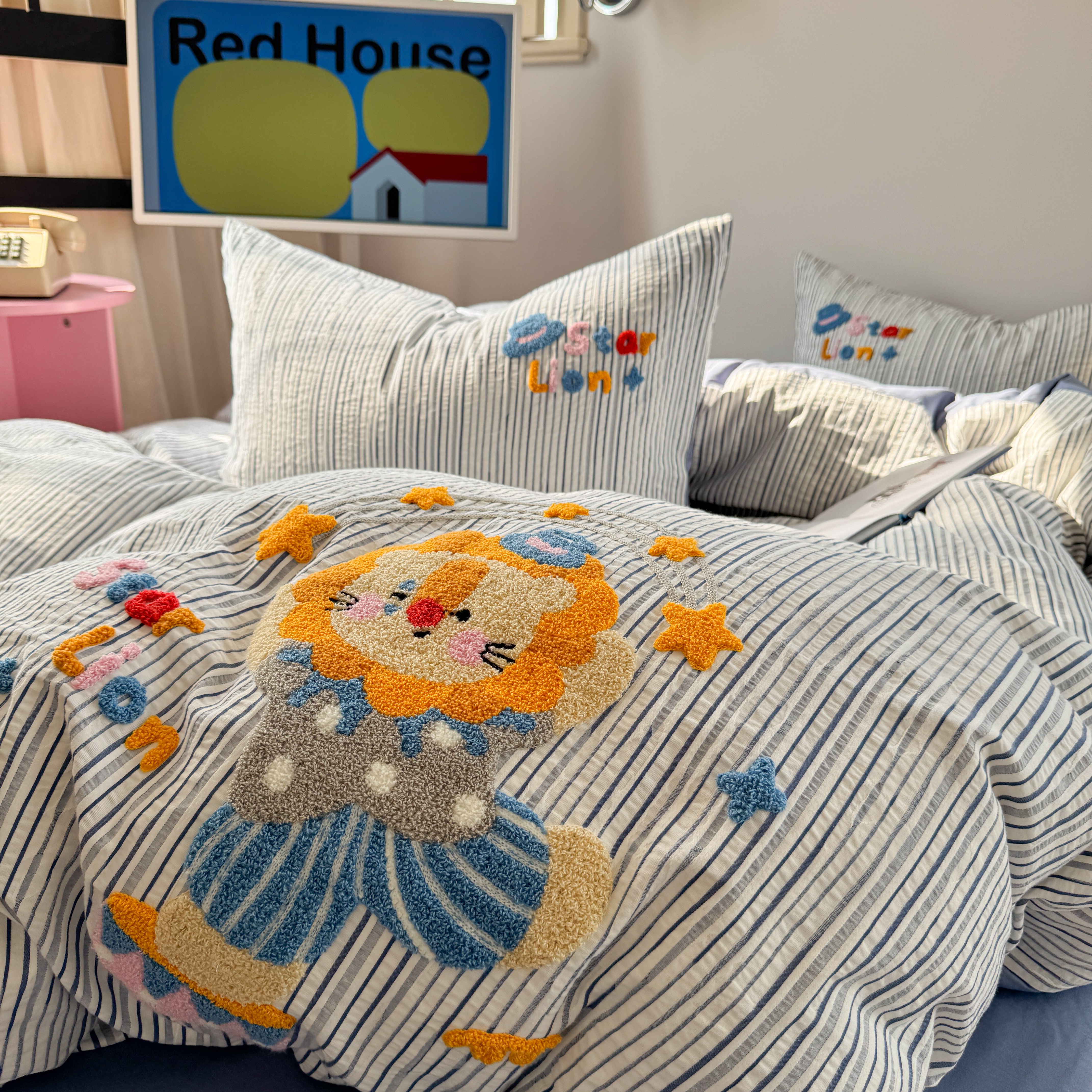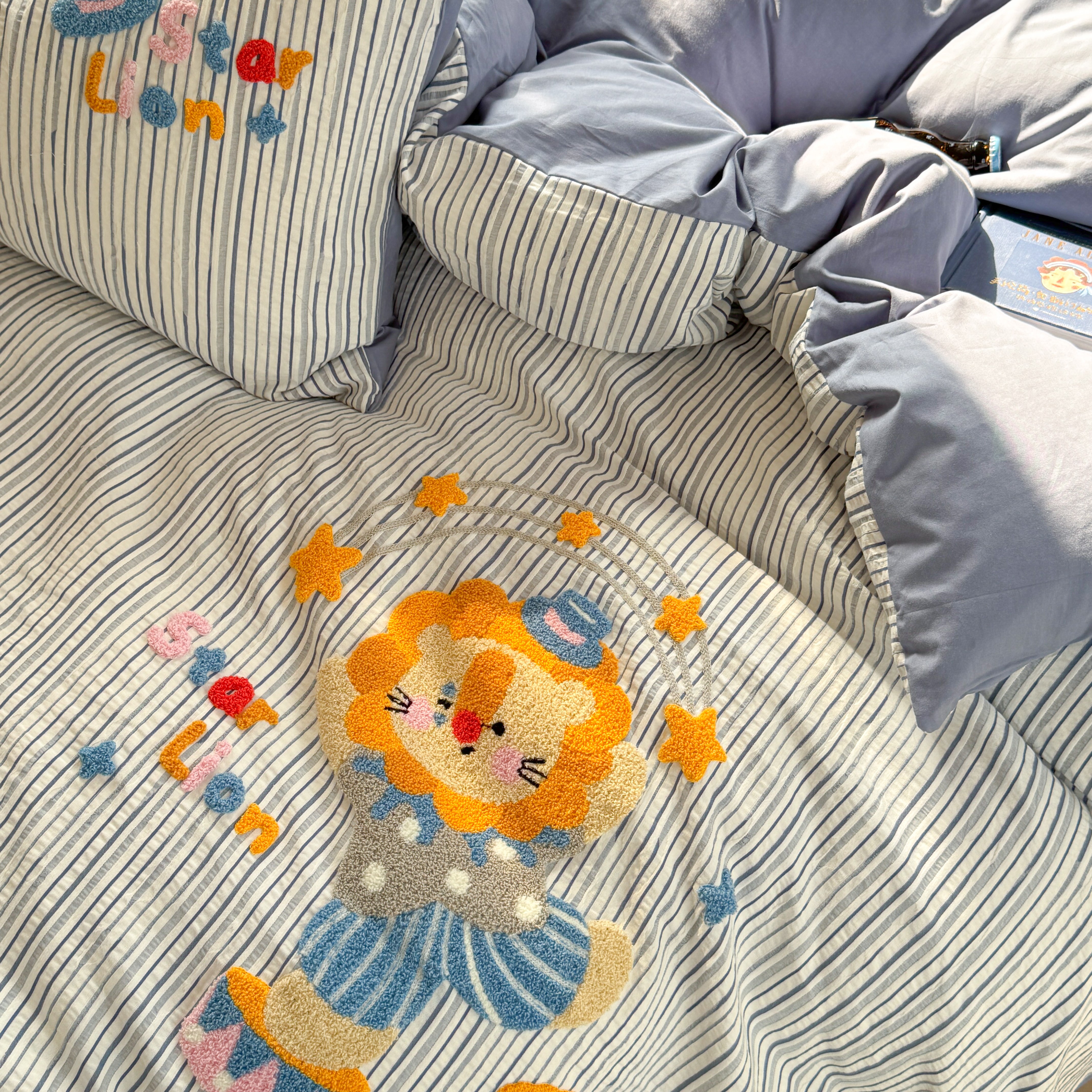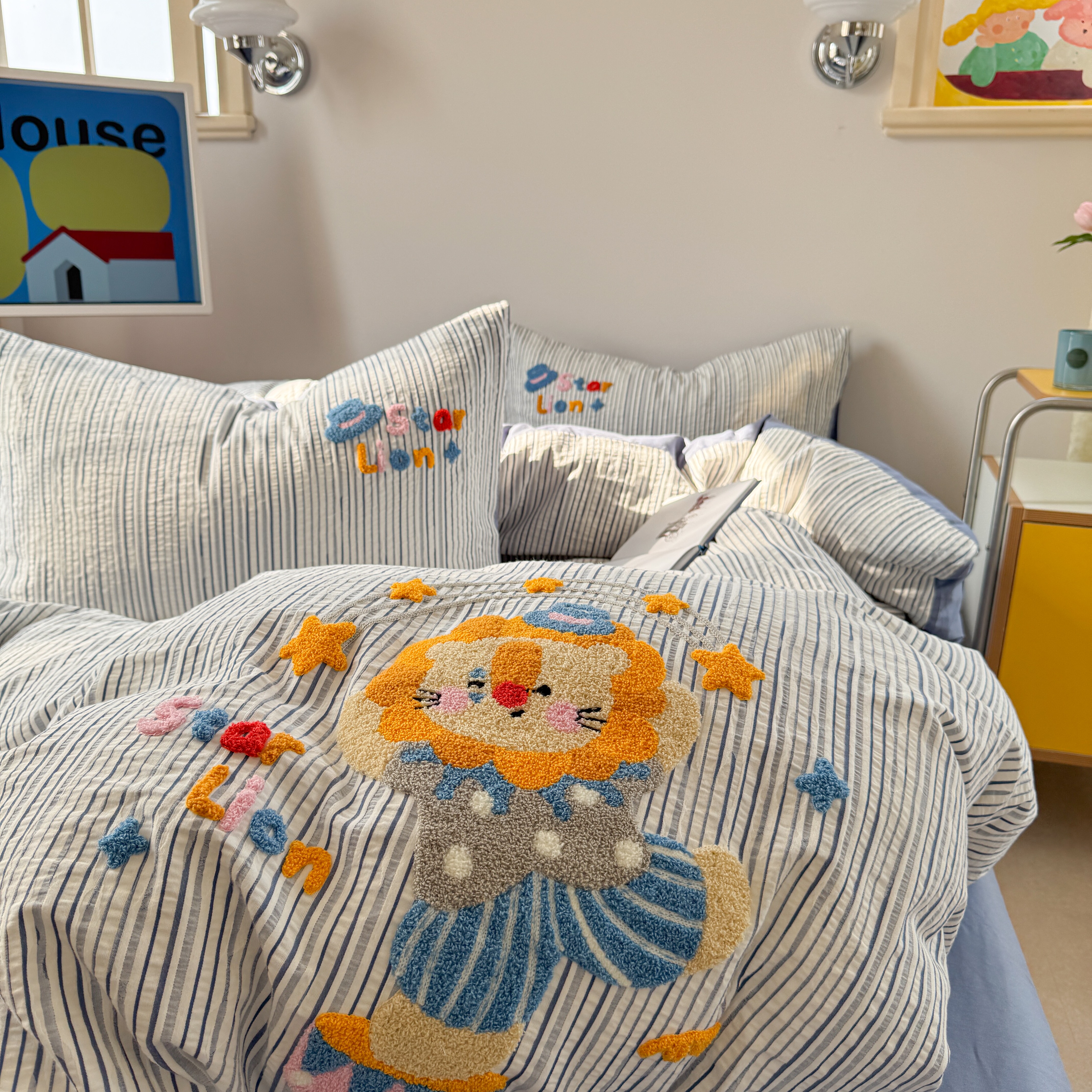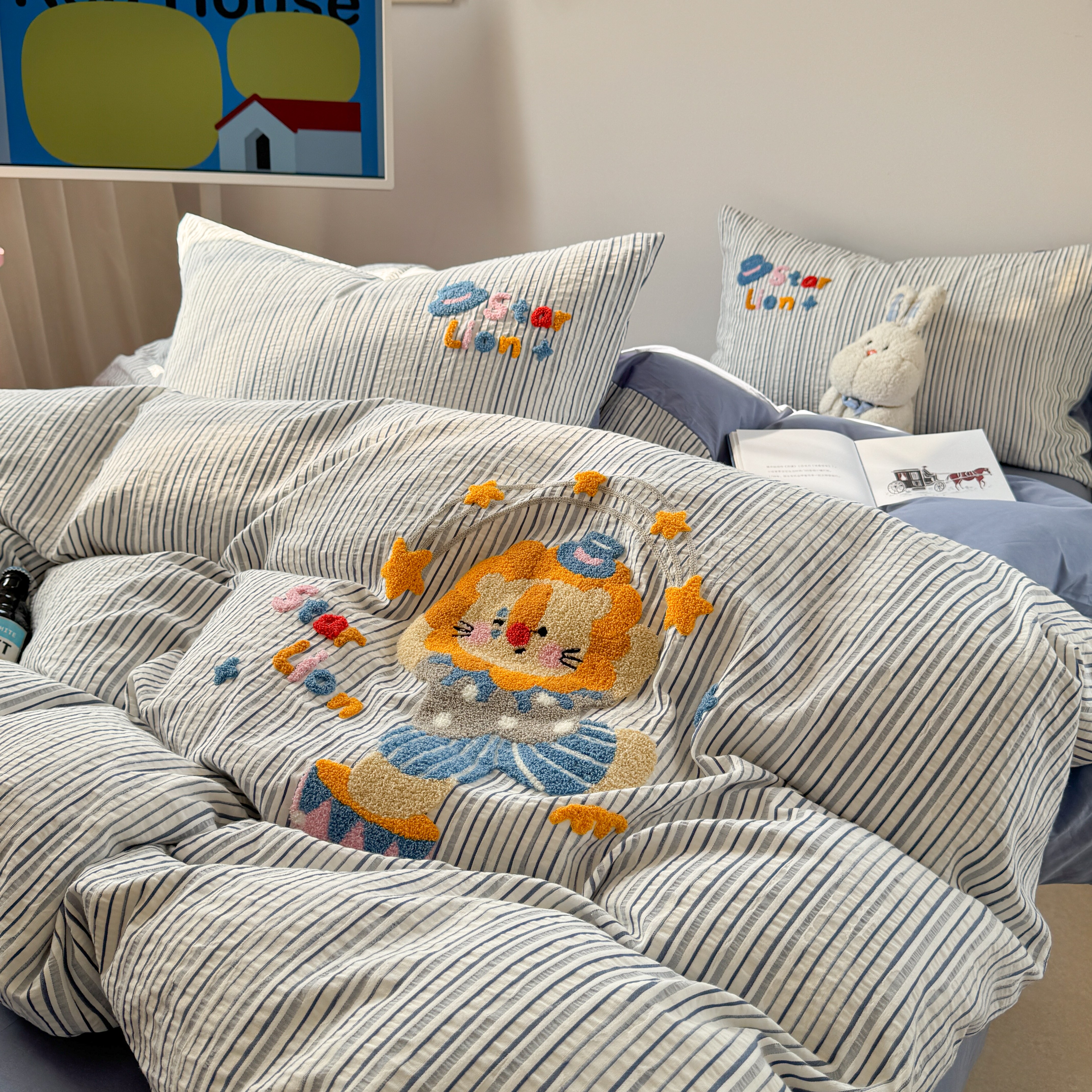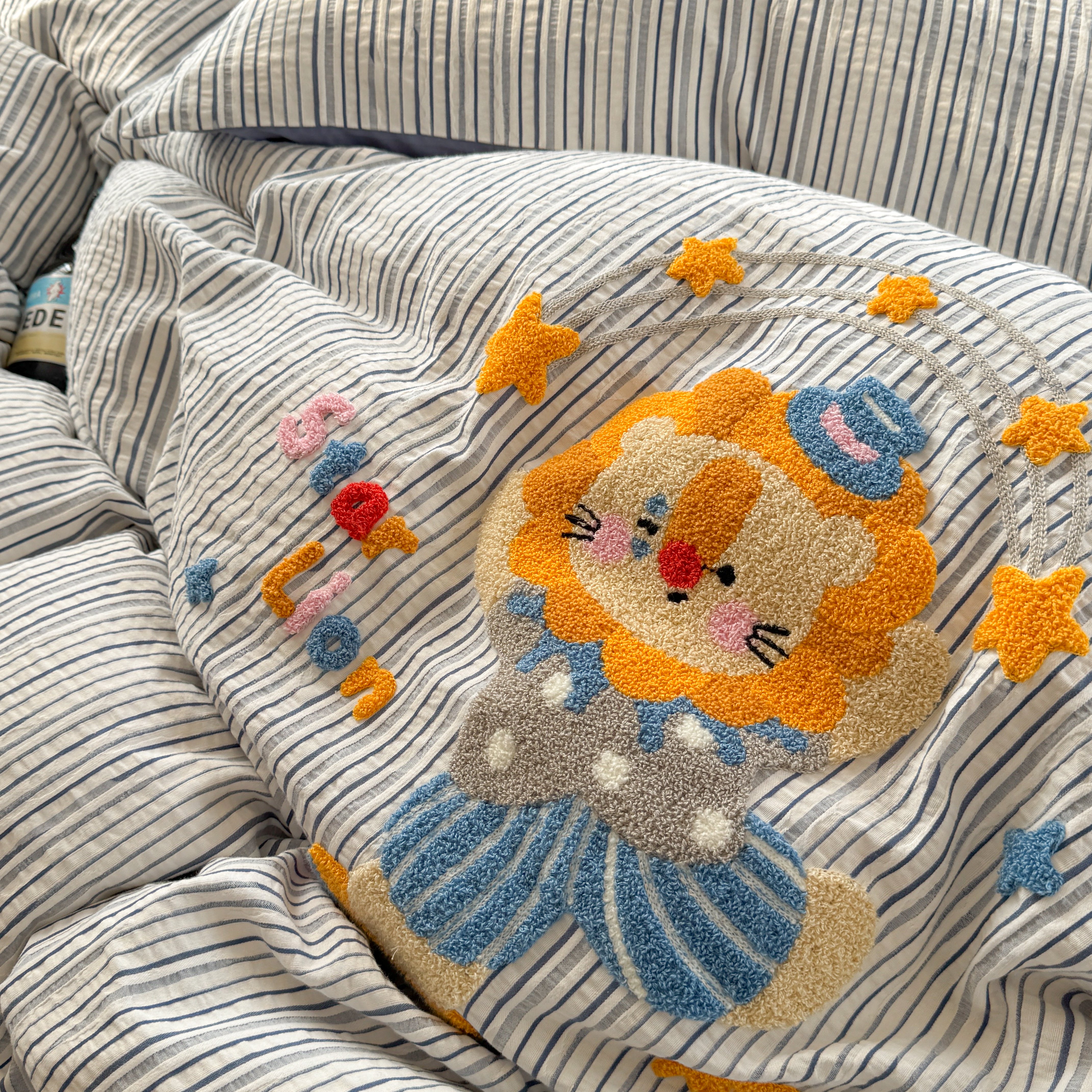 商品名称:柚子 2025春夏新款全棉纯棉提花毛巾绣四件套 狮子王