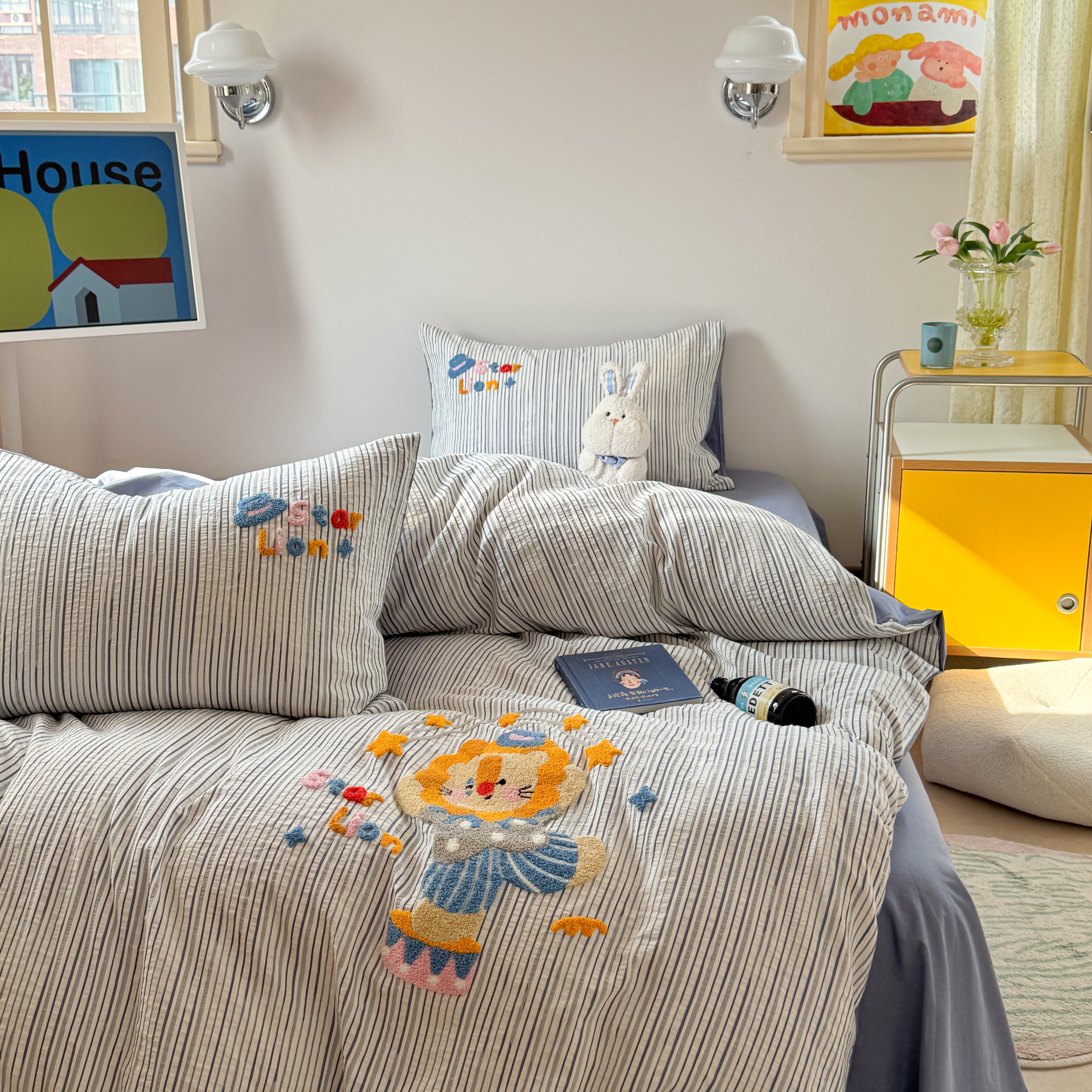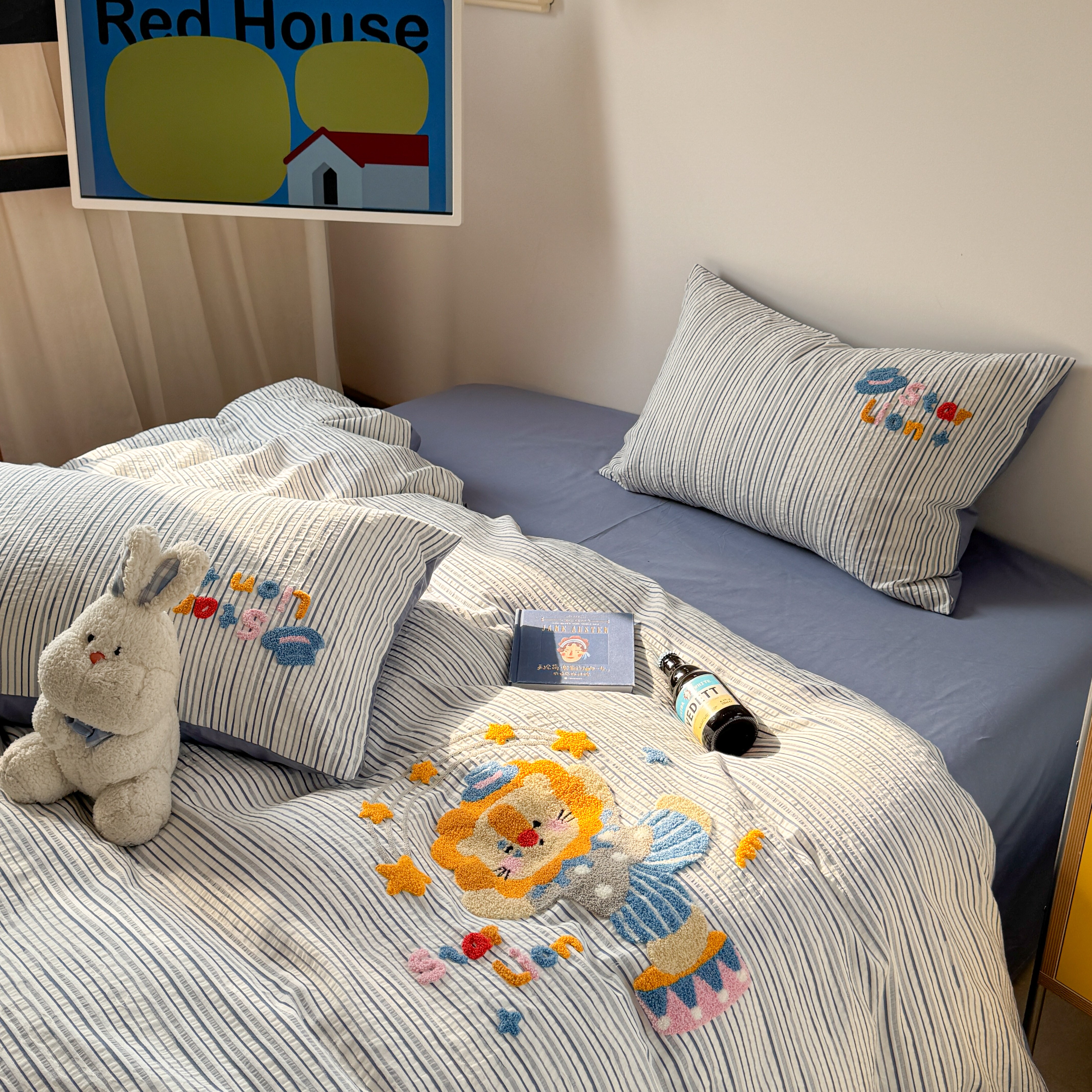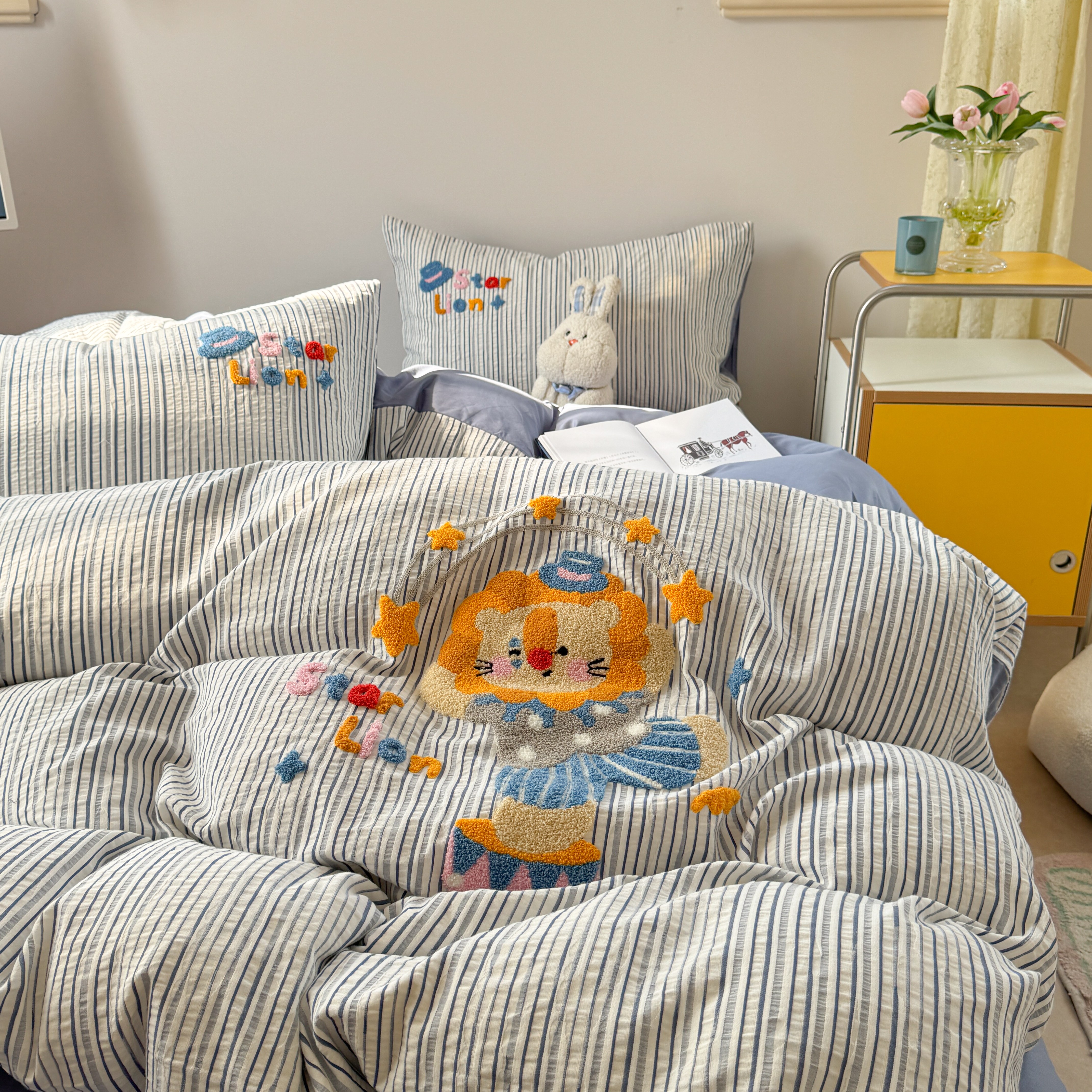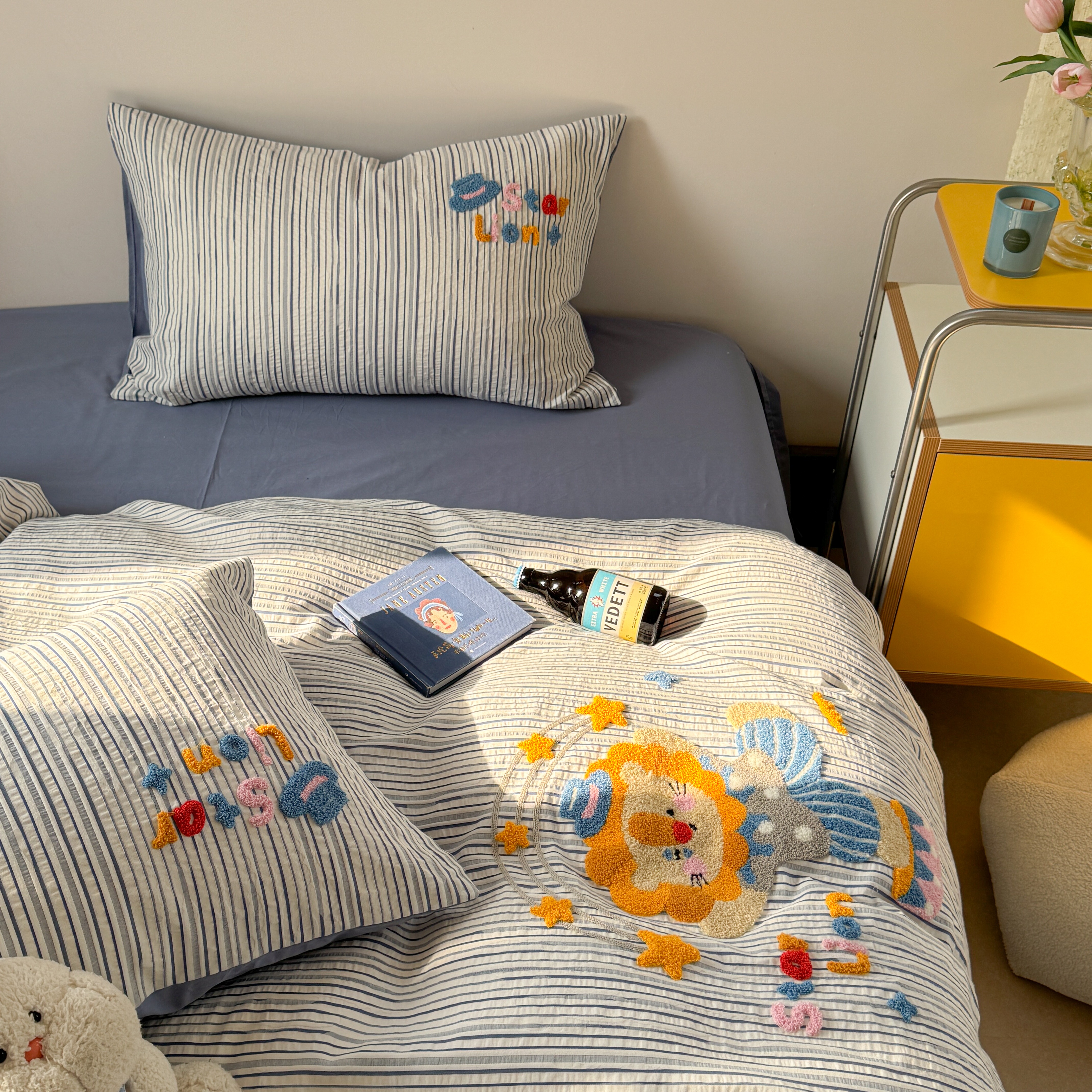 商品名称:柚子 2025春夏新款全棉纯棉提花毛巾绣四件套 狮子王