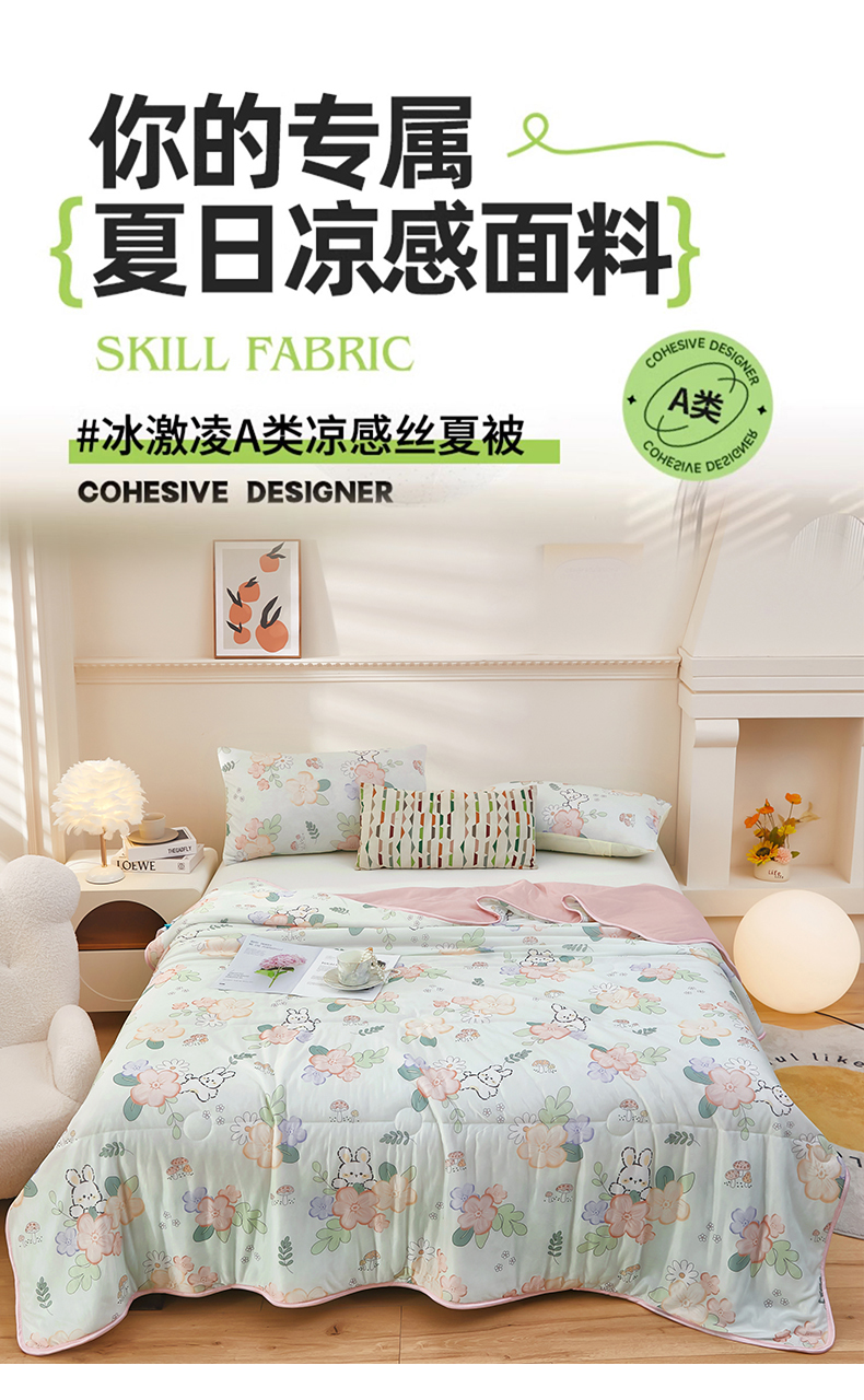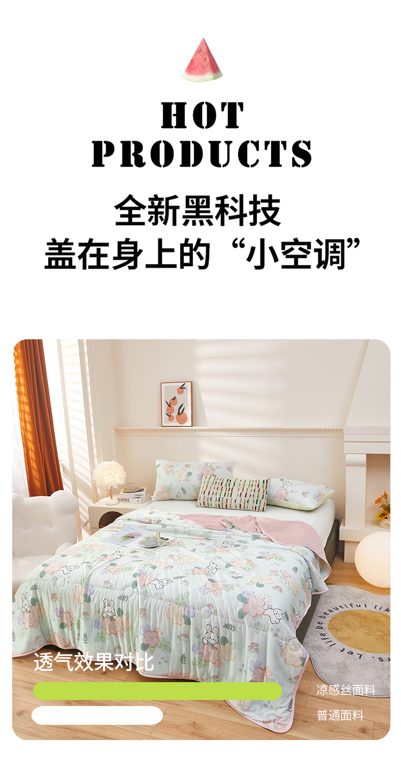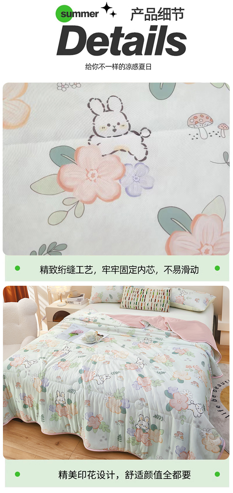 商品名称:柏薇 2025新款冰激凌凉感丝印花夏凉被 开心兔子