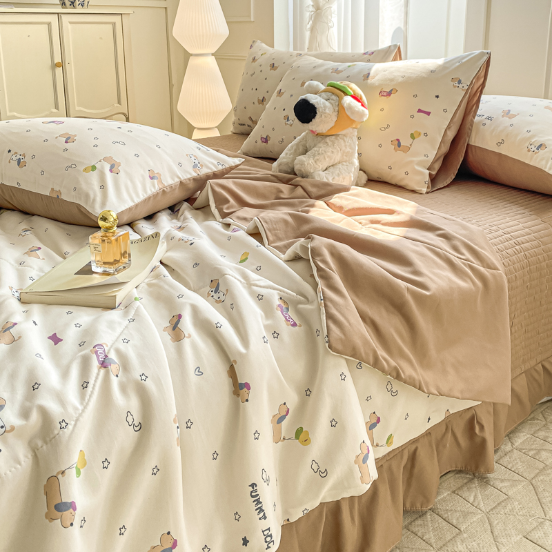 2025新款针织双层纱夏被床盖四件套单夏被单床盖单品 狗狗家族