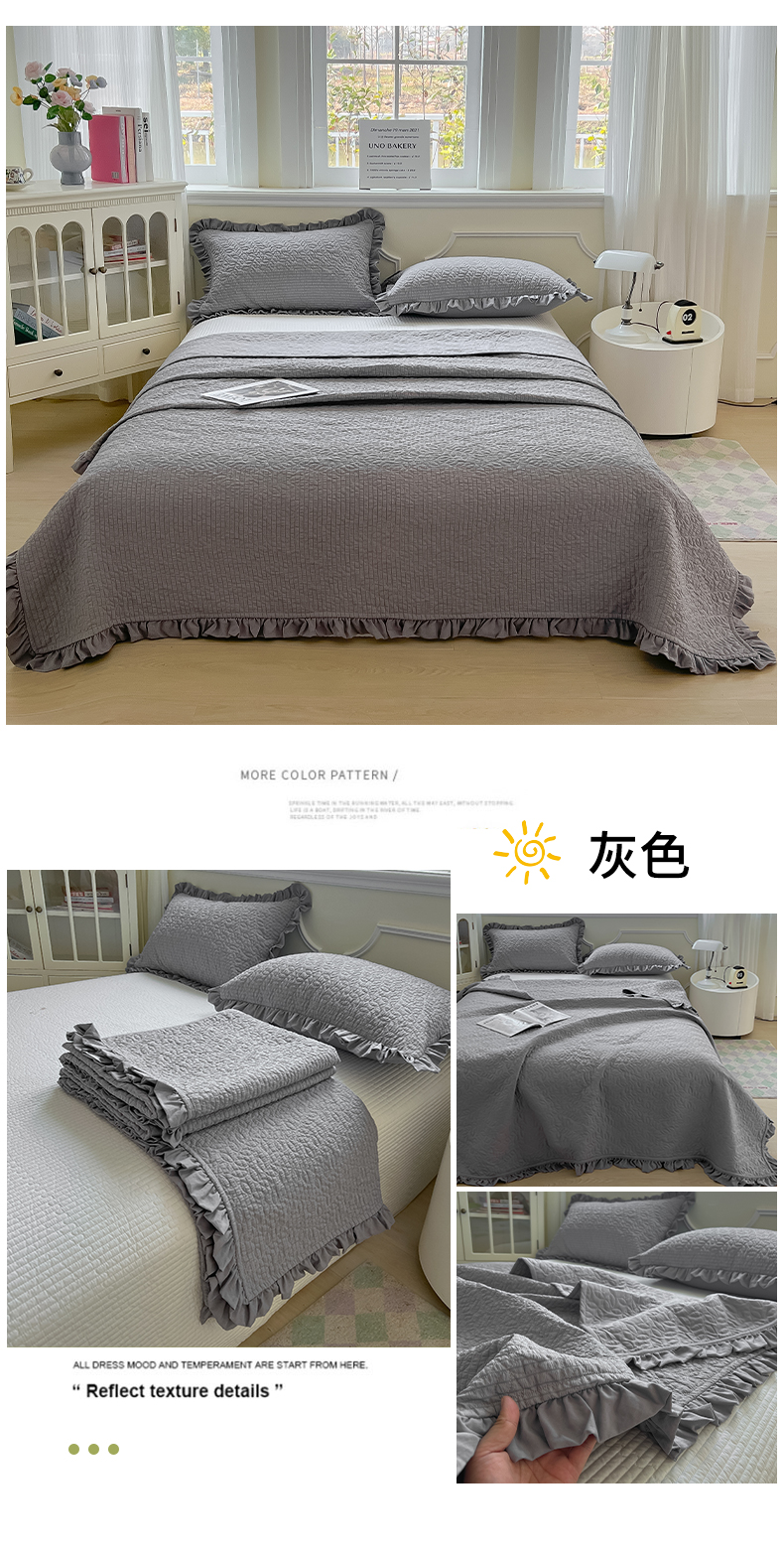 乐卧家居 2026新款韩国INS风简约时尚绗缝荷叶边夏被 灰色,灰色