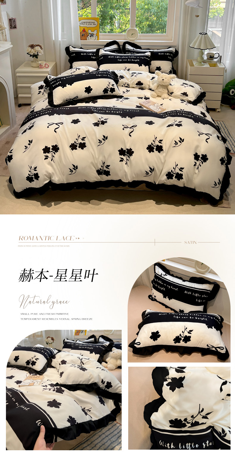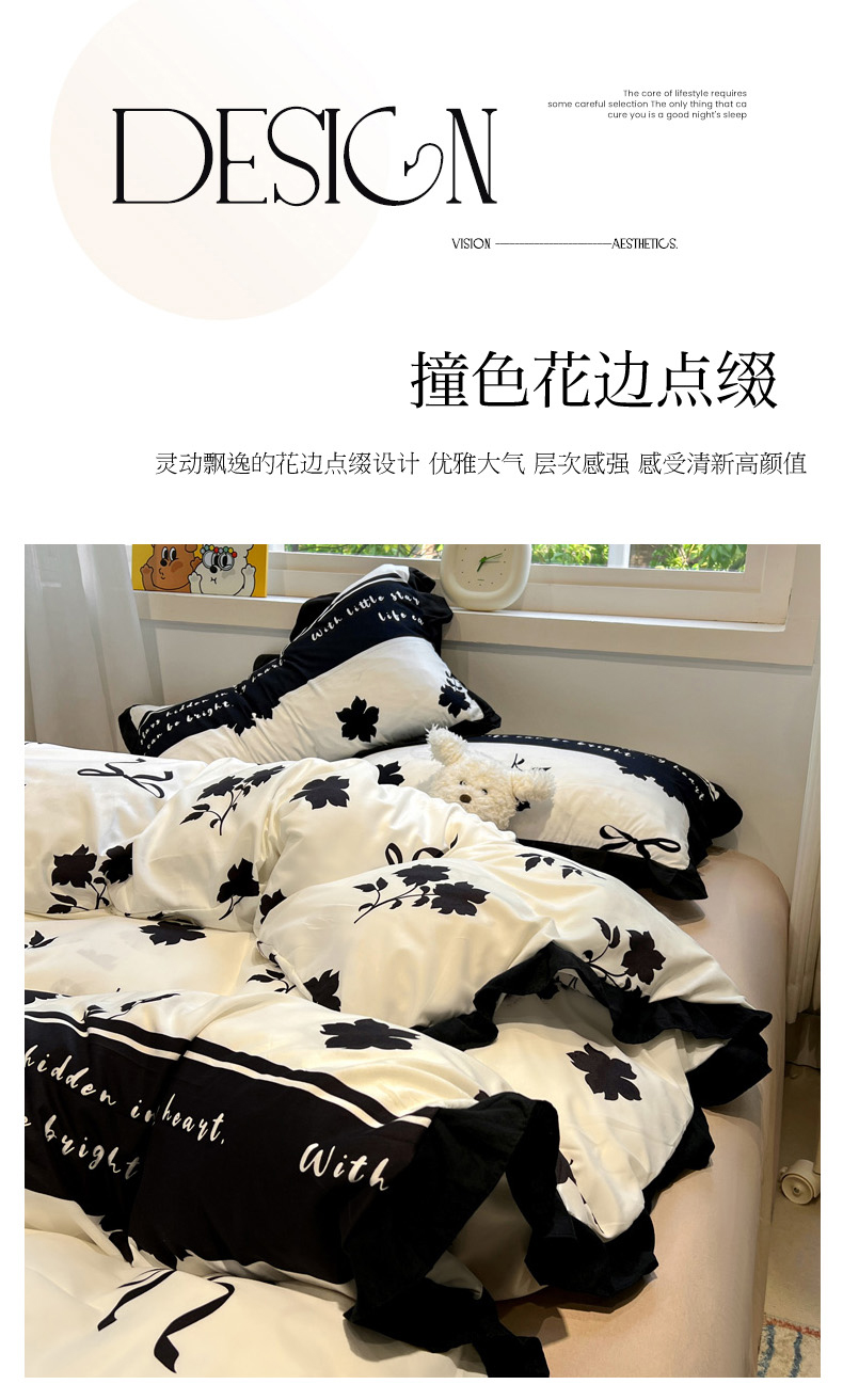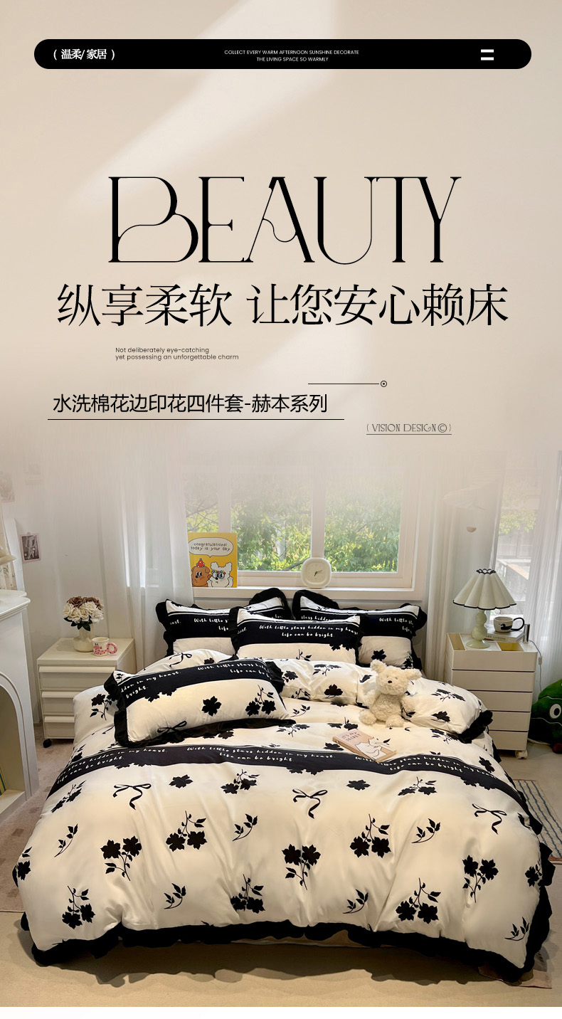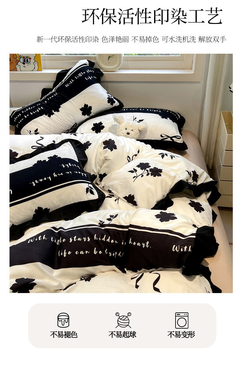 当前位置: 91家纺网 > 商品网购 > 床品套件 > 四件套 > 水洗棉四件套 > 花伞家居 2025新款赫本黑色大花边水洗棉印花四件套(提供买家秀) 赫本-星星叶