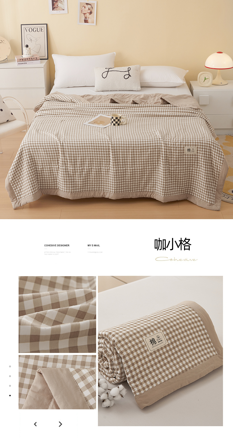 简冠家纺 2025新款水洗棉新疆棉花夏被 咖小格
