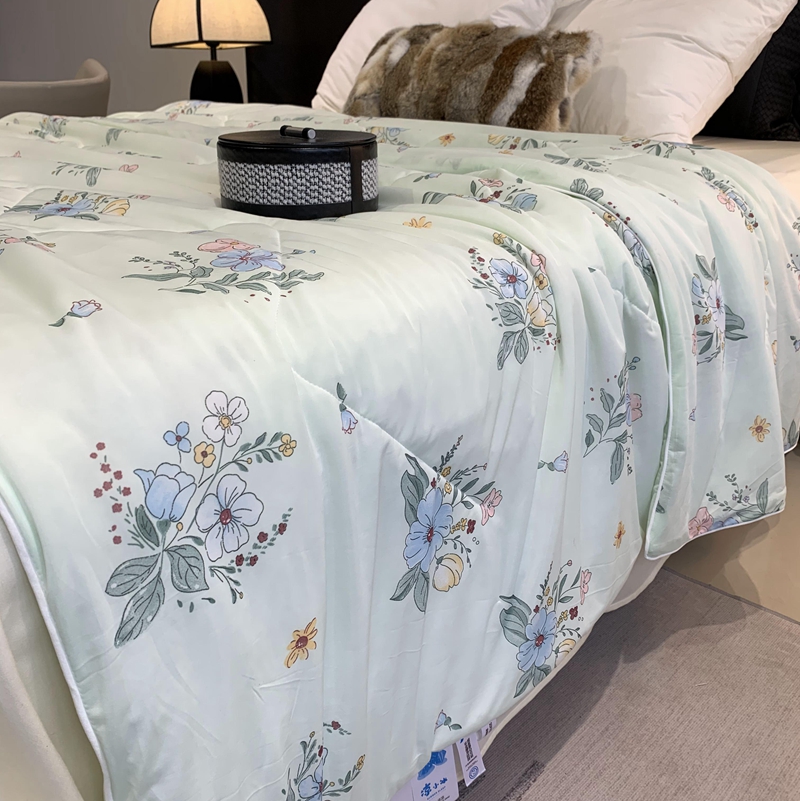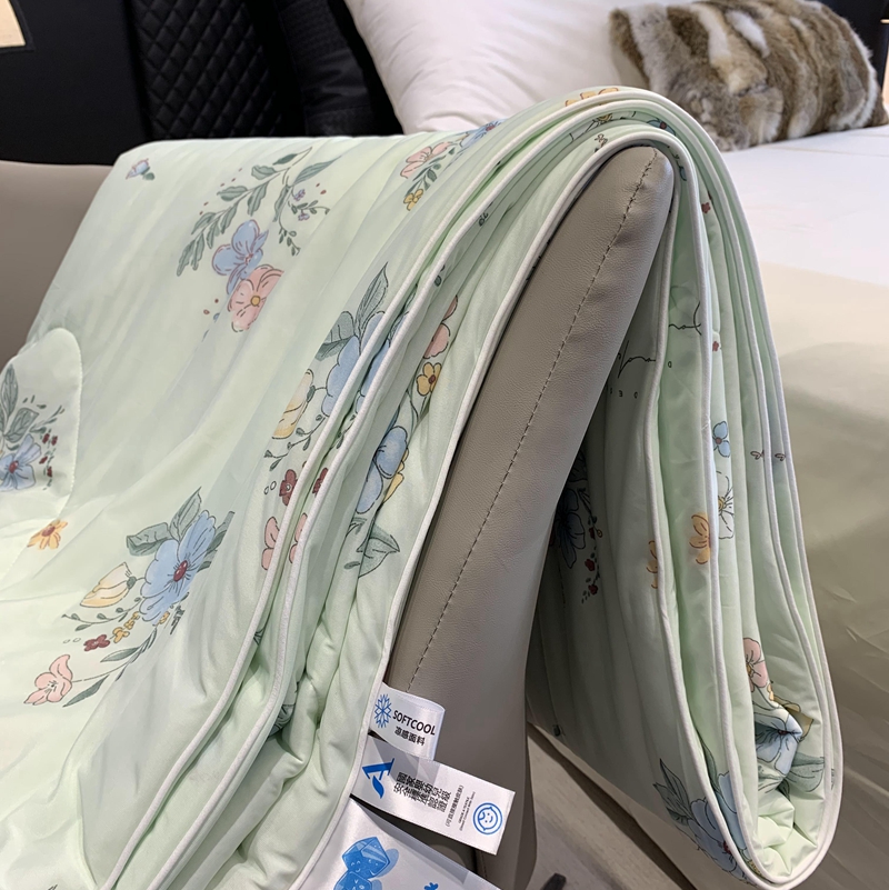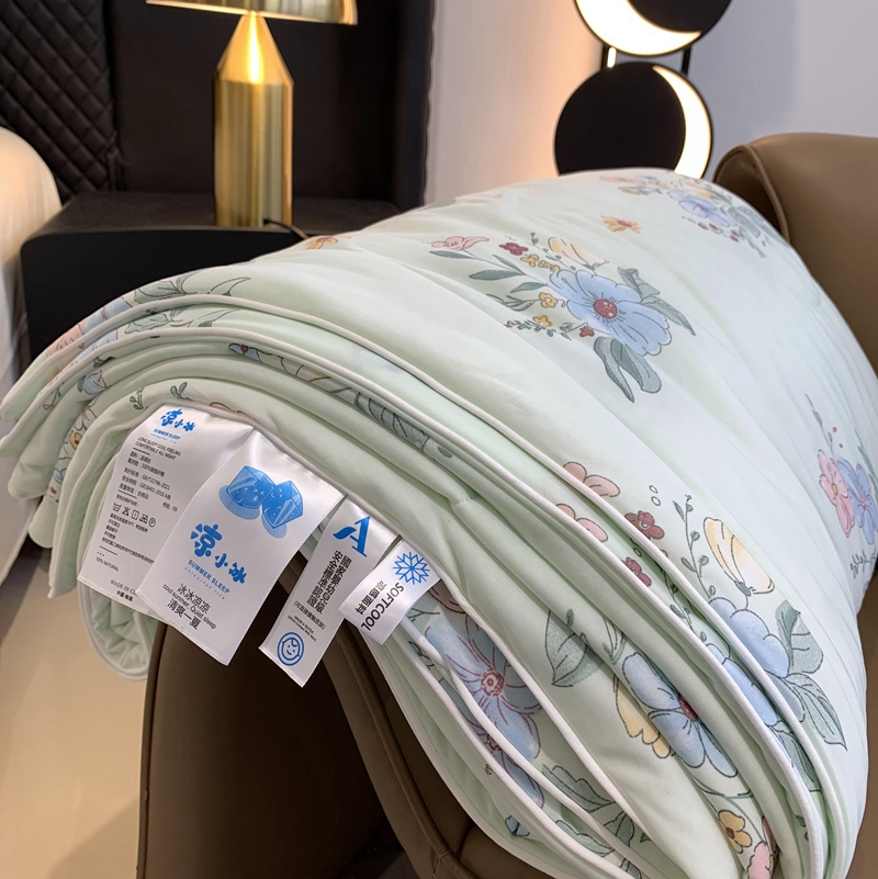 商品名称:奈萝家纺 2025新款A类凉感丝小凉皮夏被可机洗夏被新品空调被 夏花绿