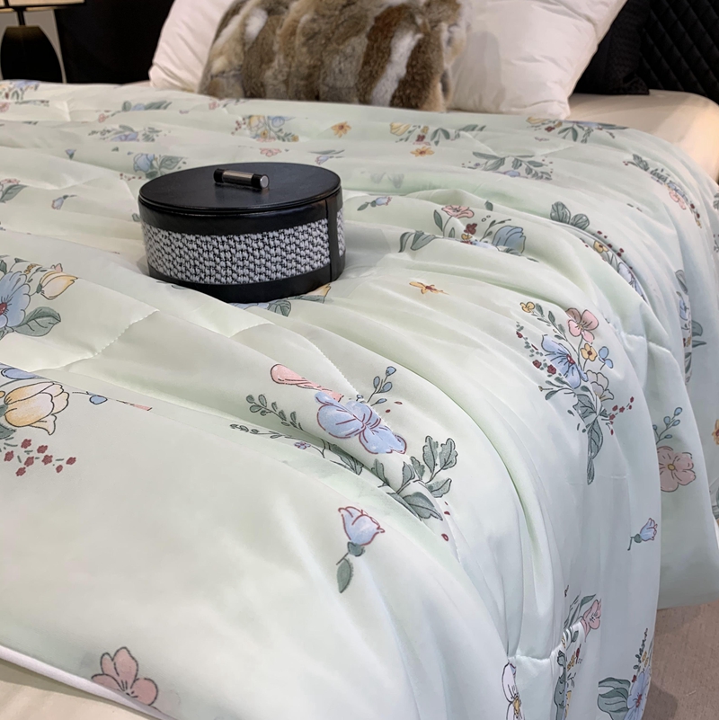 奈萝家纺 2025新款A类凉感丝小凉皮夏被可机洗夏被新品空调被 夏花绿