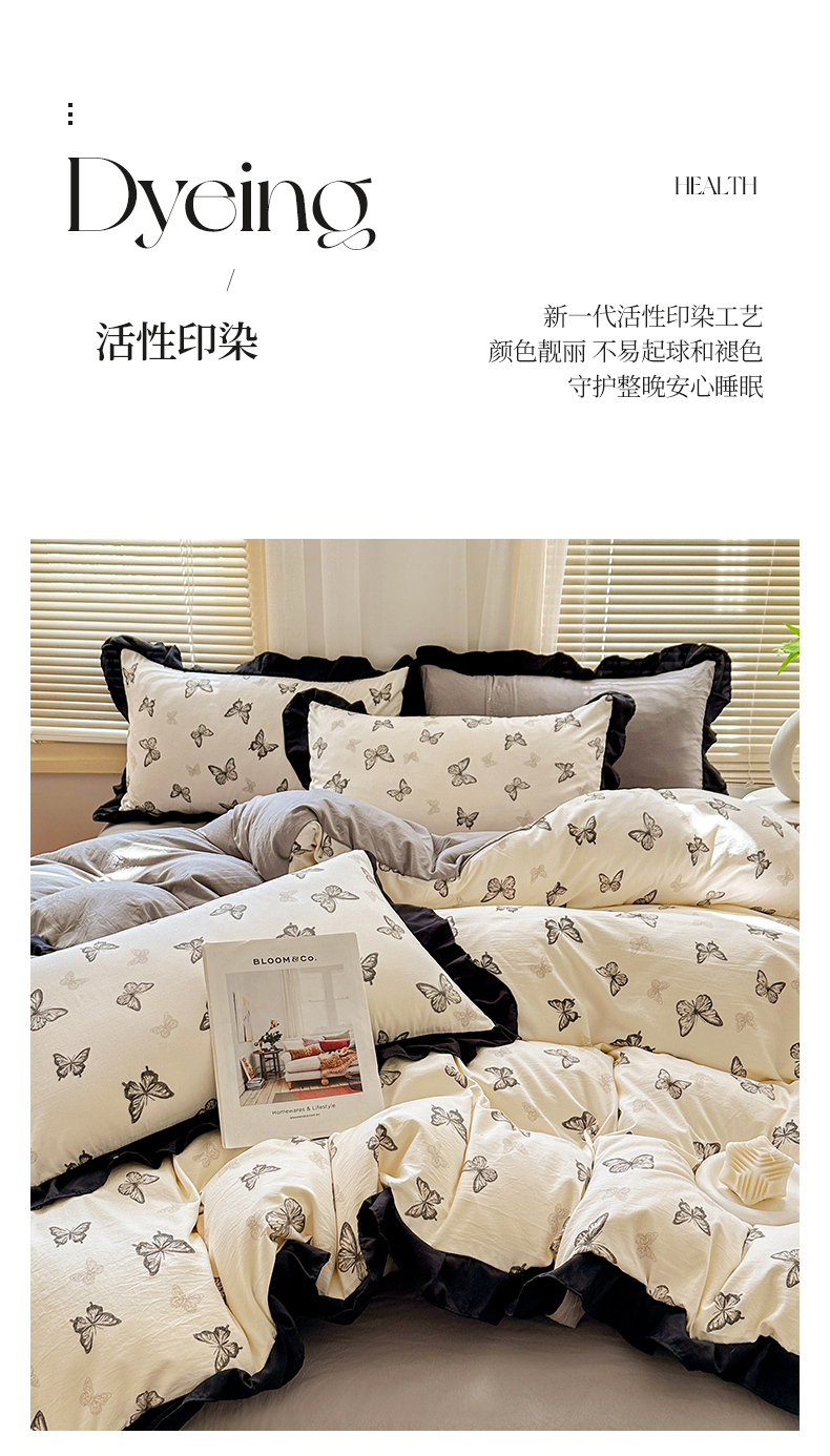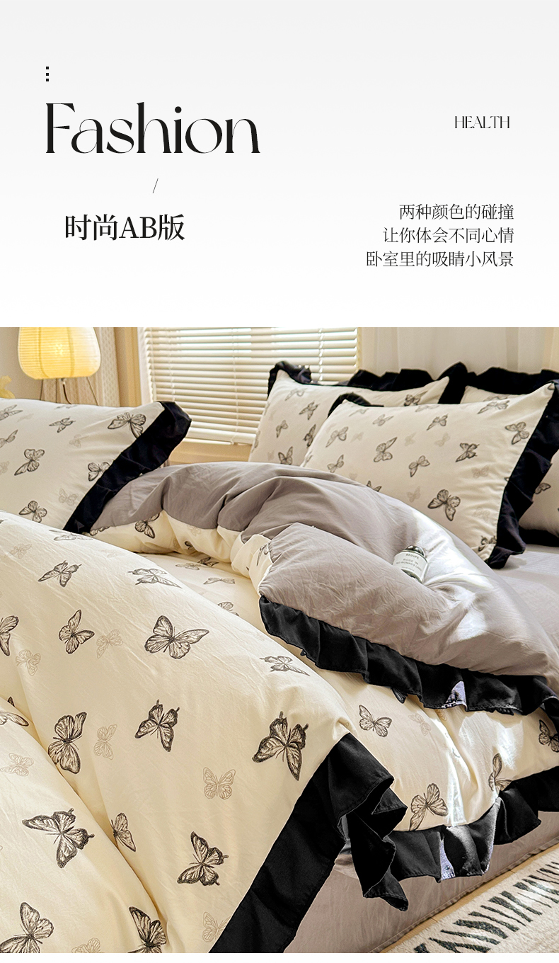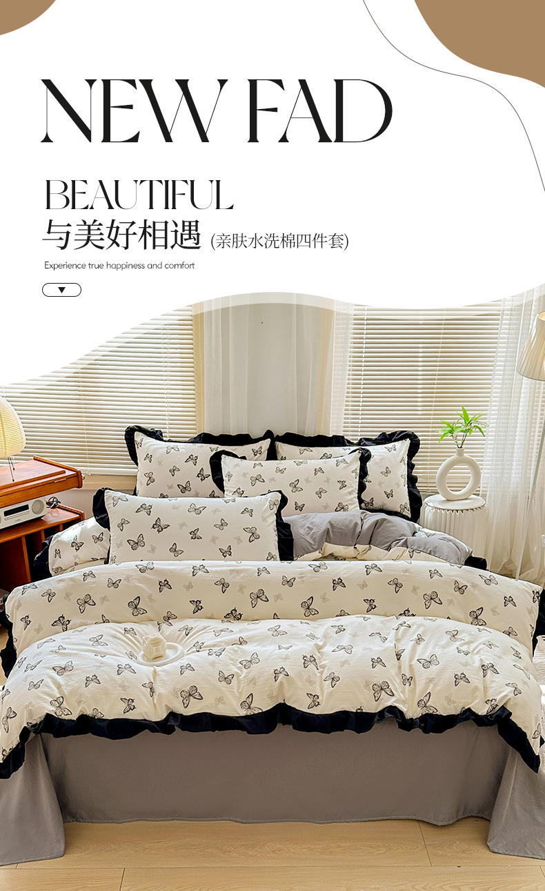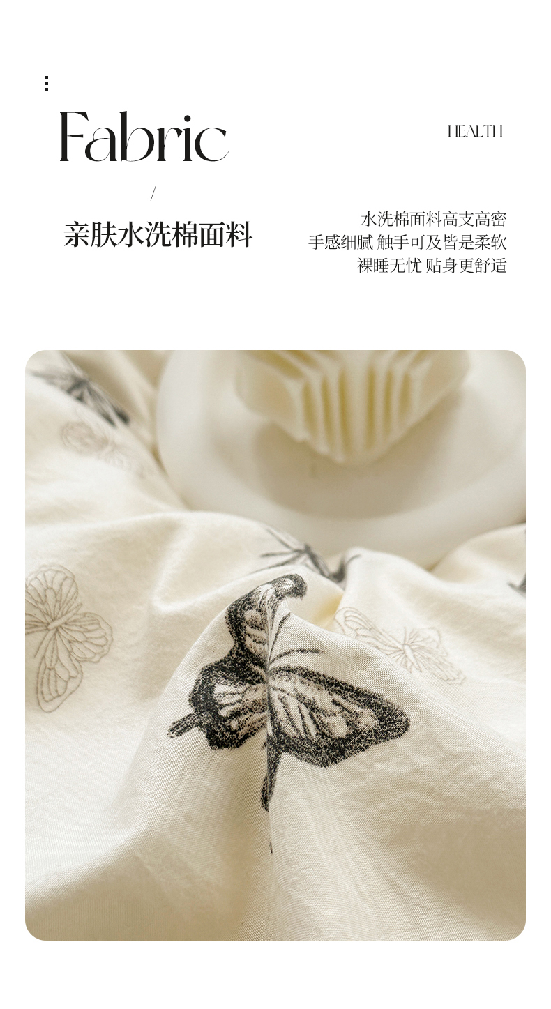 商品名称:佳一家纺 2025新款亲肤水洗棉四件套系列 蝶舞