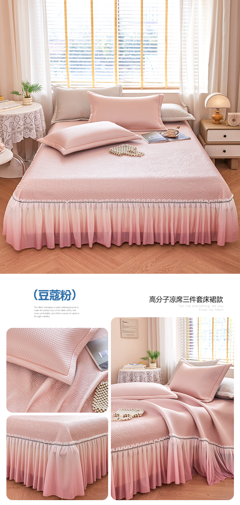 商品名称:桂雅居 2025春夏新款高分子凉席三件套床裙款 豆蔻粉