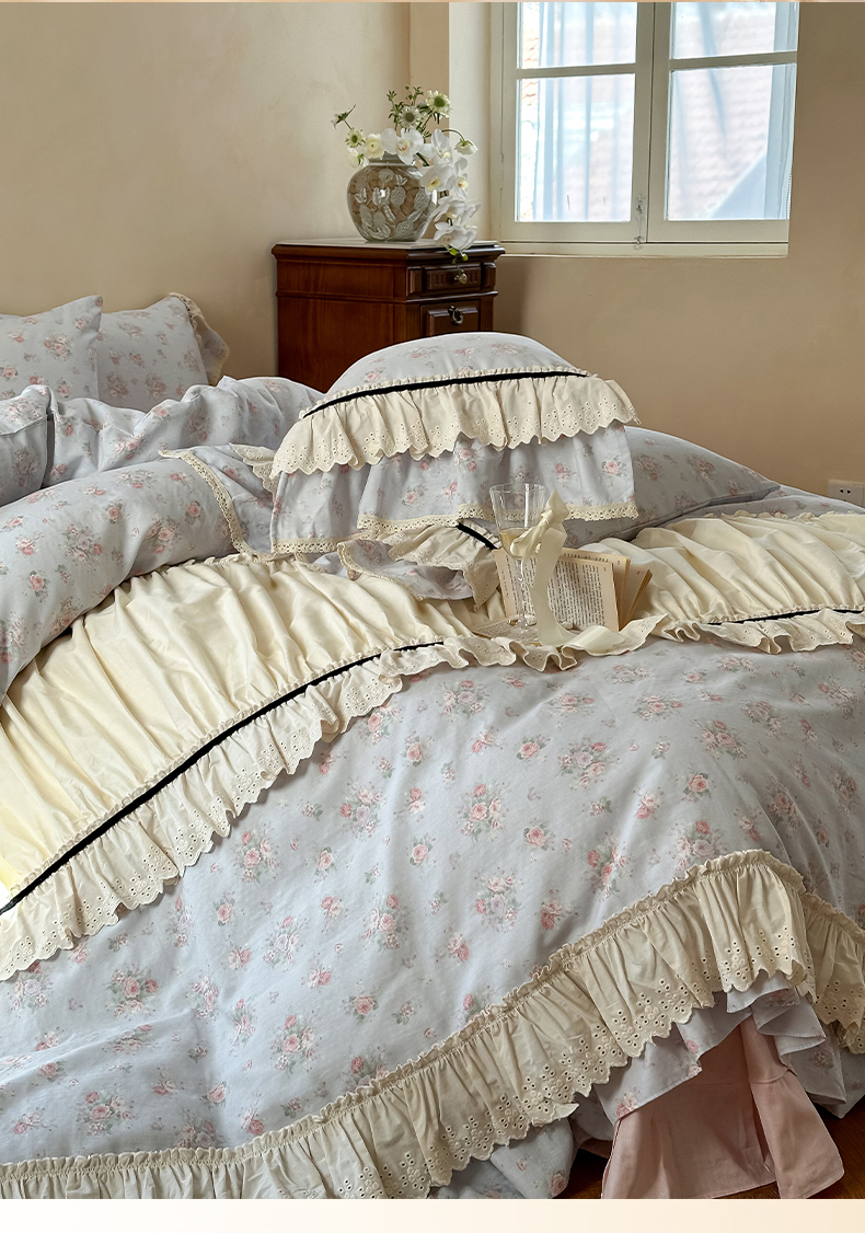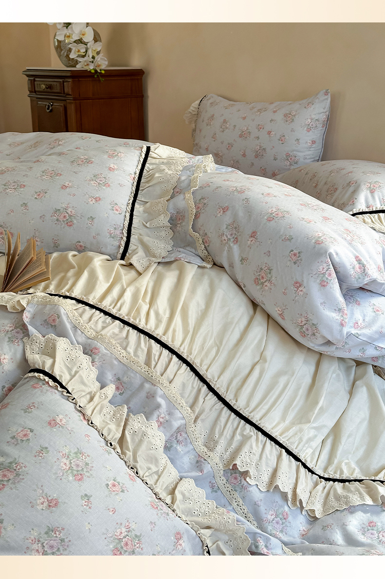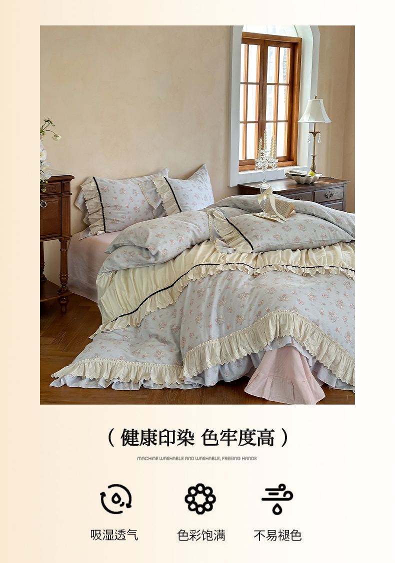 (总)婳庭家居 2024新款法式全棉印花四件套,花卉-淡粉,花卉-浅蓝