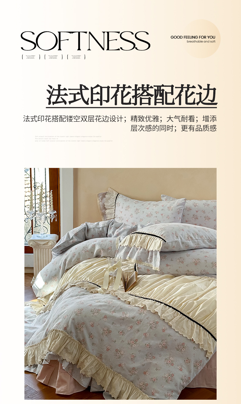 (总)婳庭家居 2024新款法式全棉四件套,安夏,春意,浅薇,幽香