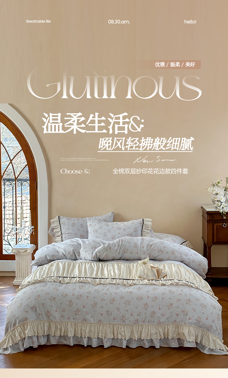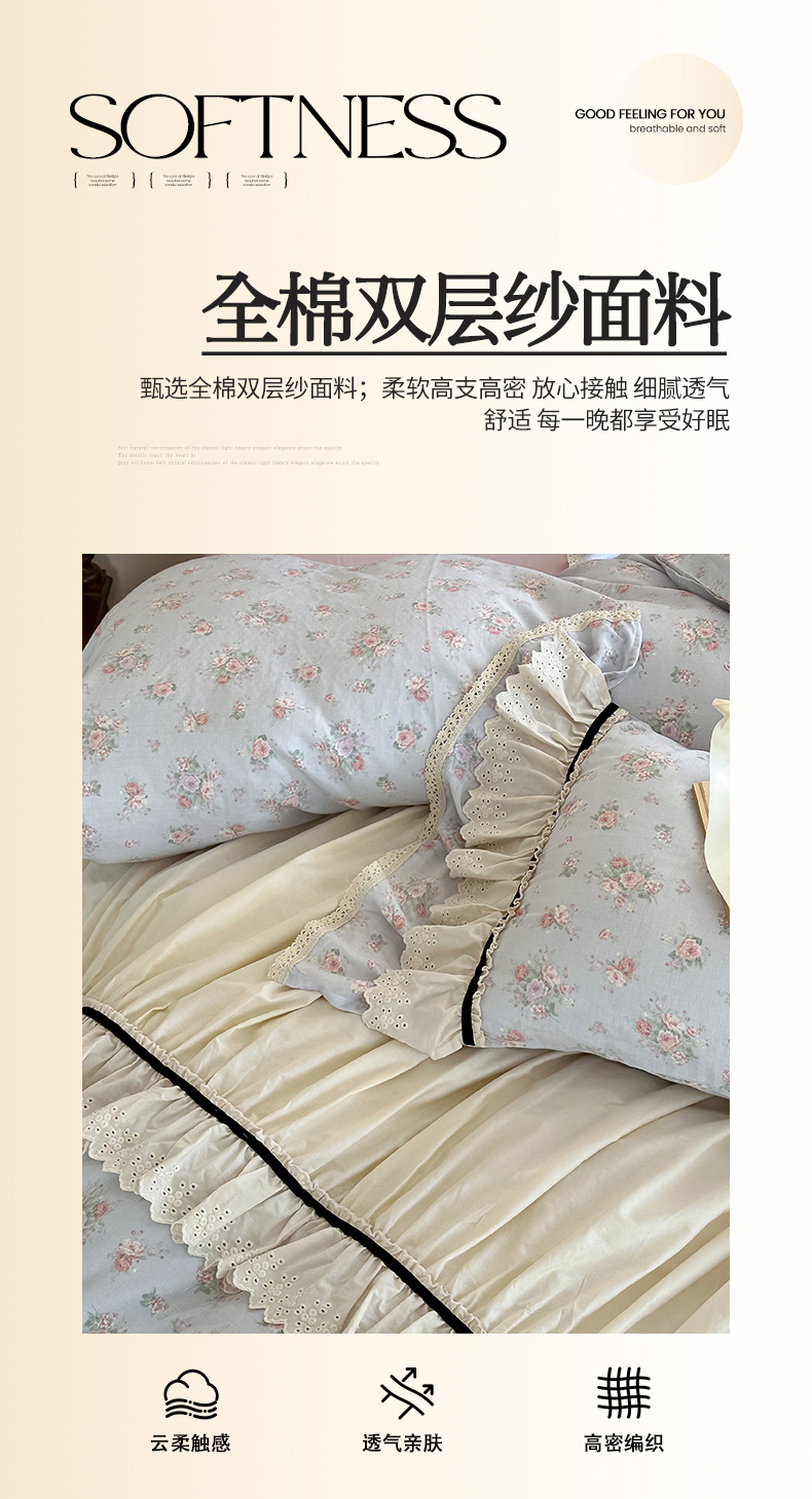 (总)婳庭家居 2025新款双层纱花边款四件套,瑾年,森恋