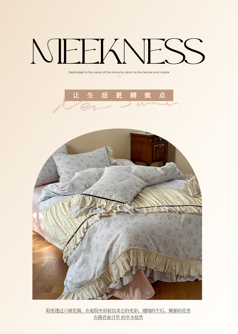 (总)婳庭家居 2025新款60s全棉纯棉MIU系少女法式蕾丝四件套,miu系少女