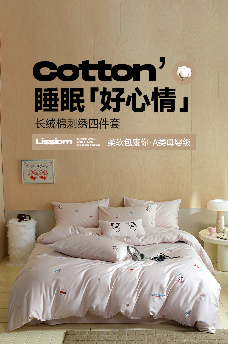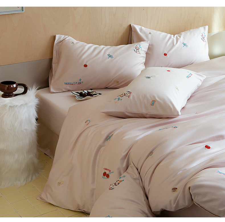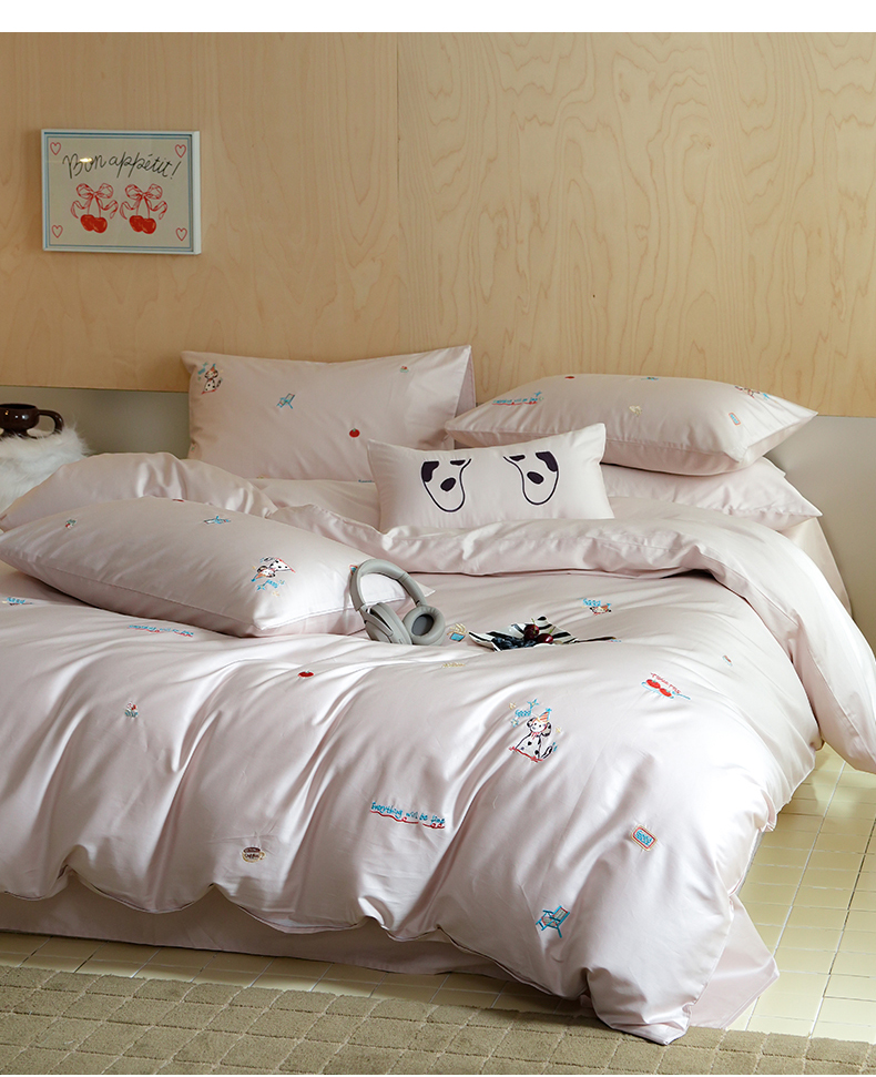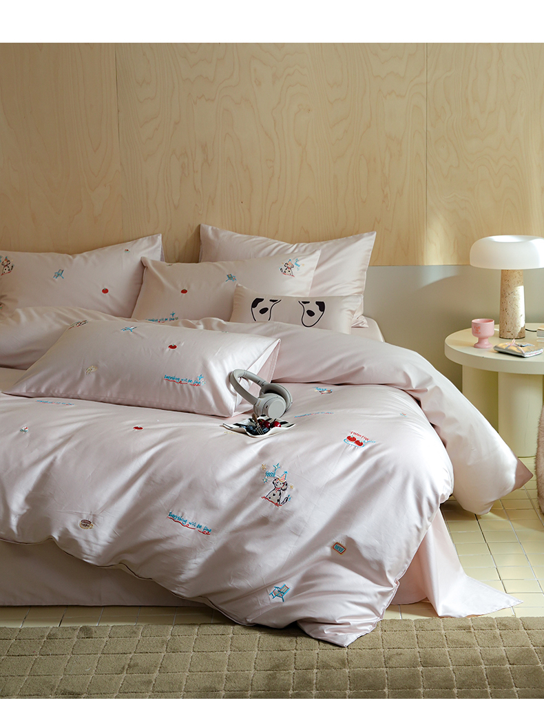 当前位置: 91家纺网 > 商品网购 > 床品套件 > 四件套 > 全棉普通四件套 > 简纯主义 2025新款A类趣味系列全棉长绒棉插画绣花四件套-露露米娅 露露米娅-粉
