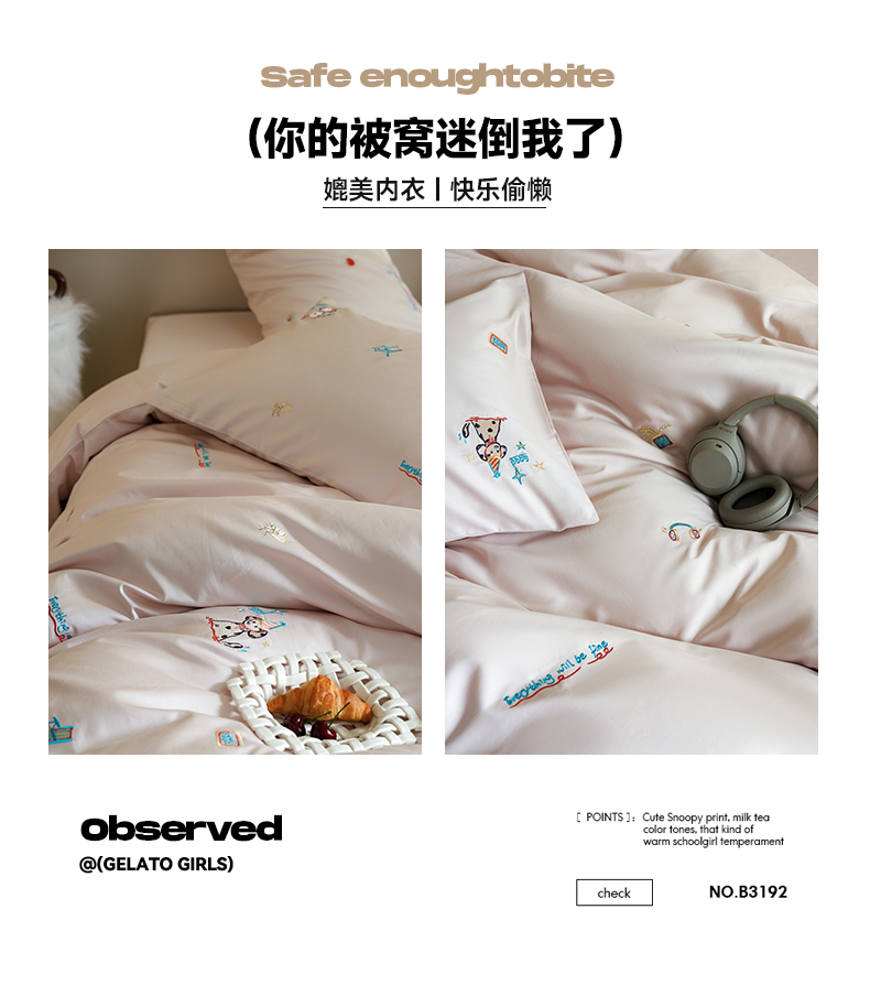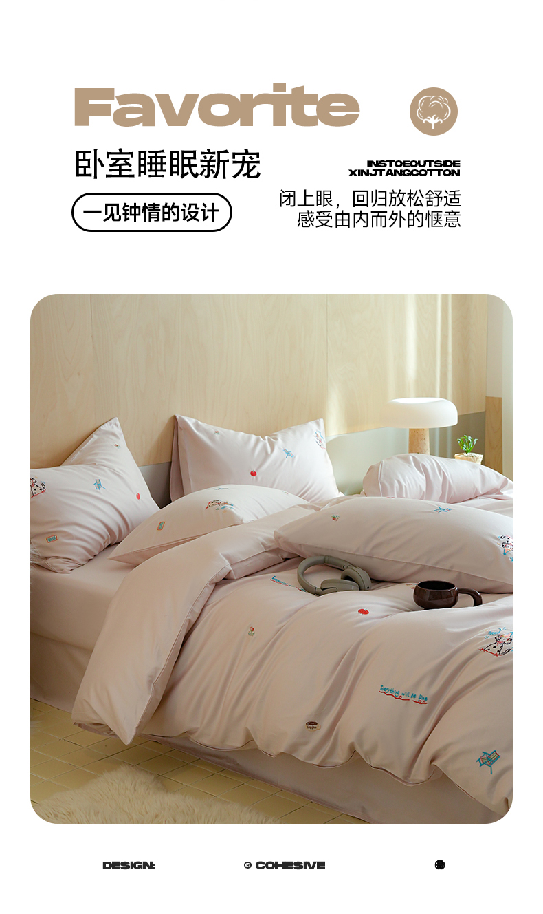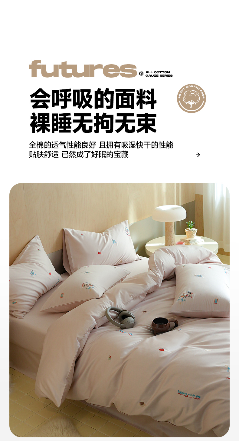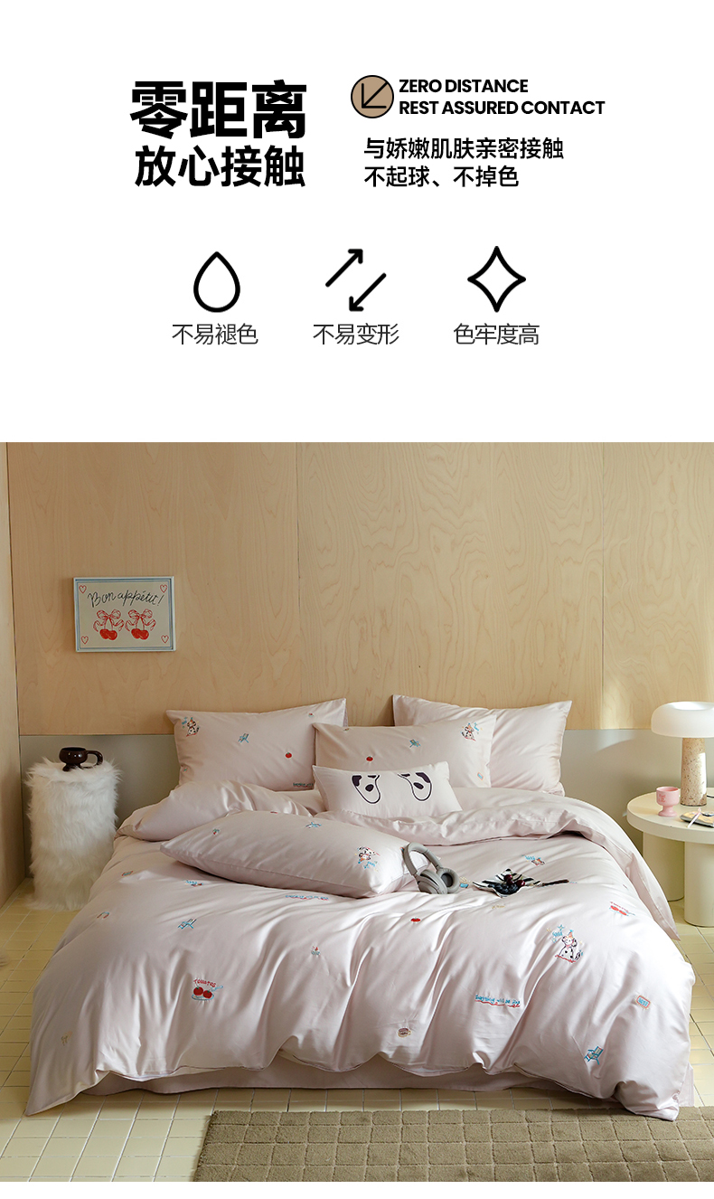 当前位置: 91家纺网 > 商品网购 > 床品套件 > 四件套 > 全棉普通四件套 > 简纯主义 2025新款A类趣味系列全棉长绒棉插画绣花四件套-露露米娅 露露米娅-粉