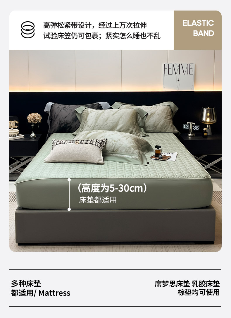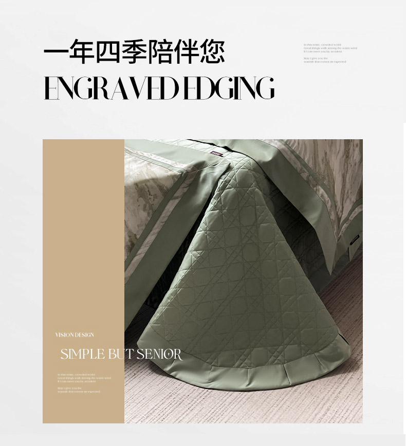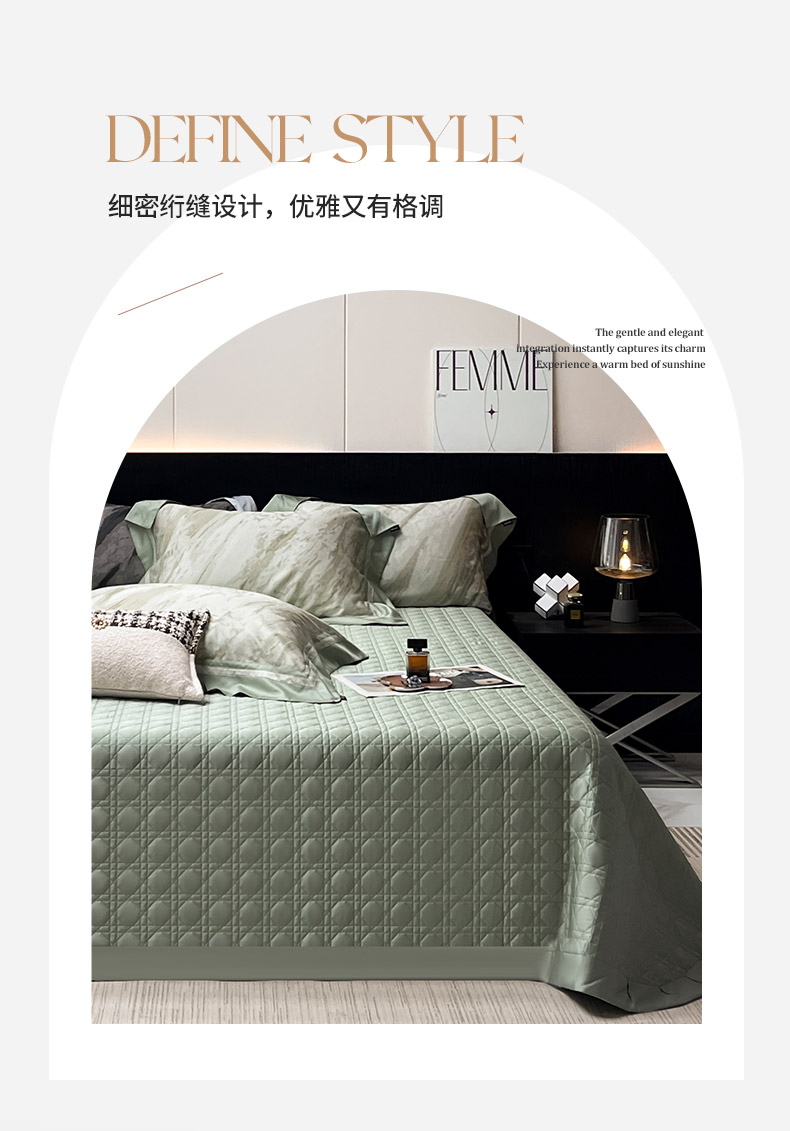 商品名称:A类母婴级天丝棉夹棉床盖床笠四件套全棉纯棉纯色长绒棉真丝保护罩高级感印花床上用品 布里奇-绿