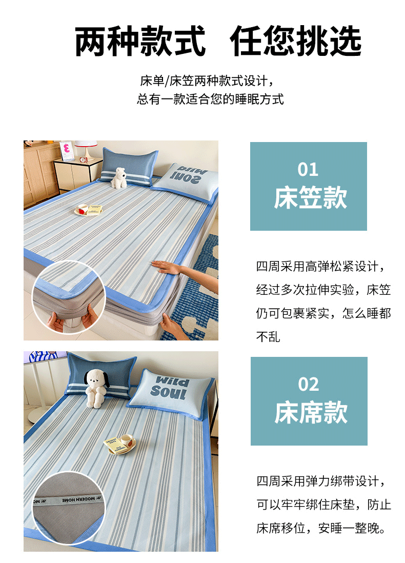 安哆啦家纺 2025新款A类印花冰藤凉席简约条格系列凉席席子 蓝色豹纹-床席款