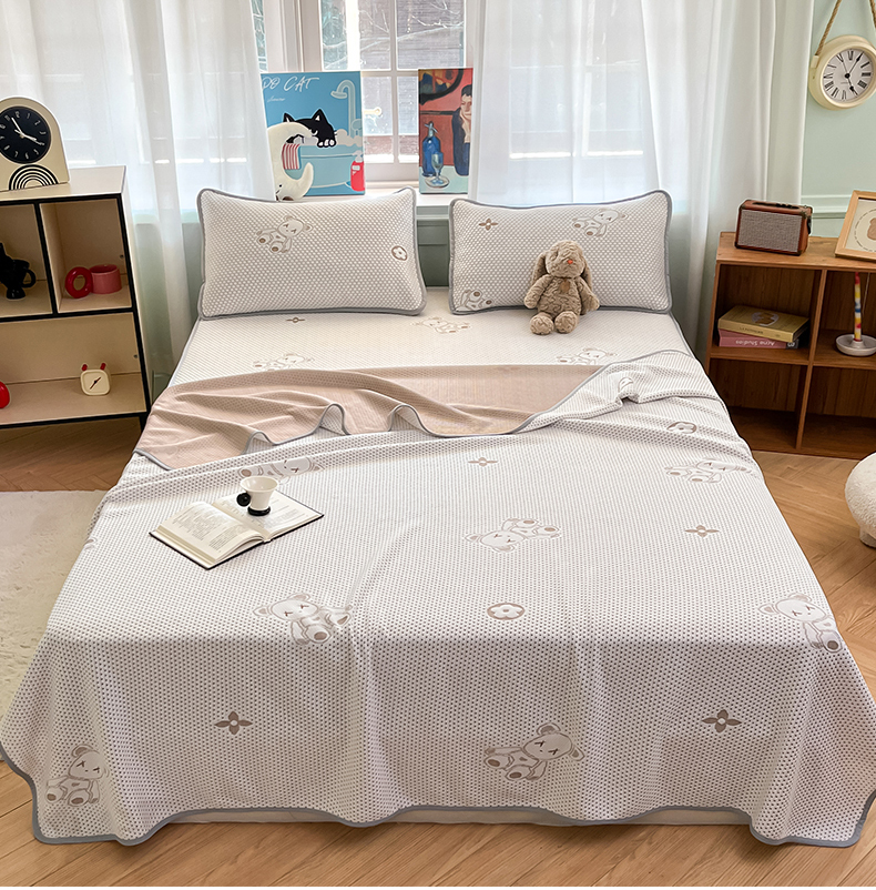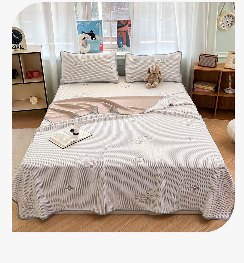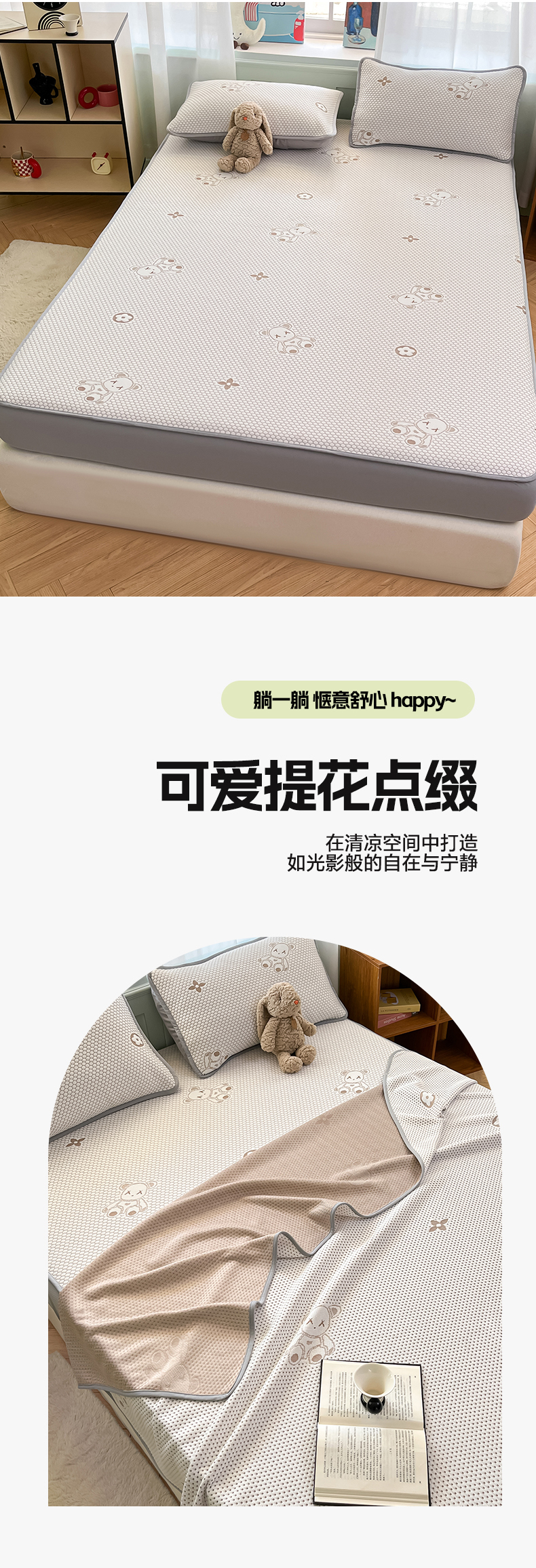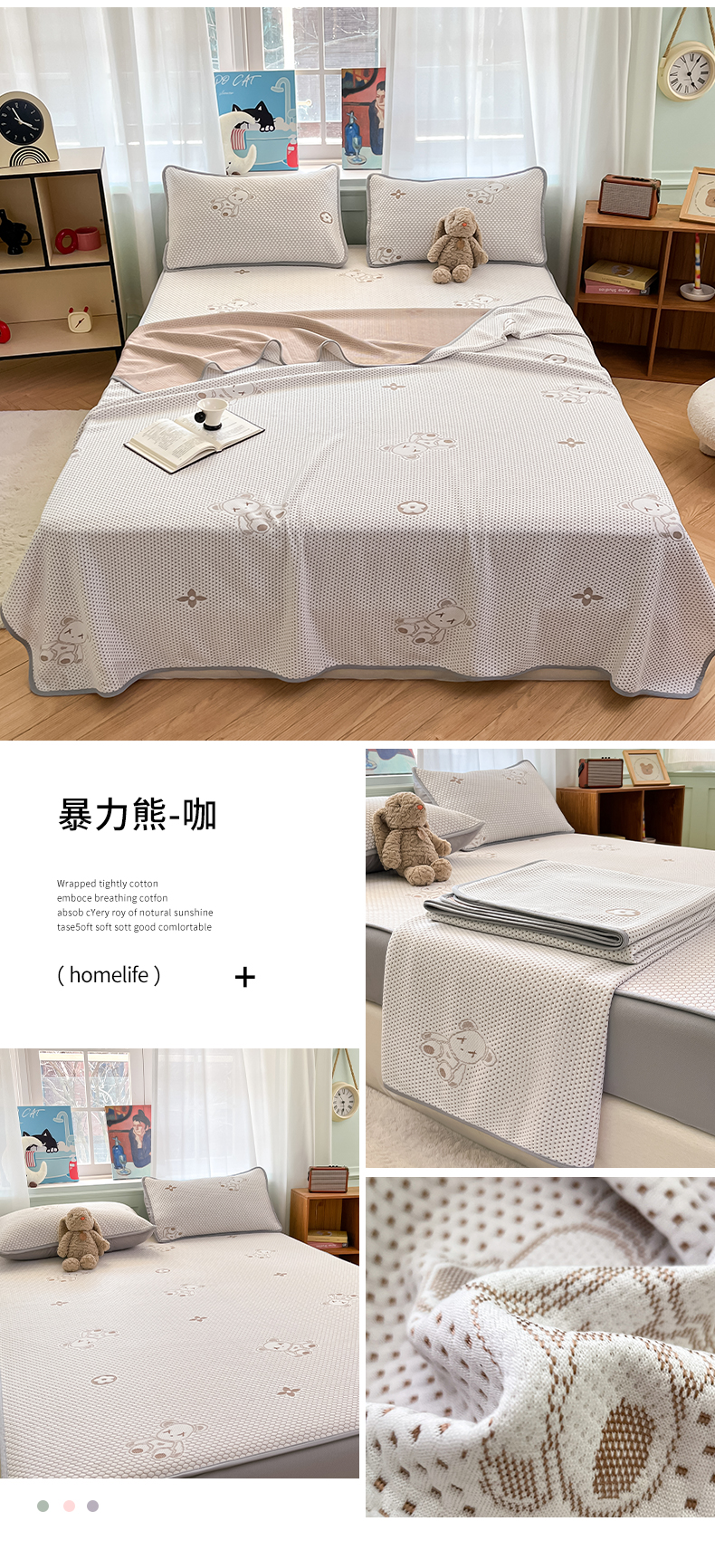 绘萱家居 2025爆款冰凉豆豆凉席夏被四件套三件套床笠款冰丝软席子 暴力熊-咖