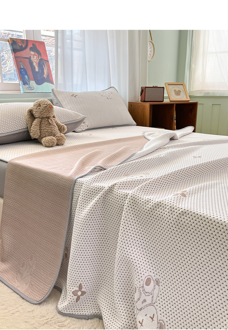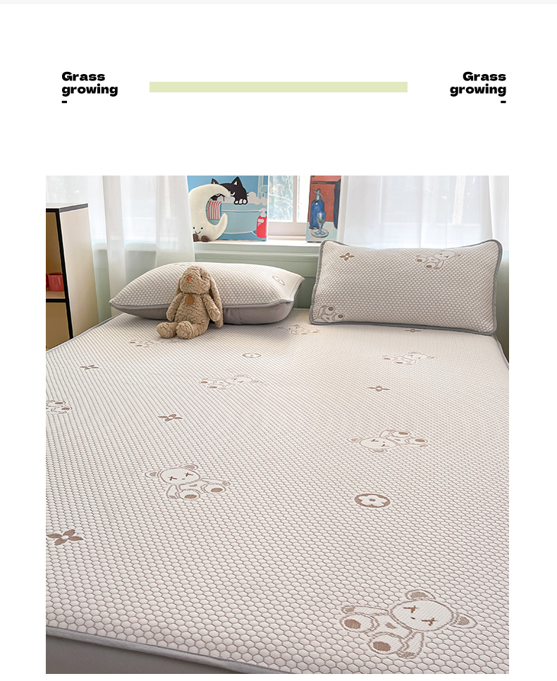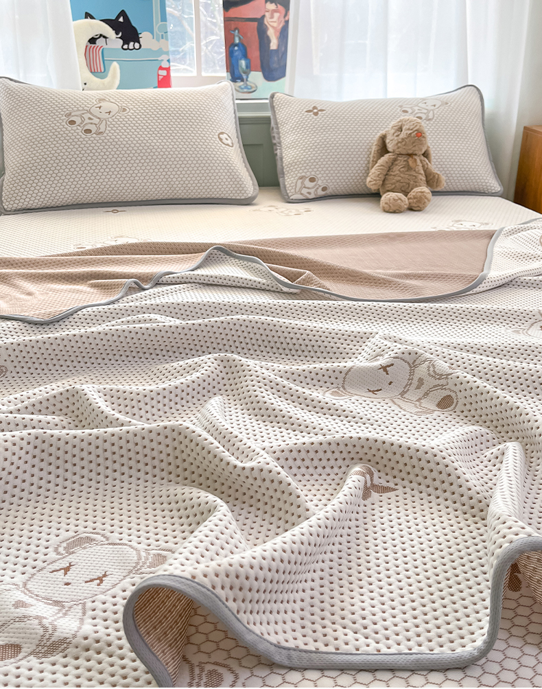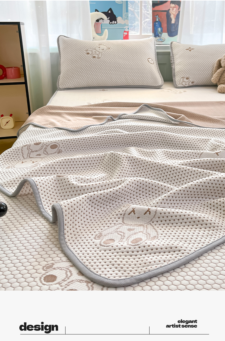 绘萱家居 2025爆款冰凉豆豆凉席夏被四件套三件套床笠款冰丝软席子 暴力熊-咖